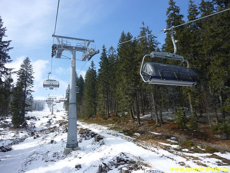 Typ: 6-CLD-B-S Špičák - Hoffmanovy Boudy Bude provedena náhrada použitou šestimístnou kabinkovou lanovkou z roku 1992 dovezenou z italského Wolkensteinu v údolí Val Gardena, která bude v roce 2012 nahrazena novou lanovkou. Technické parametry lanovky: