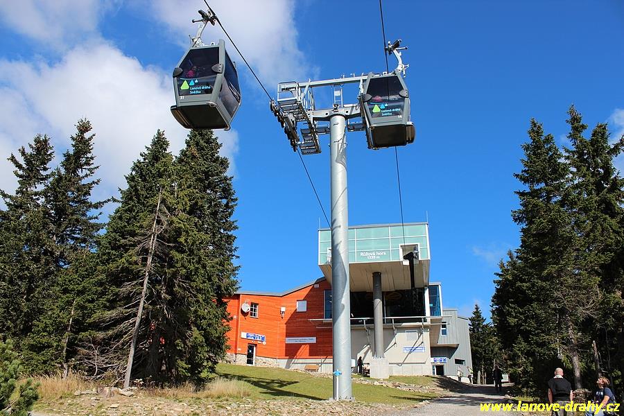obou úseků lanových drah z Pece pod Sněžkou přes Růžovou horu na Sněžku, která