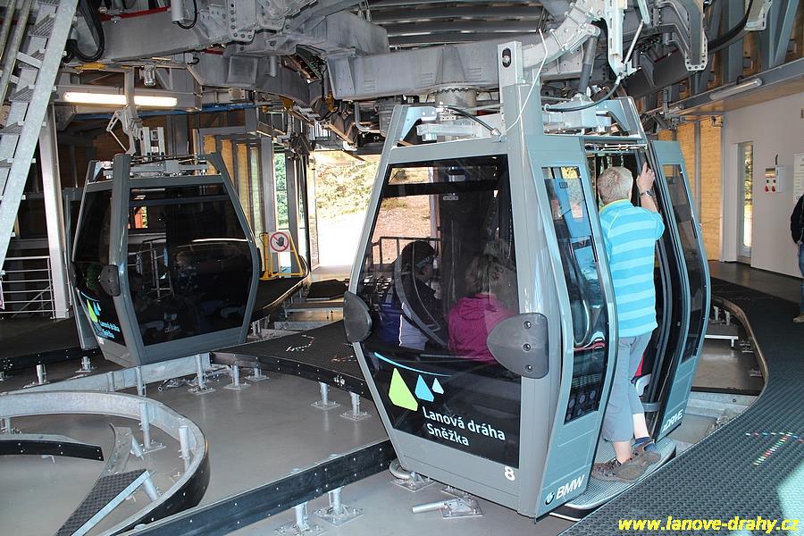 Ty byly následně podobně jako horní stanice na Sněžce opatřeny proskleným opláštěním. Začátkem června bylo do Krkonoš zároveň dovezeno všech 32 kabinek.