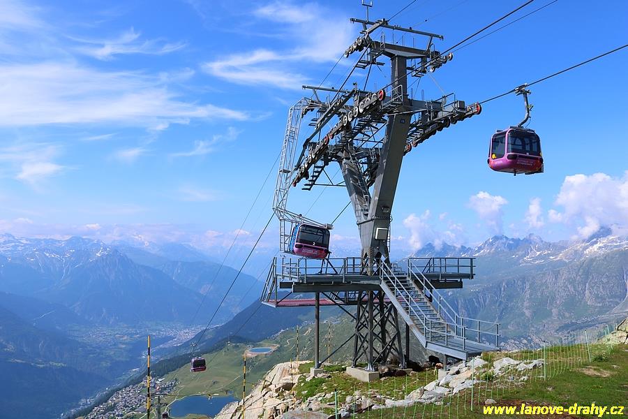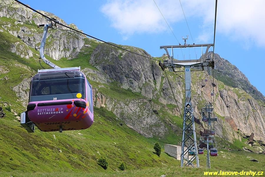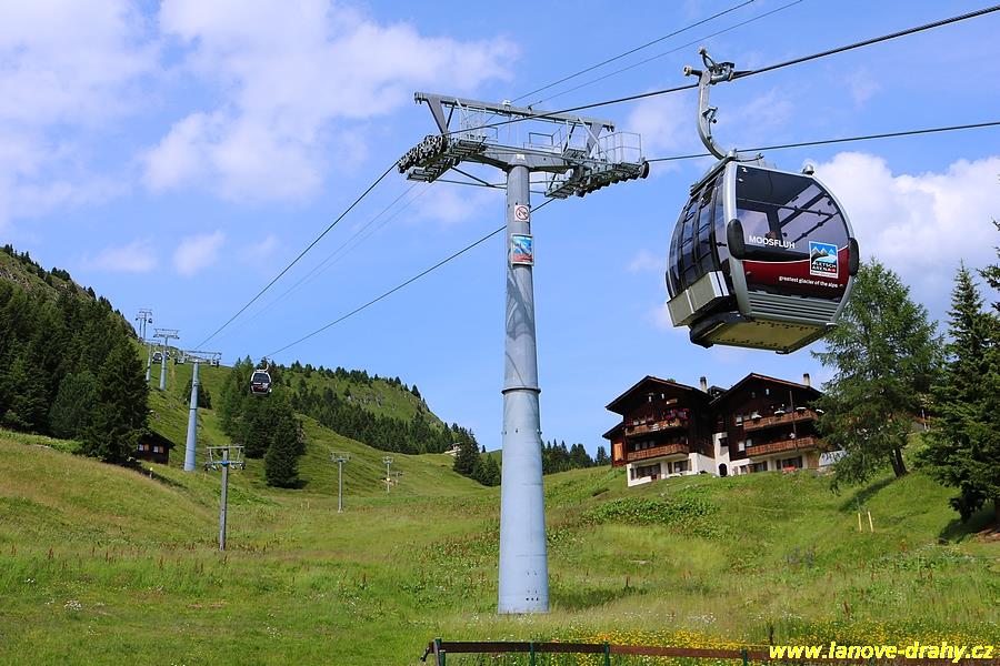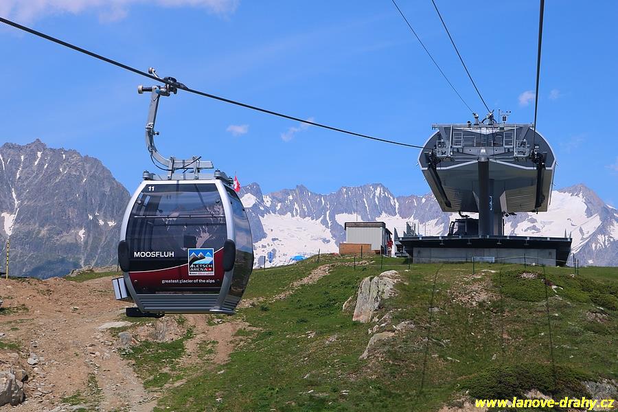 podmínkami ochrannými kryty, takzvanou bublinou. Nejnovější lanovkou v oblasti je kombinovaná lanovka Moosfluh, kde se na laně v pravidelných intervalech střídají 8-místné kabinky a 6-místné sedačky s bublinou. Problematický terén v horní části trasy vedoucí po permafrostu si vyžádal speciální technické řešení – podpěry a horní stanice jsou namontovány na speciálních patkách, které umožňují přesun podpěry, resp. celé stanice v závislosti na pohybu svahu. Z tohoto důvodu byla trasa rozdělena mezistanicí. Velké zastoupení zde mají