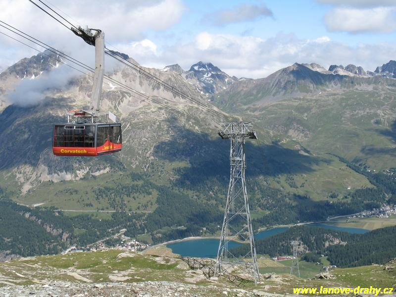 Corvatsch. Tato lanovka prošla v loňském roce kompletní rekonstrukcí a nyní tak