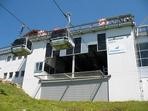vyhlídková terasa s výhledem široko do okolí. Kromě primární kabinkové lanovky