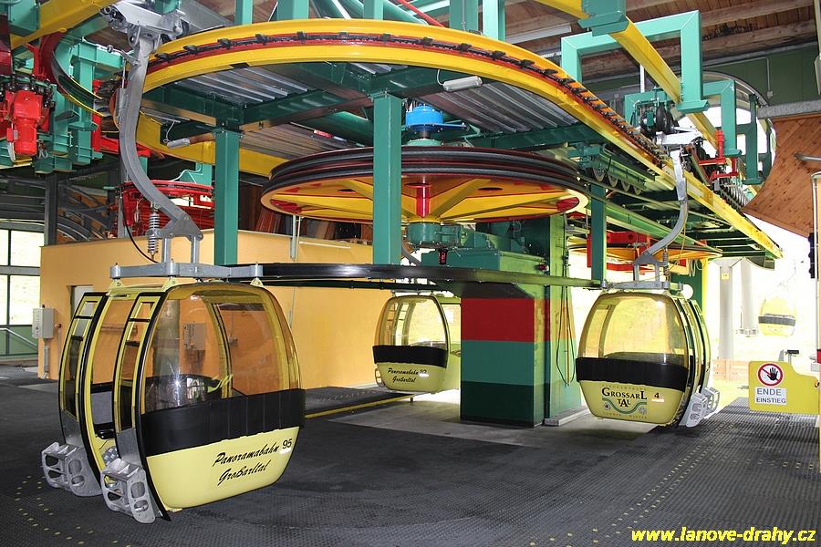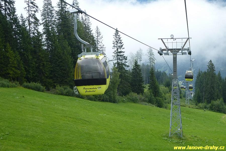 především centrální dvouúseková šestimístná kabinková lanovka Panoramabahn