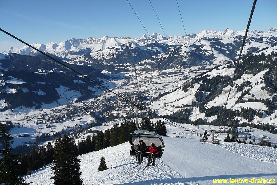 na svazích mezi Gstaadem a obcemi Saanenmöser, Zweisimmen, Schönried a St.