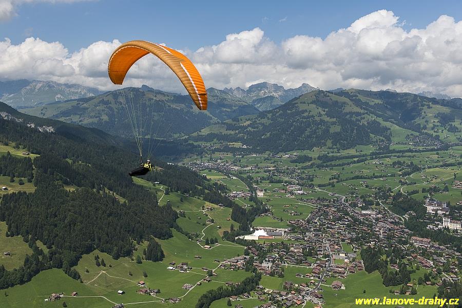 horkovzdušnými balóny. Všechny domy v Gstaadu jsou postaveny ve stylu chaletů,