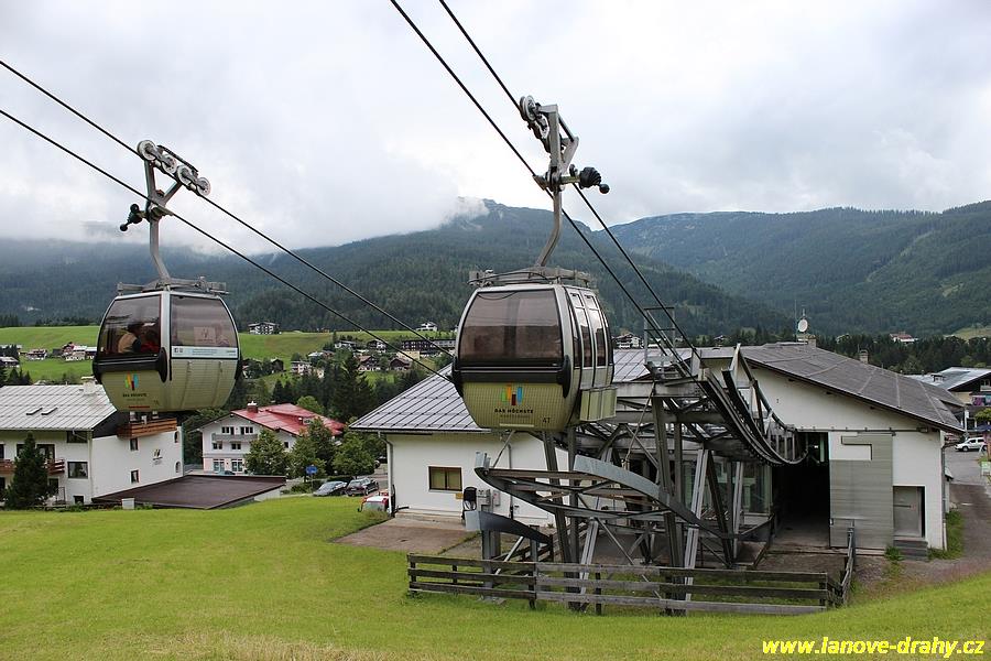 šestimístnými kabinkami. Z původní lanovky byly využity prakticky jen budovy