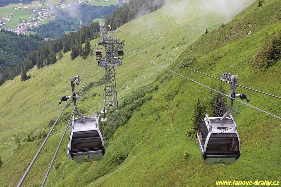 čtyřmístná dvoulanová kabinková lanová dráha. Tento typ lanovek byl v tehdejší