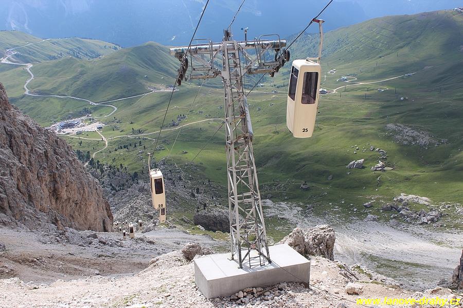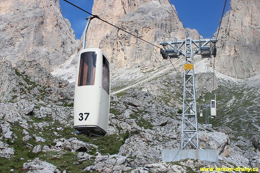 košová lanovka vedoucí do sedla mezi vrcholy Langkofel a Plattkofel v nadmořské