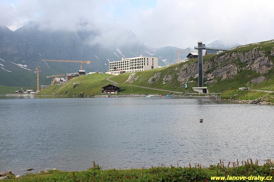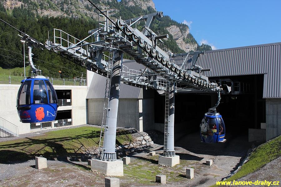 kabinková lanová dráha vedoucí z obce Stöckalp v údolí. Ta navíc v loňském roce