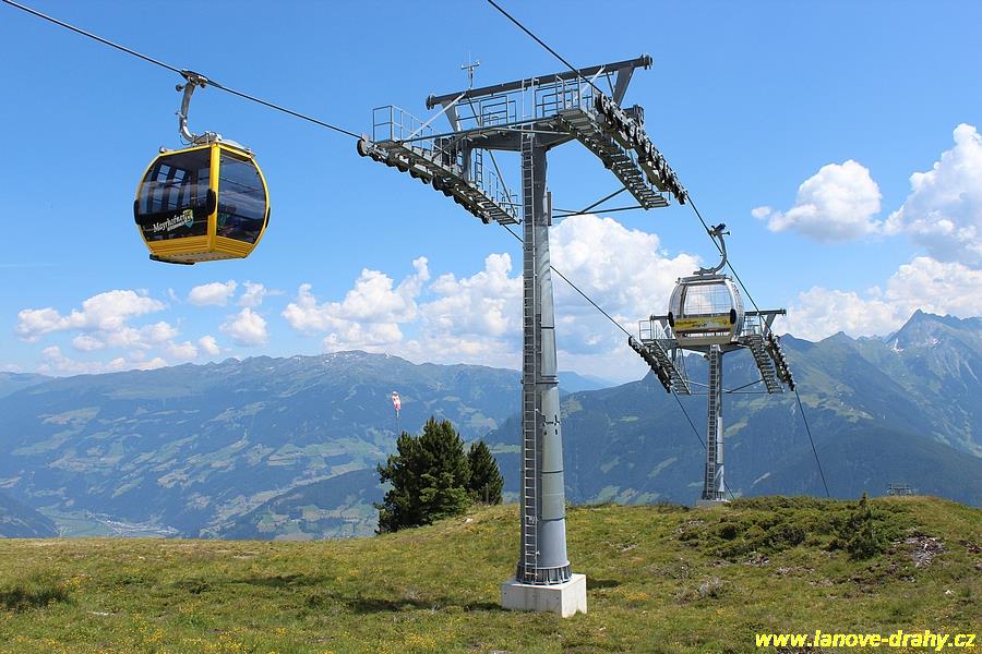 Mayrhofenu na Penken s čtyřvozovým provozem a s přepravní kapacitou 500 osob za
