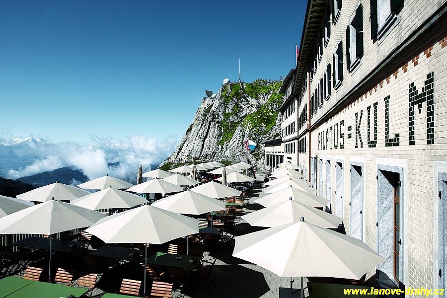 Vrcholu Pilatu dominuje kromě horní stanice ozubnicové dráhy především