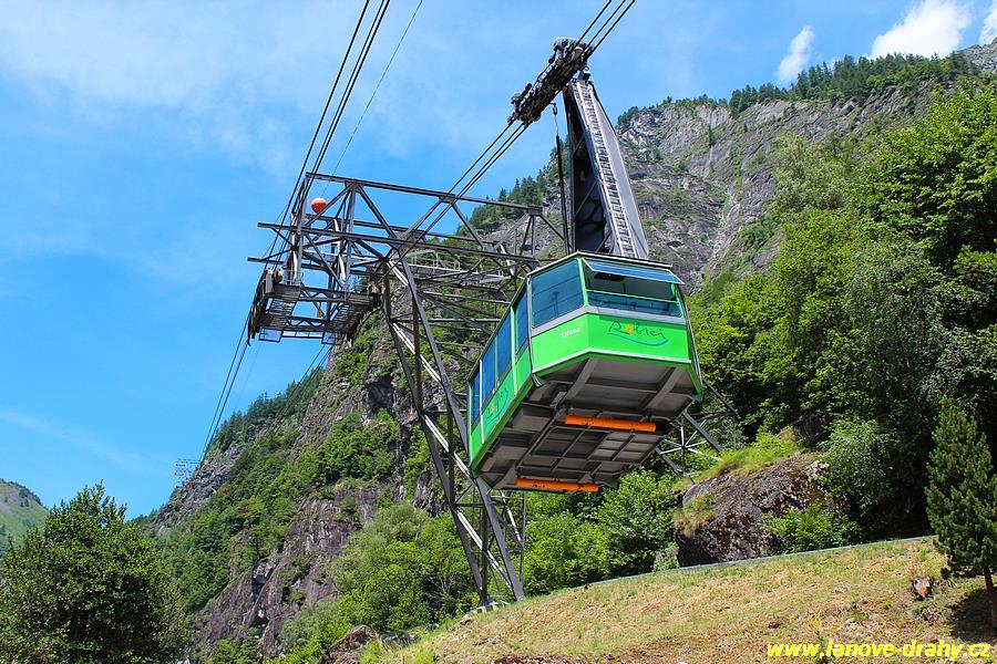 Hluboko v údolí Valle Maggia se nachází rozsáhlá síť vysokohorských přehrad a přečerpavacích vodních elekráren. Pro vybudování jedné z nich zde byla v roce 1963 firmou Habegger postavena unikátní kyvadlová lanovka s délkou úctyhodných 4030 m při převýšení 853 metrů. Po dokončení výstavby přehrady byla lanová dráha dosazením 125-místné kabiny CWA na jednu větev transformována na lanovku osobní a od té doby slouží především turistům. Na druhé větvi ovšem zůstala zachována nákladní plošina s vysokou nosností, takže i dnes lze lanovku v případě potřeby využívat pro přepravu těžkých nákladů včetně nákladních aut. Nejvyšší výška nad terénem činí 196 metrů. Zajímavostí je také trasa lanovky s atypickými konzolovými podpěrami v dolní části, které jsou doslova vetknuty do svahu, a portálovými podpěrami v horní části. Horní stanice se nachází v nadmořské výšce 1904 m n. m.