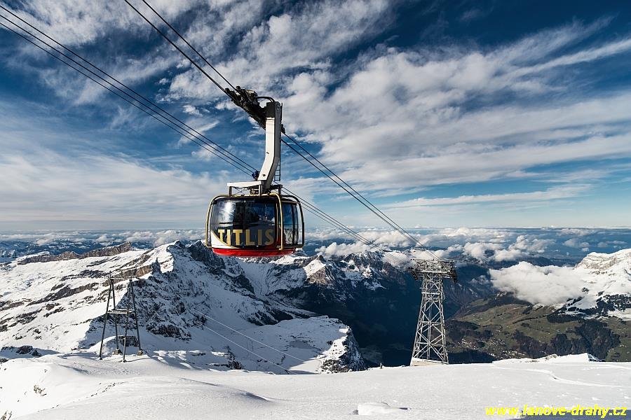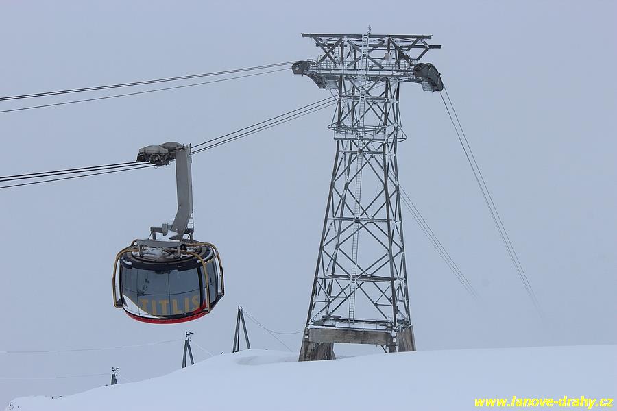 horního úseku na Kleintitlis speciální kyvadlovou lanovkou s otáčejícími