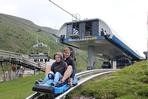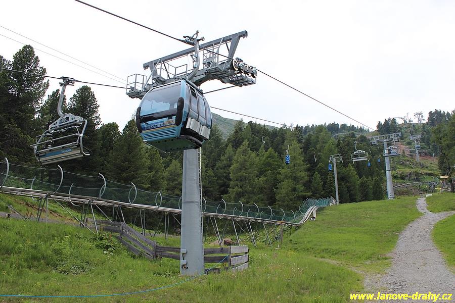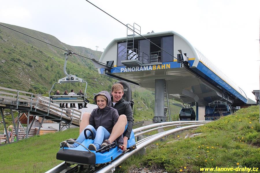 Turracher Höhe, 7.7. Menší lyžařské středisko Turracher Höhe leží na rozhranní Štýrska a Korutan. V zimní sezóně je zde lyžařům k dispozici celkem 38 kilometrů sjezdových tratí všech obtížností, které jsou obsluhovány 5 lanovými dráhami (tři šestisedačky s bublinou, jedna kombinovaná lanovka a jedna dvousedačka) a 9 lyžařskými vleky. Středisko je ovšem v provozu také v letní sezóně, kdy je zde v provozu šestisedačka Doppelmayr Kornockbahn z roku 2000 (provoz je v létě ovšem pouze 2 dny v týdnu) a především kombinovaná lanovka Panoramabahn. Ta byla vybudována v roce 2006 taktéž firmou Doppelmayr a nahradila původní jednosedačkovou lanovku z roku 1987 firmy SSG. Vzhledem k tomu že jde o kombinovanou lanovku, střídají se na dopravním laně v pravidelných intervalech vždy jedna osmimístná kabinka CWA a dvě šestimístné sedačky, vozový park této lanovky tvoří celkem 10 kabin a 20 sedaček. Jako jedna z mála kombinovaných lanovek je tato dráha provozována v kombinovaném provozu také v letní sezóně. Největší zdejší atrakcí je ovšem 1600 metrů dlouhá bobová dráha Alpine-Coaster firmy Wiegand zvaná Nocky Flitzer, jejíž trasa je zpestřena množstvím skoků, zatáček, a také 3 karusely. Na její začátek vyjedeme právě kombinovanou lanovkou Panoramabahn, přeprava vozíků bobové dráhy je zajišťována separátním paralelním vlekem. (Radim Polcer) |