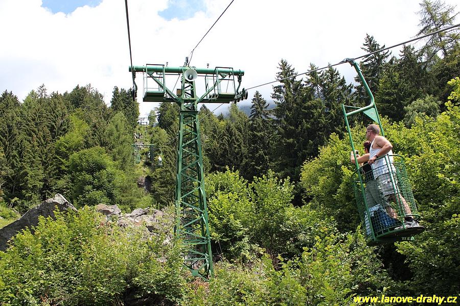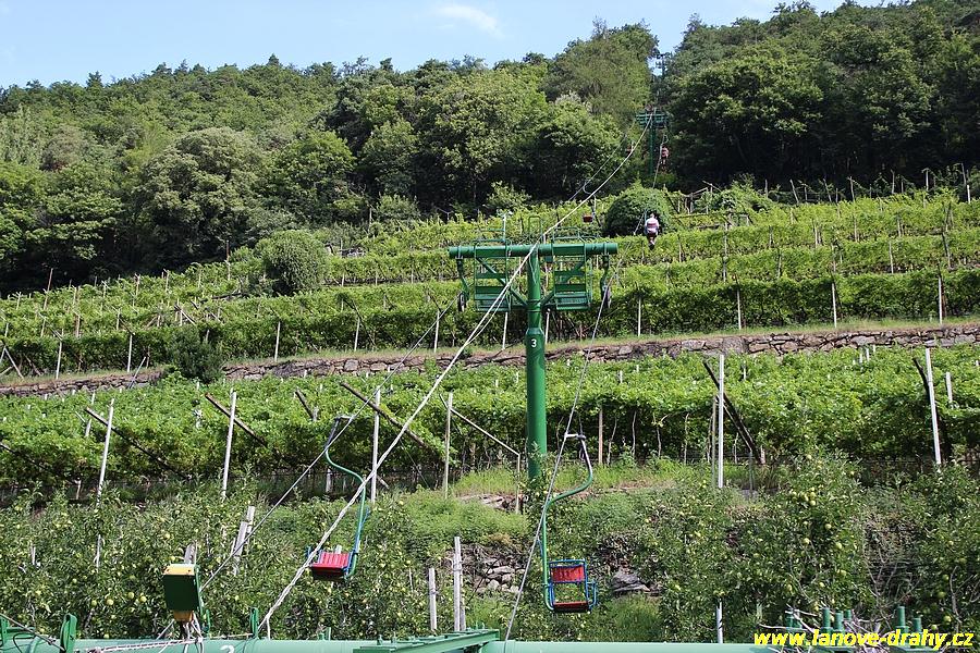 úseku z Algundu do Vellau se můžeme svézt jednosedačkovou lanovkou z roku 1972,