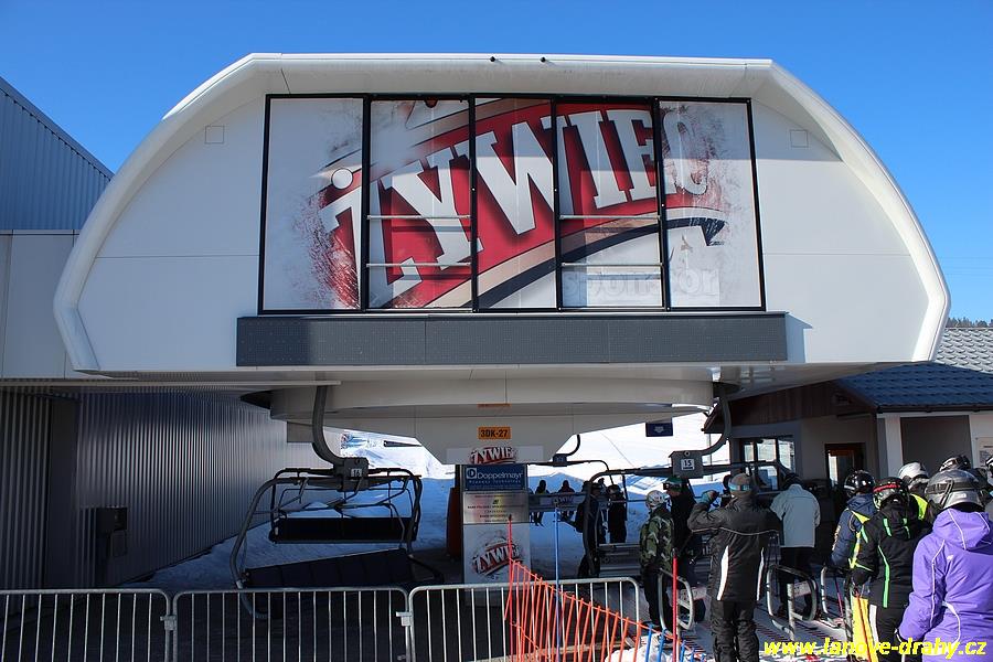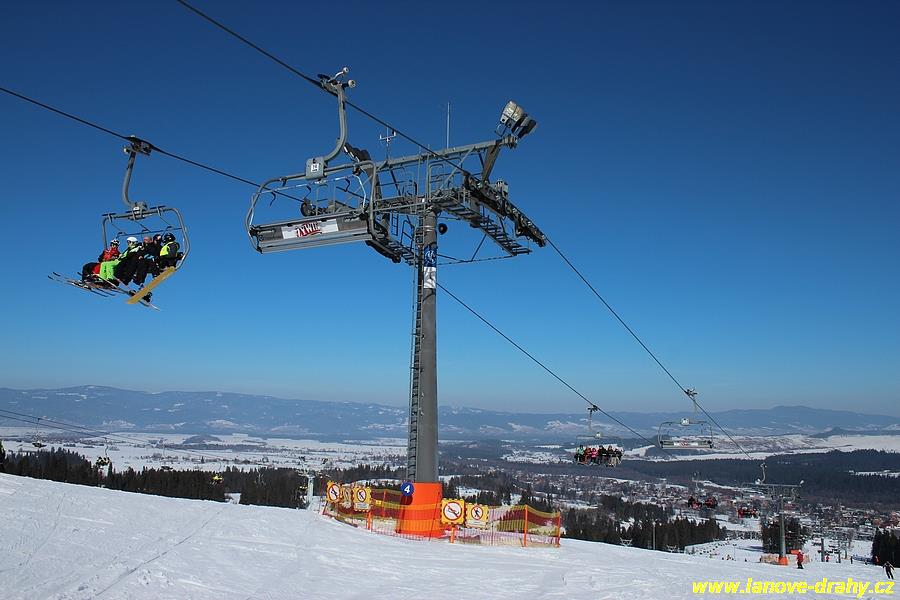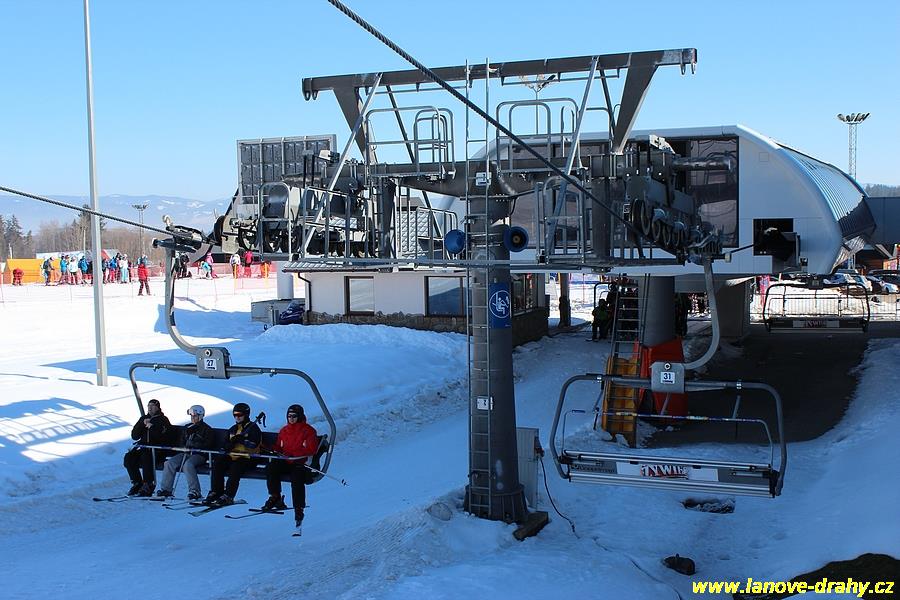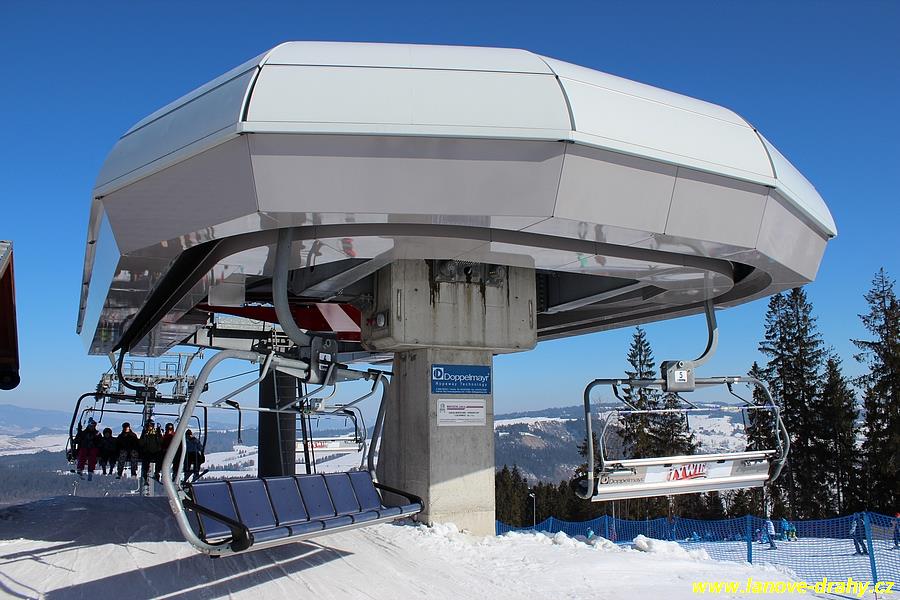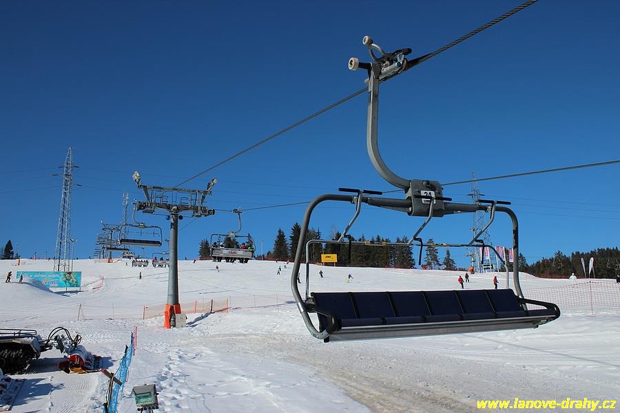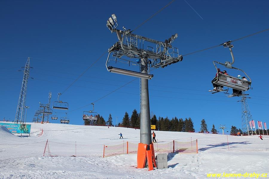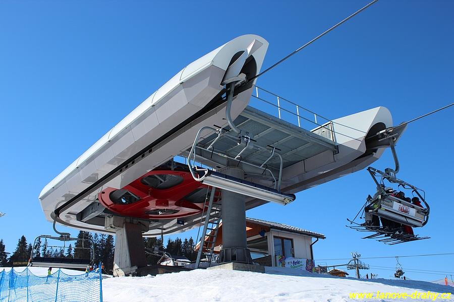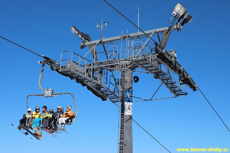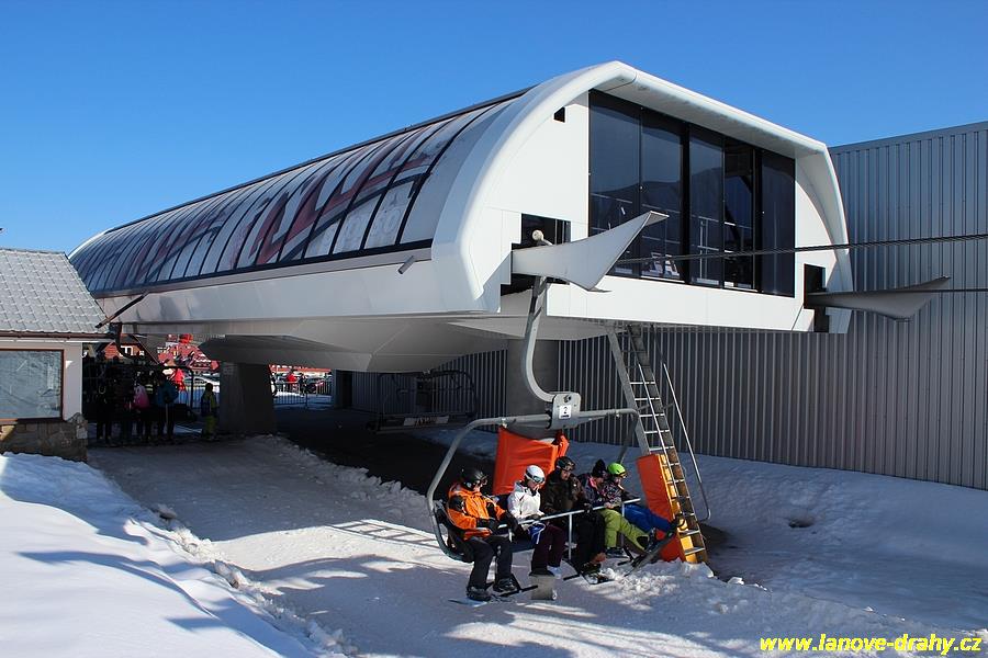 uchycením šestimístných sedaček a rozběhovým pásem |