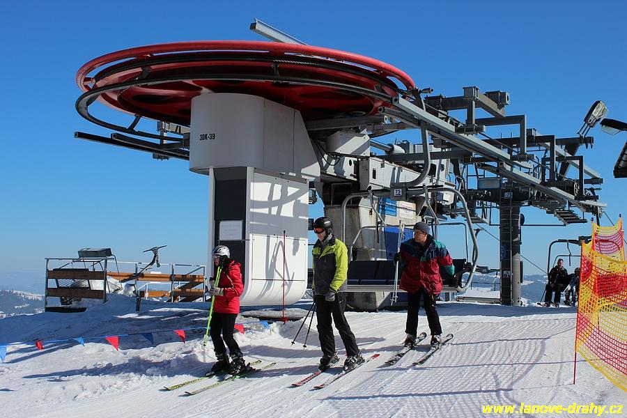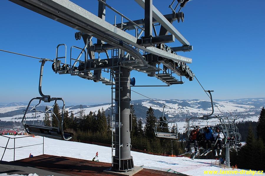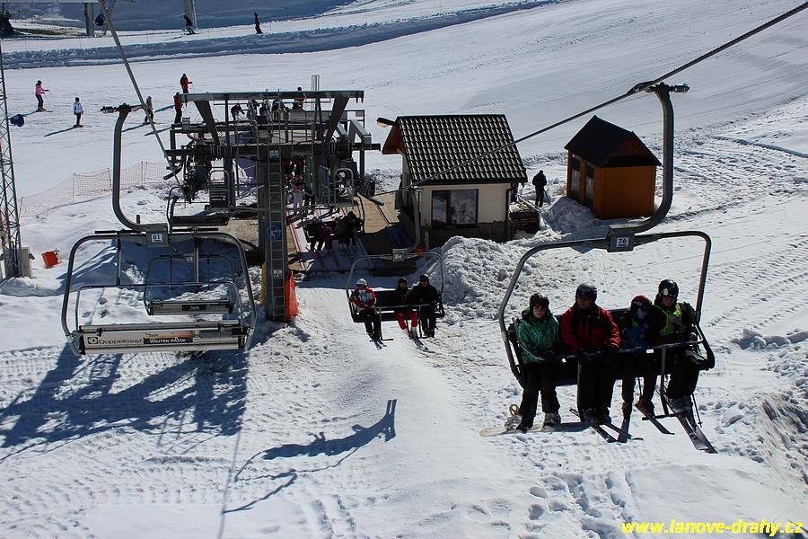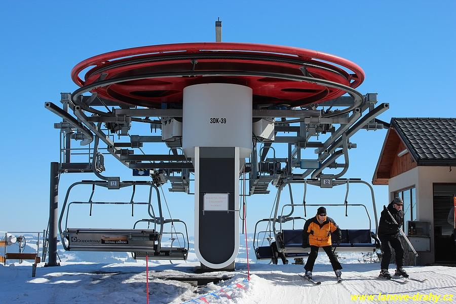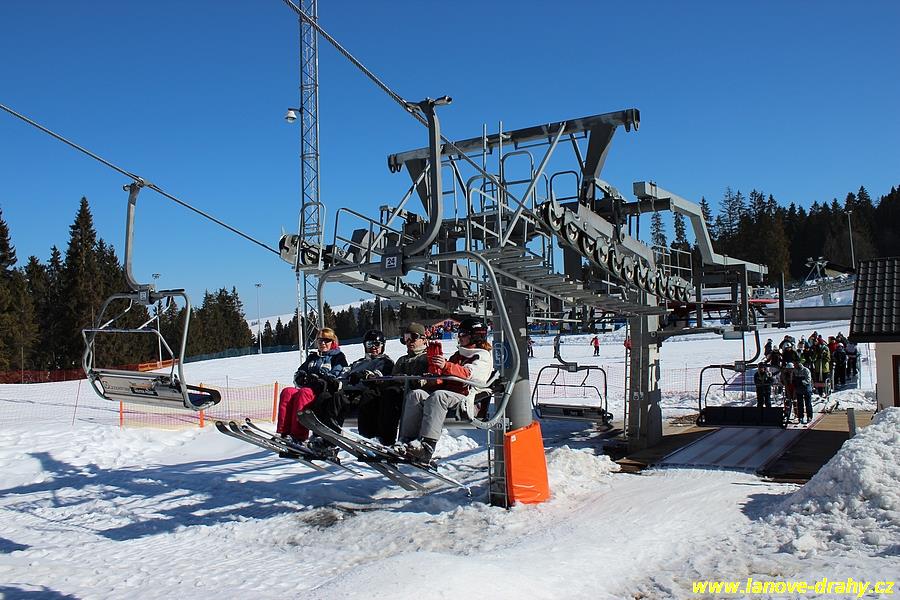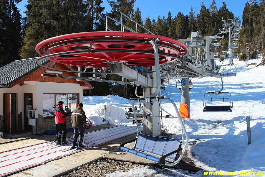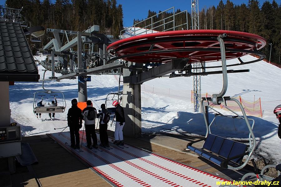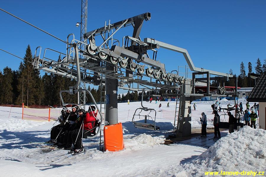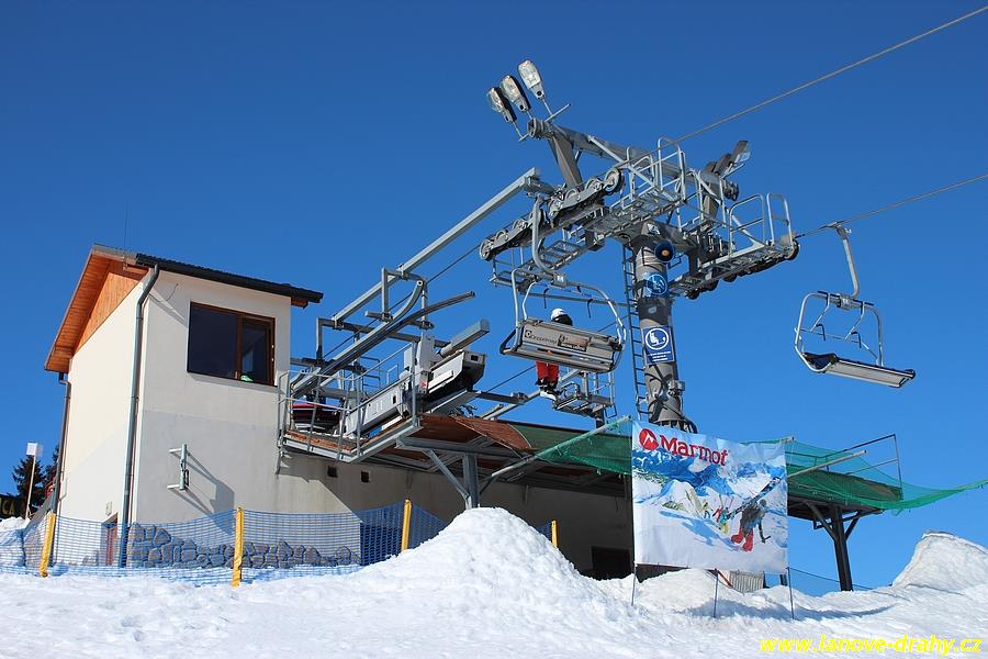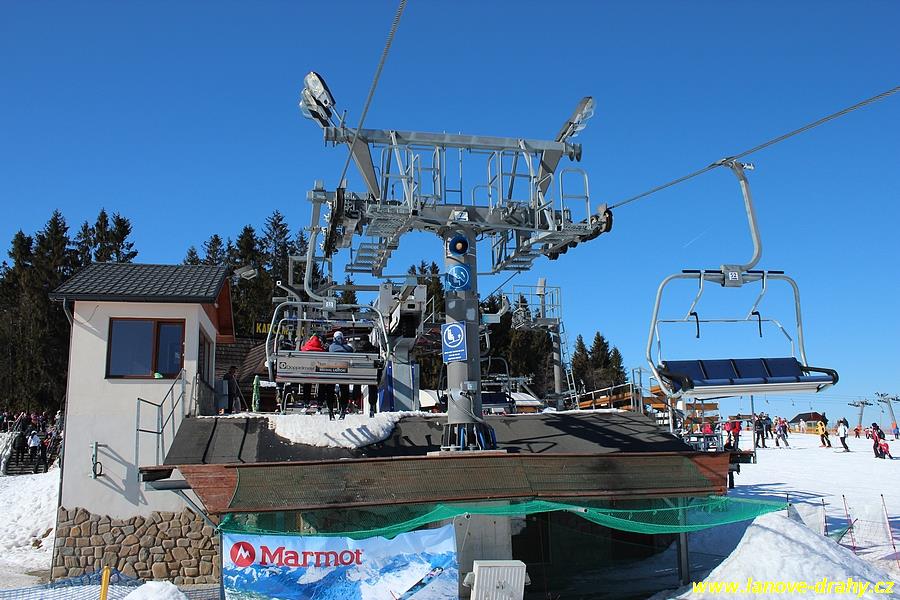 uchycením čtyřmístných sedaček a rozběhovým pásem |