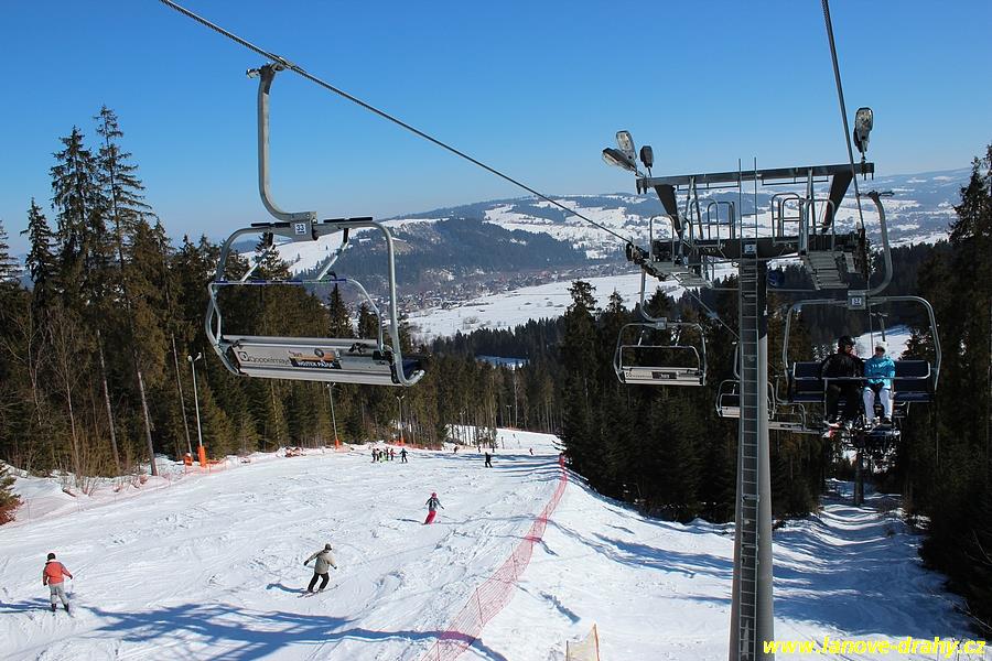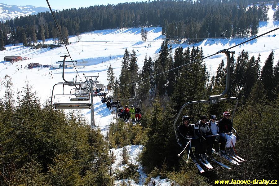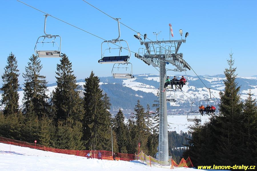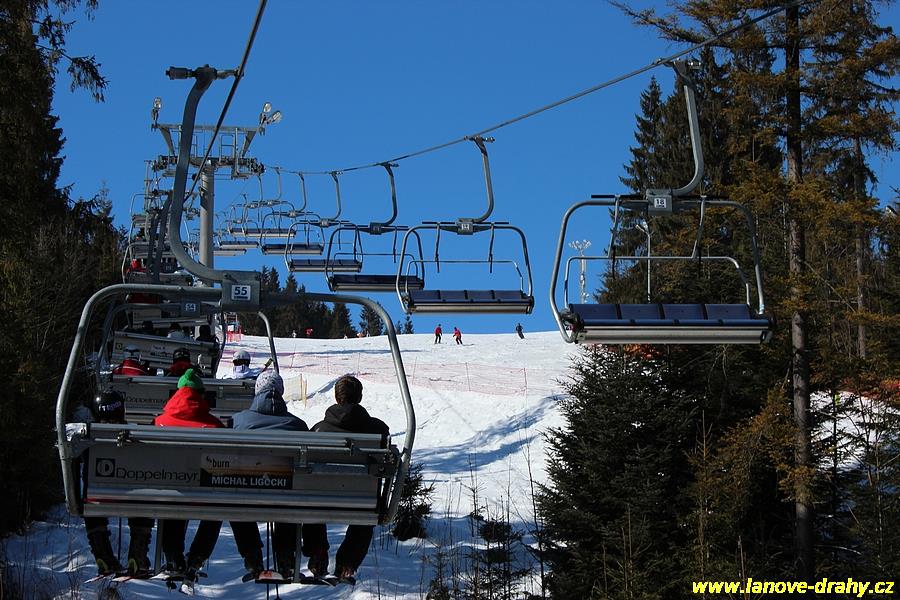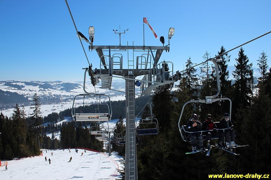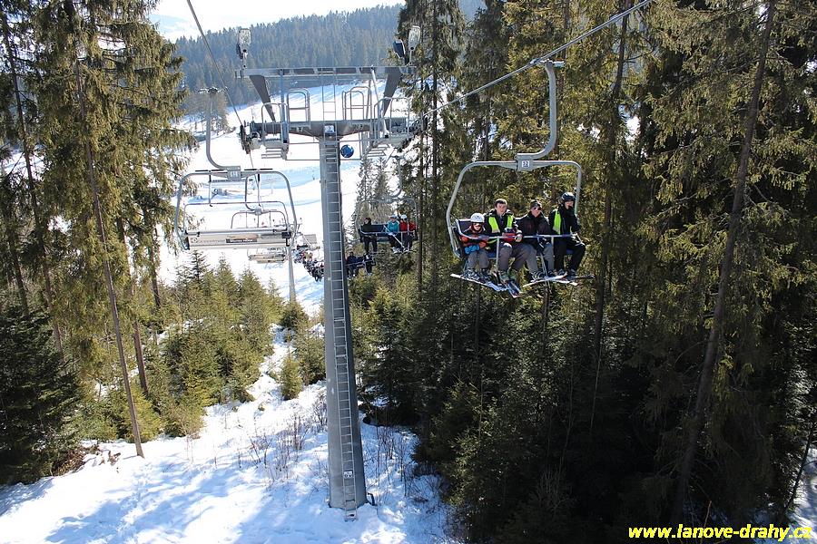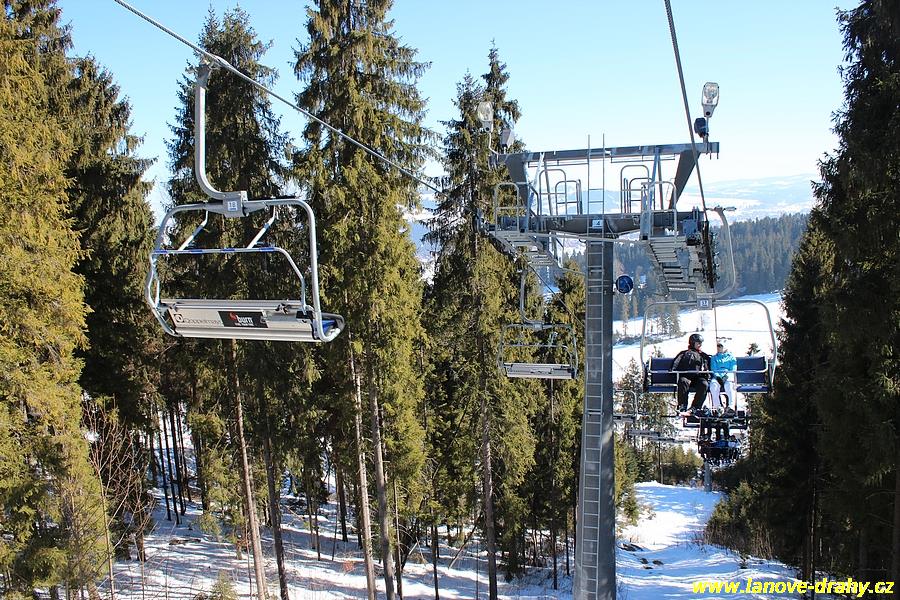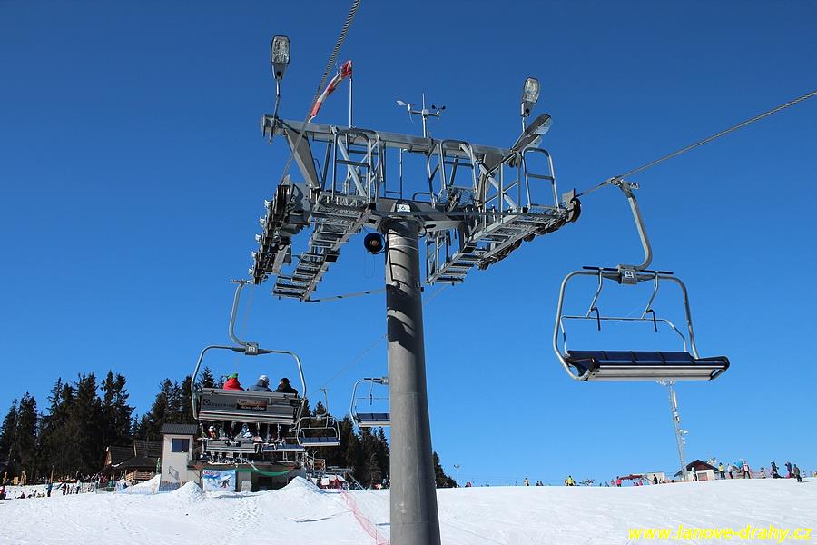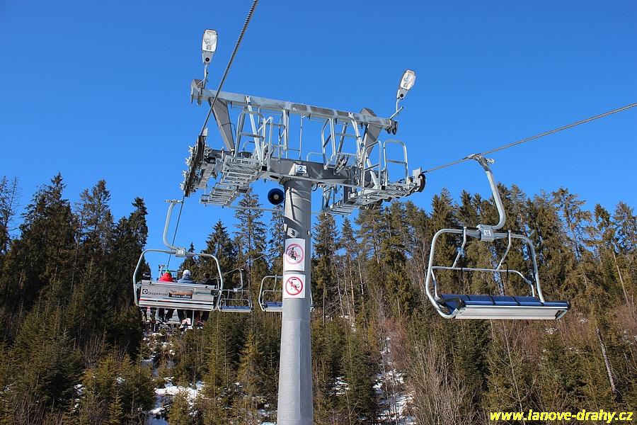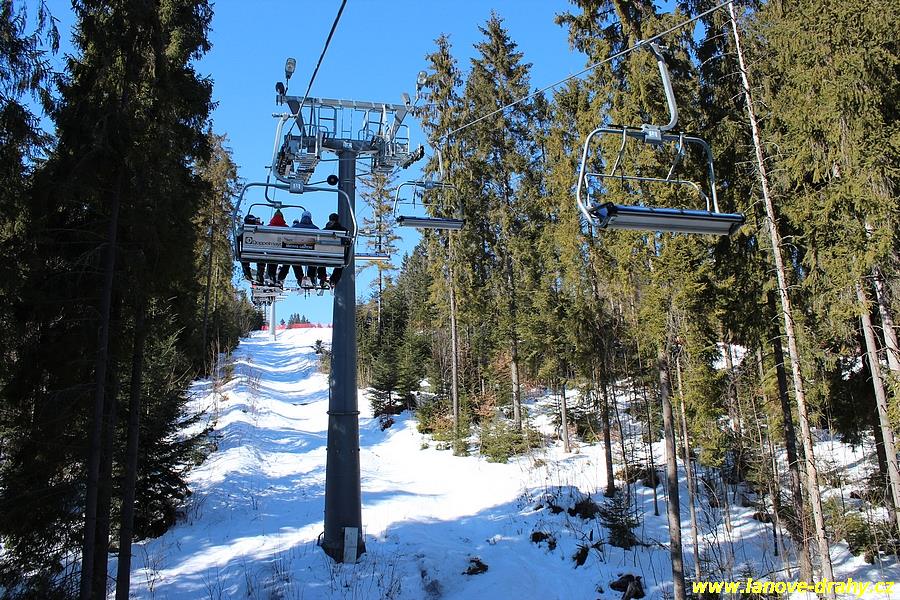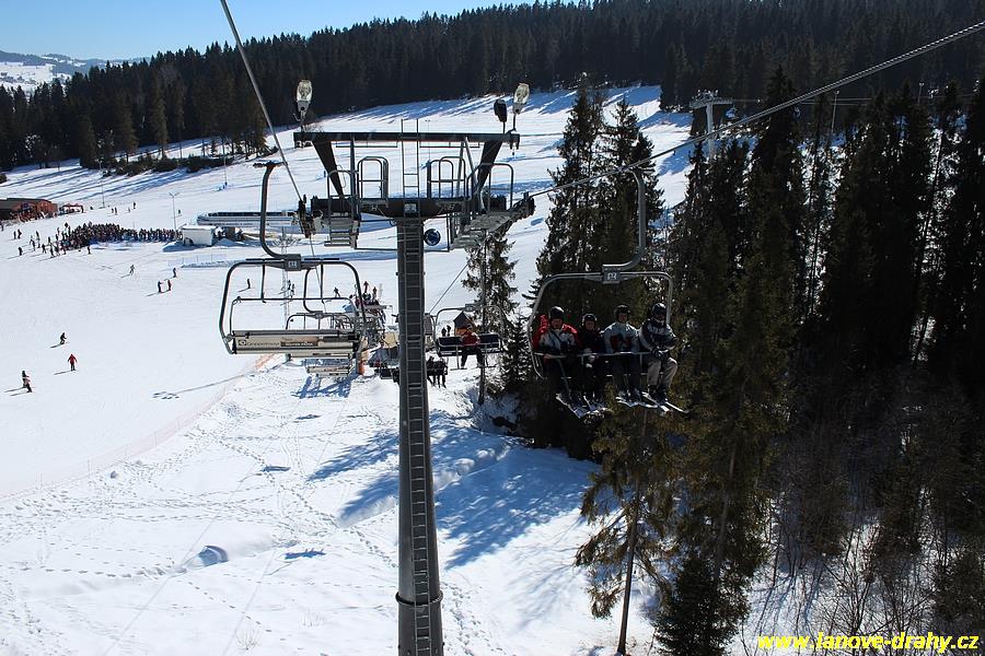 uchycením čtyřmístných sedaček a rozběhovým pásem |