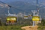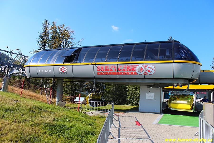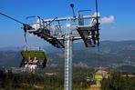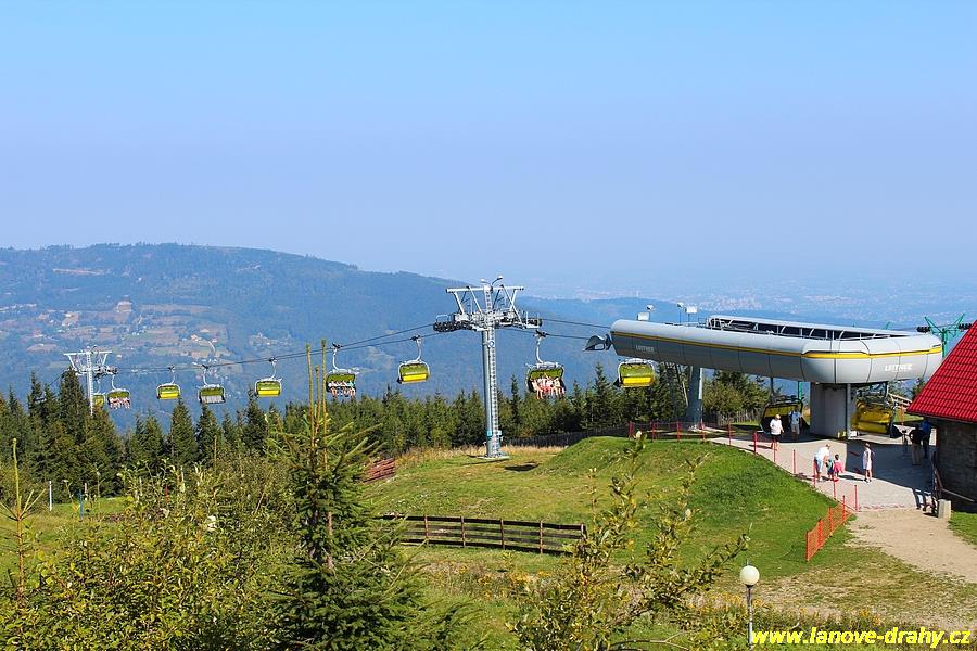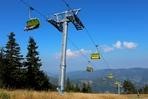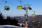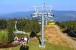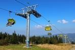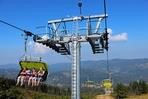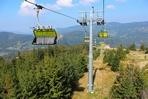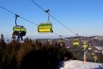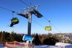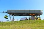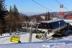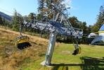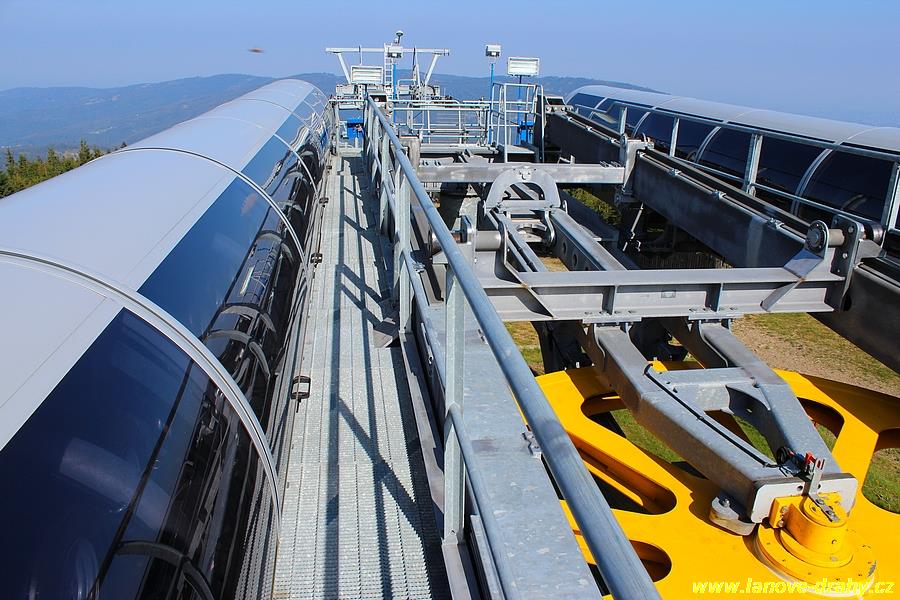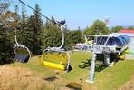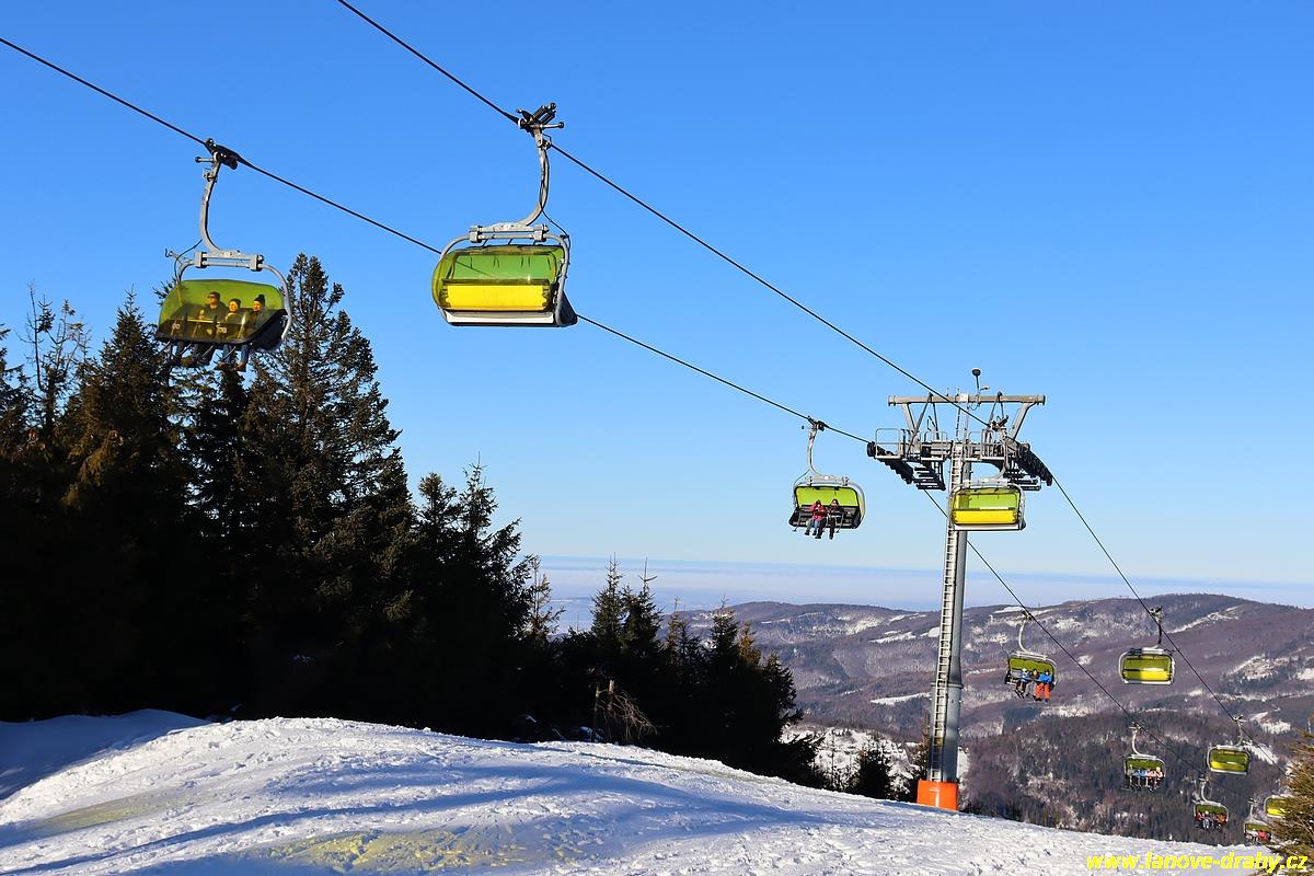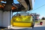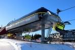 čtyřmístných sedaček se žlutými bublinami, s nástupním pásem
