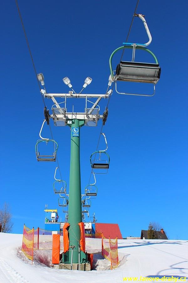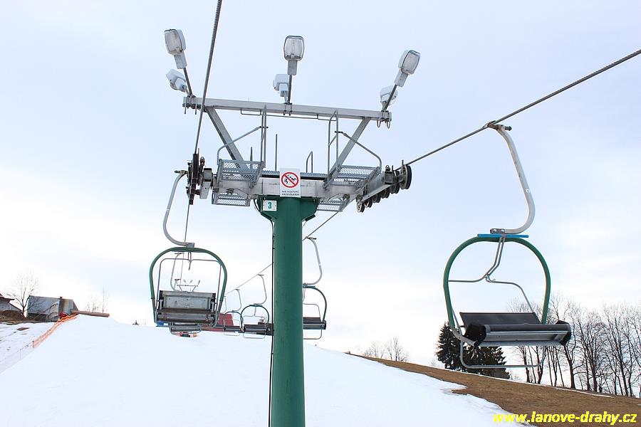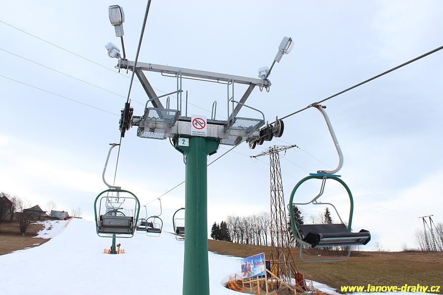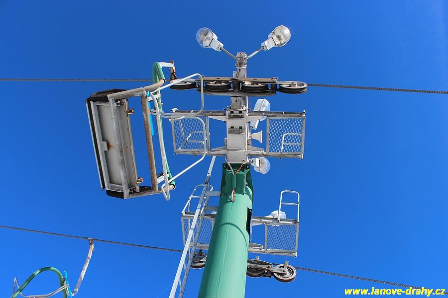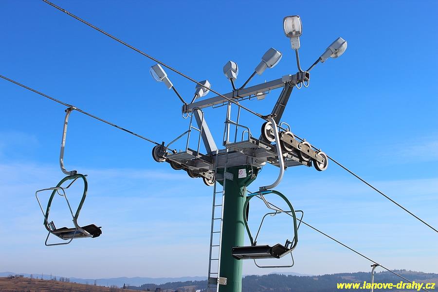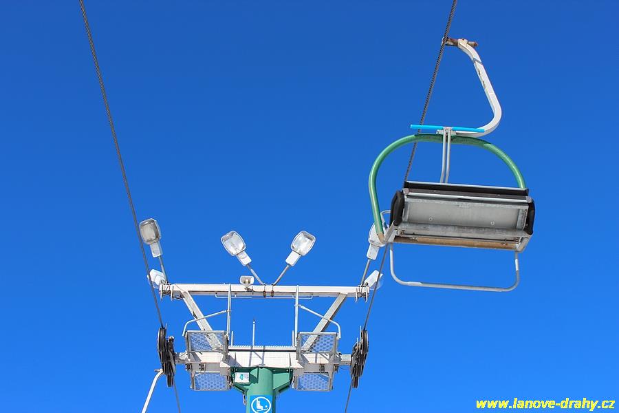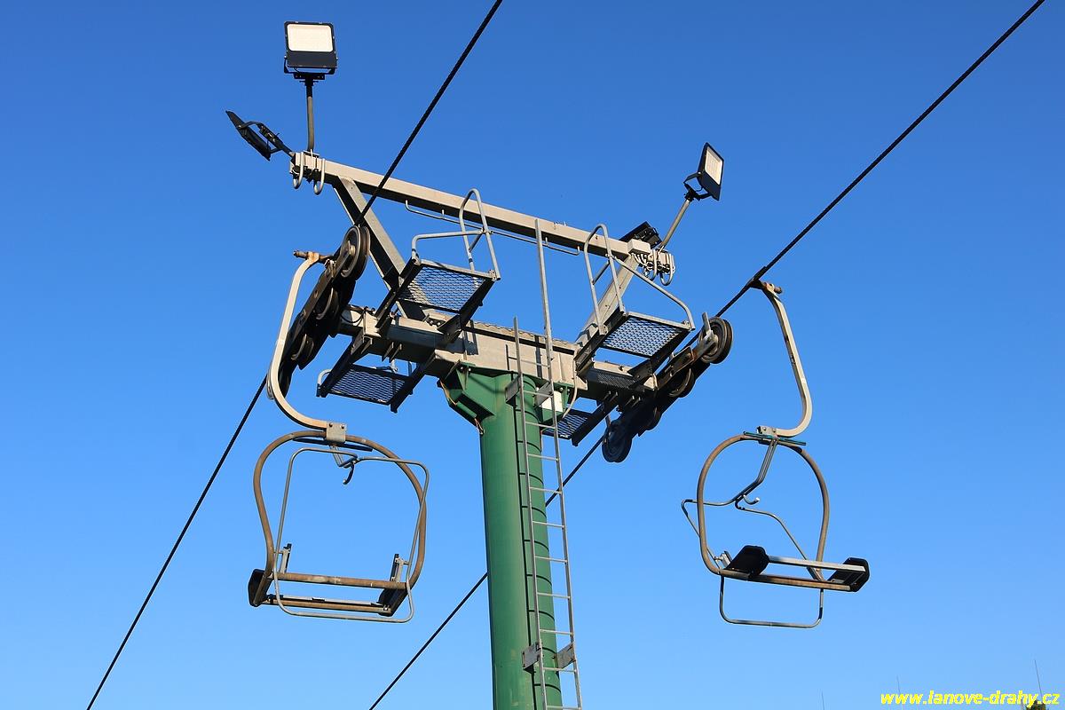 osobní visutá jednolanová dráha oběžného systému s pevným uchycením dvoumístných sedaček