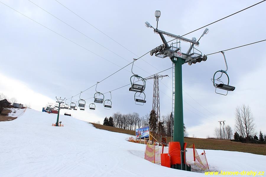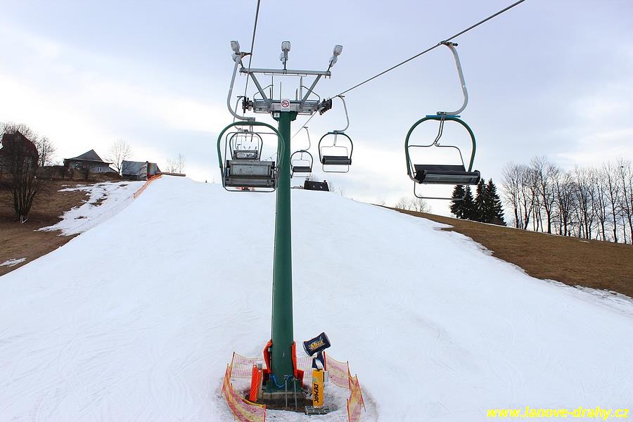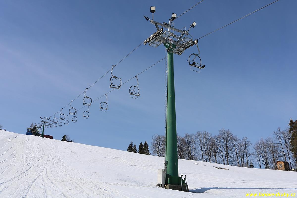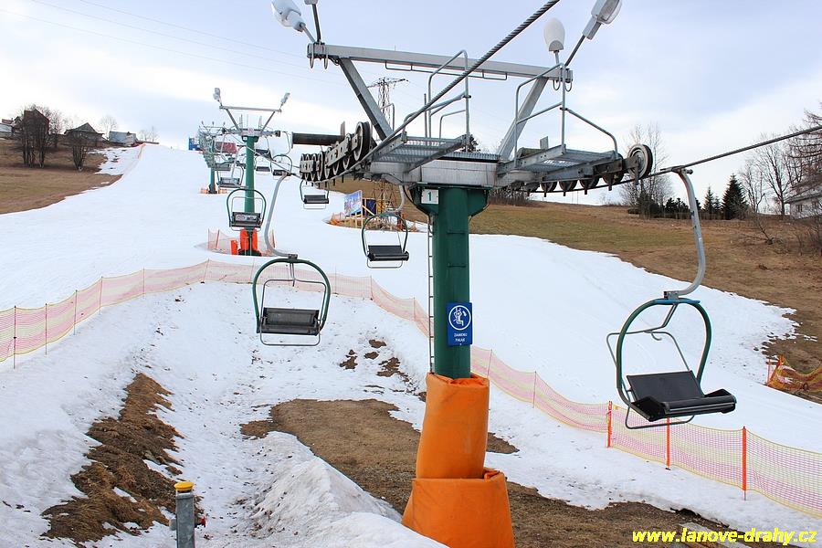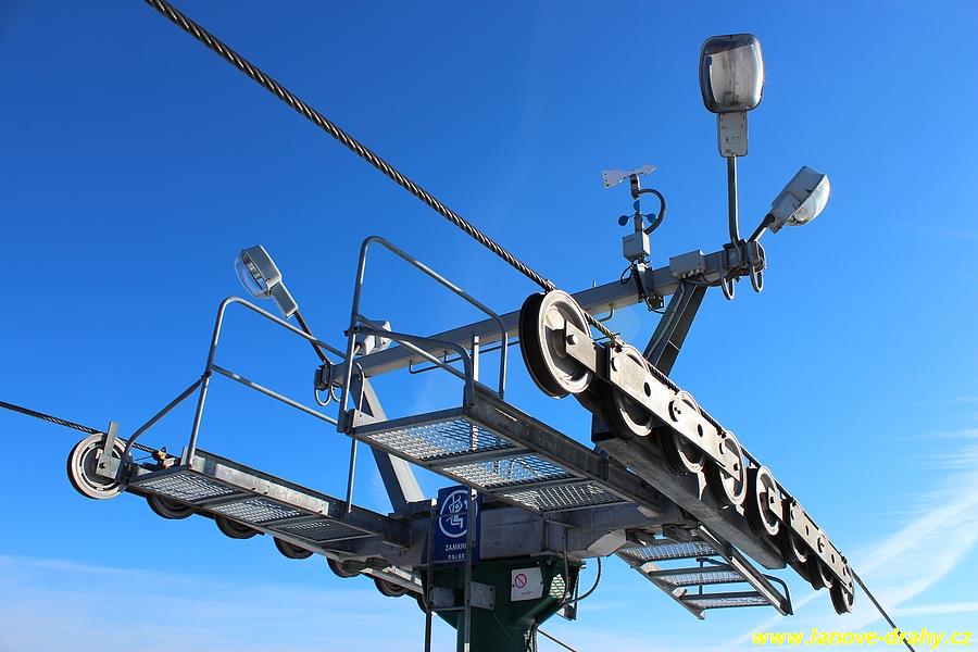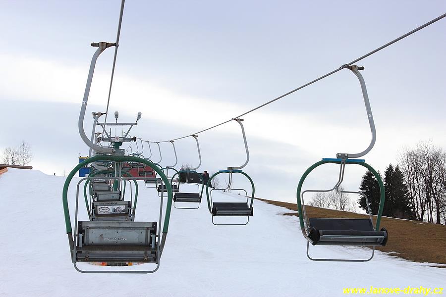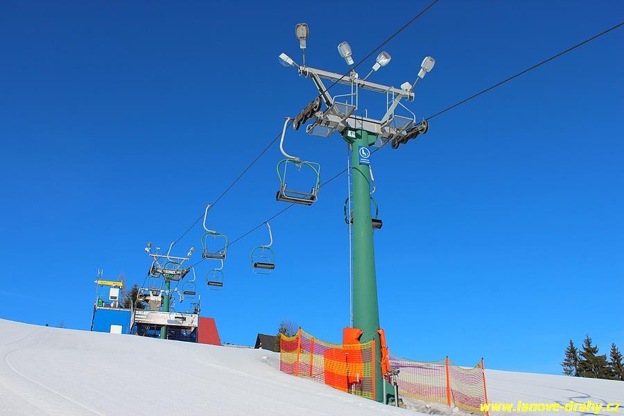 osobní visutá jednolanová dráha oběžného systému s pevným uchycením dvoumístných sedaček