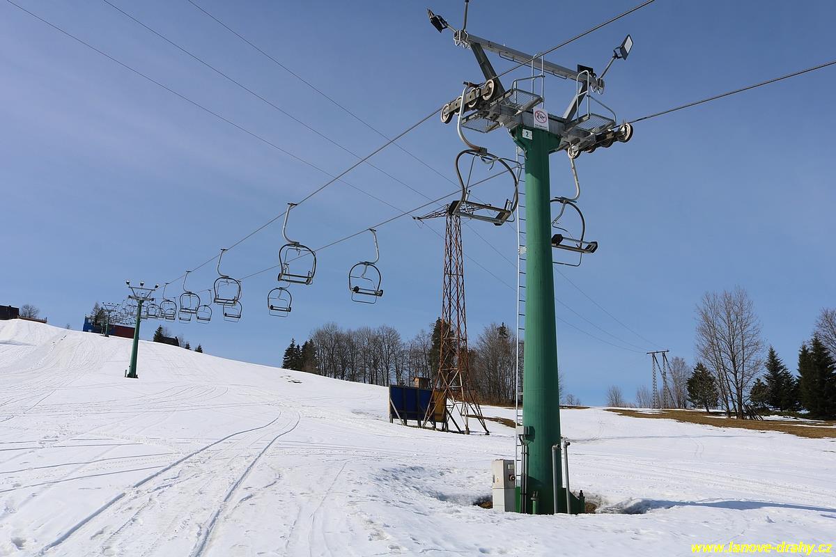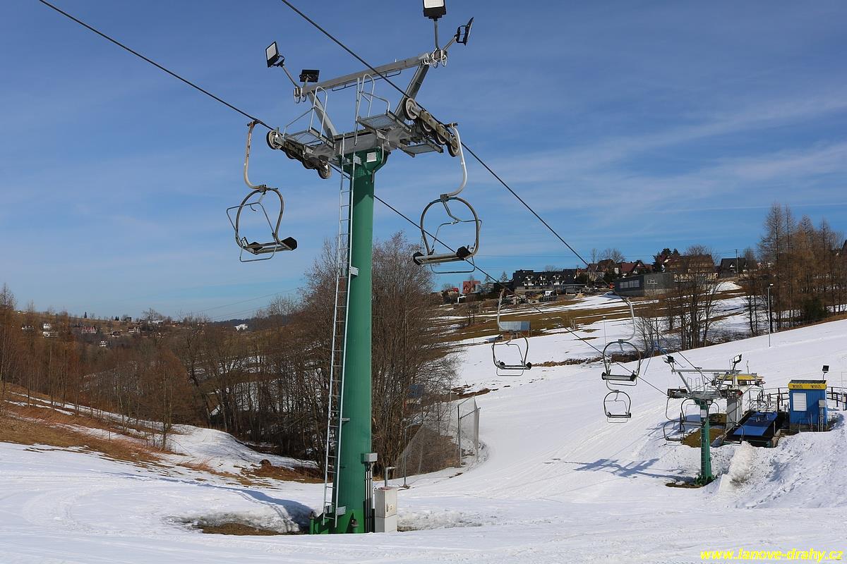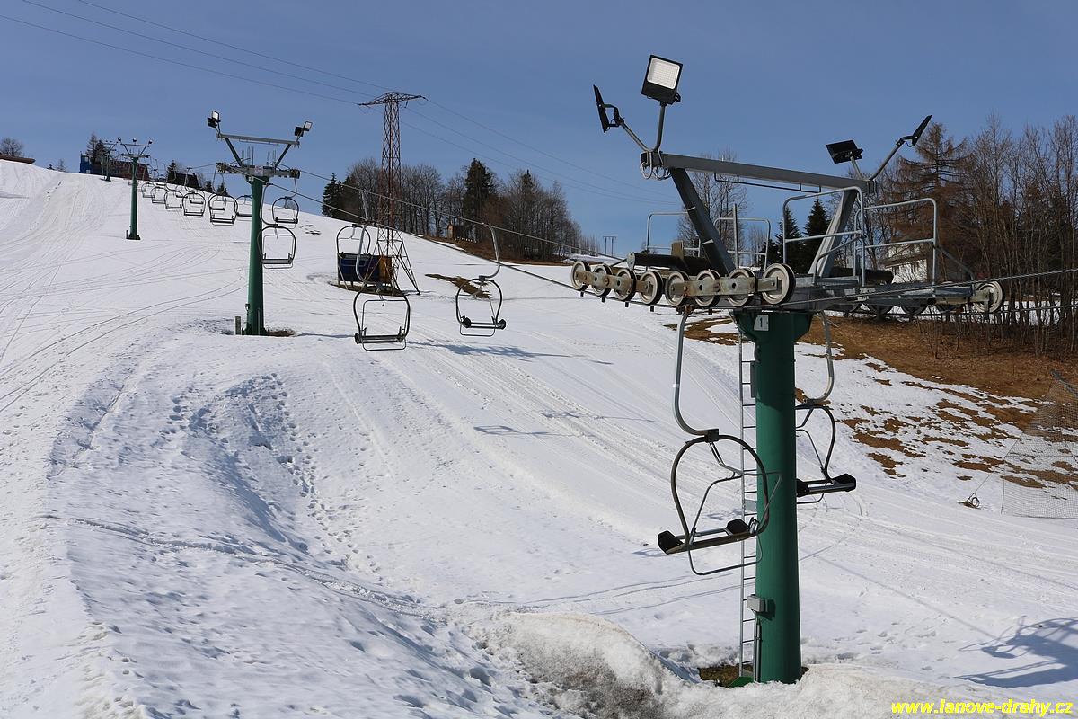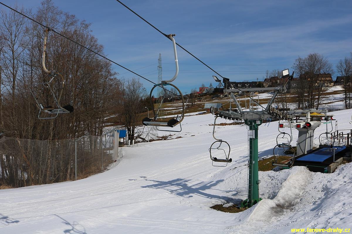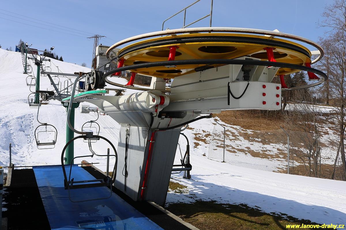 osobní visutá jednolanová dráha oběžného systému s pevným uchycením dvoumístných sedaček