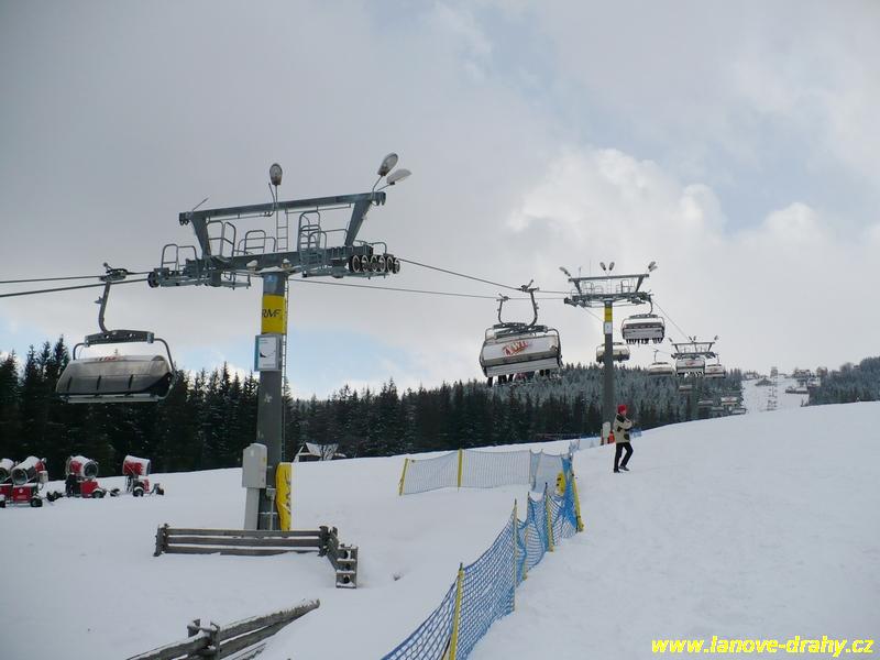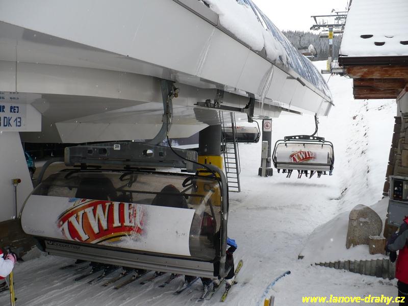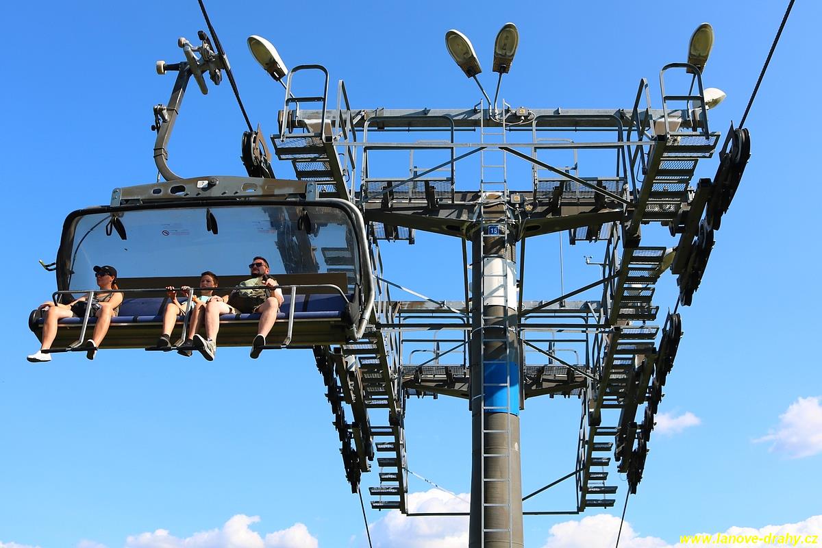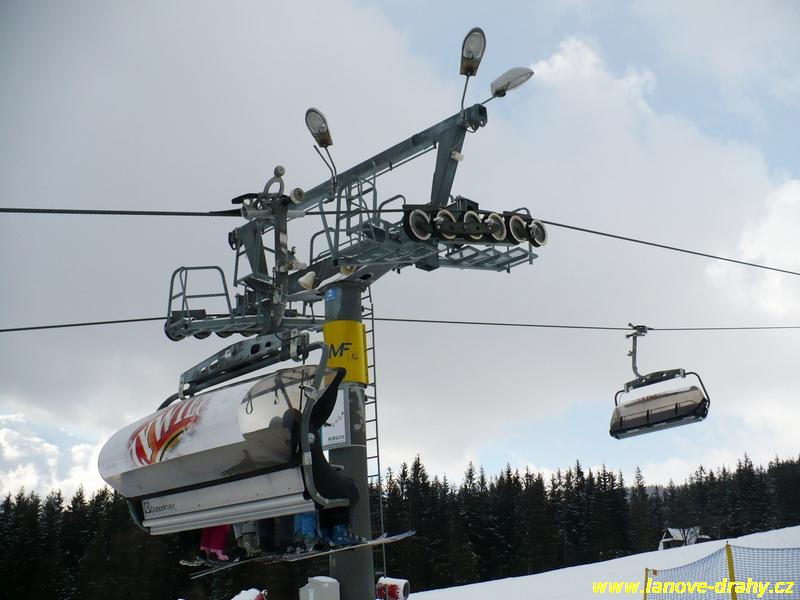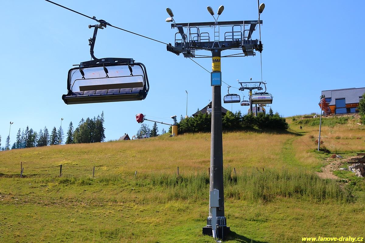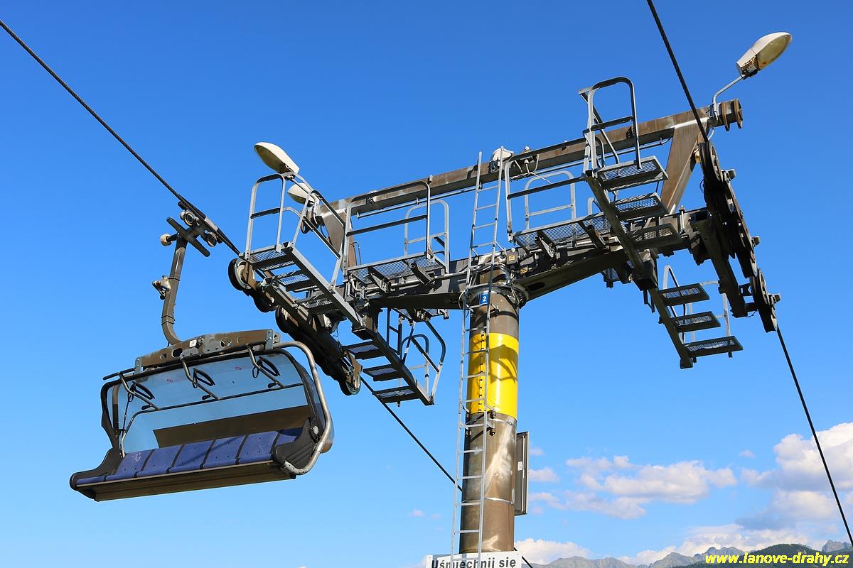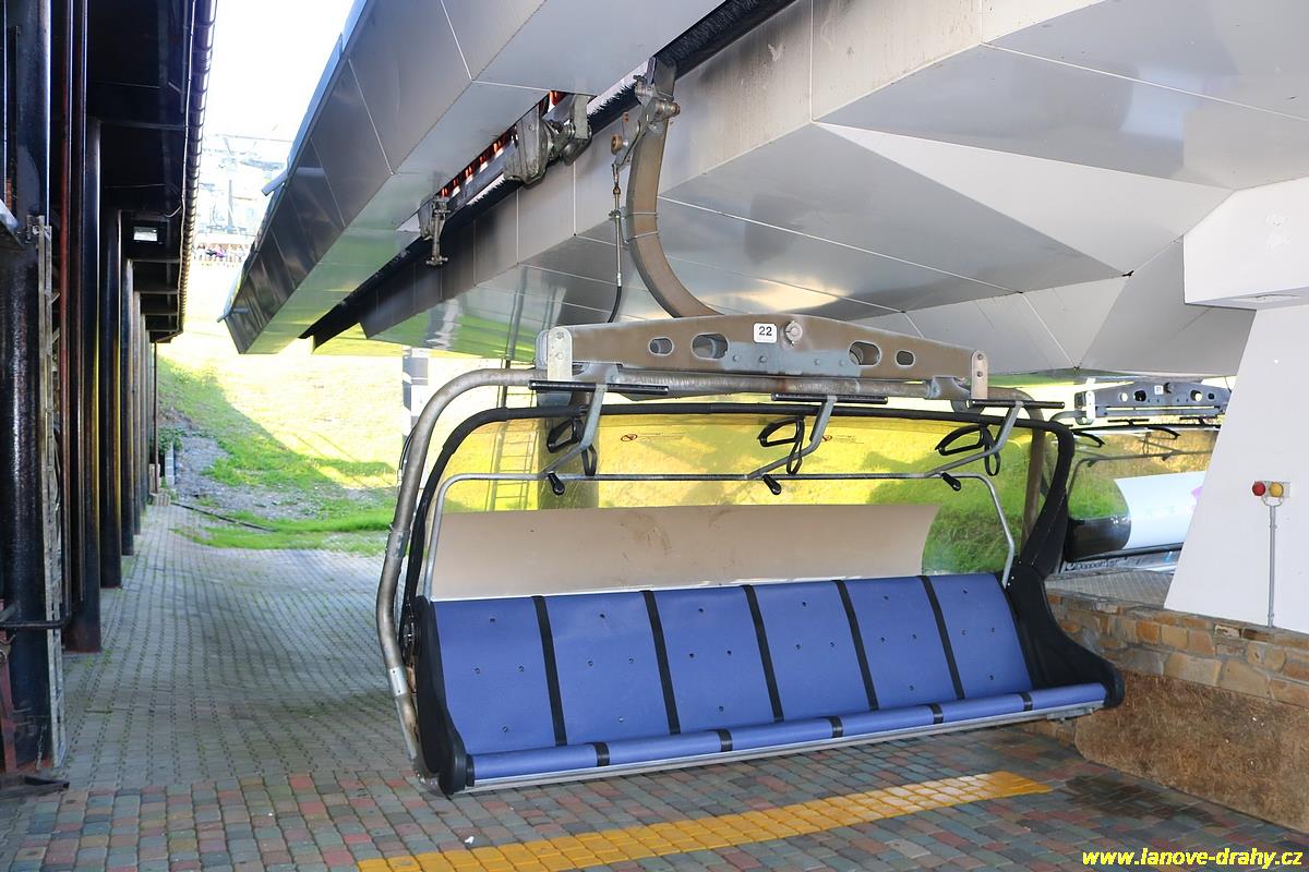 uchycením šestimístných sedaček s bublinami a s 90° výstupem |