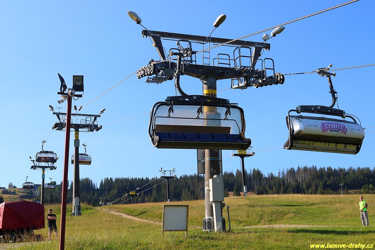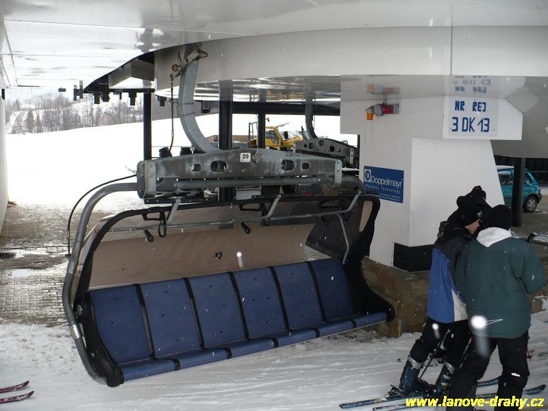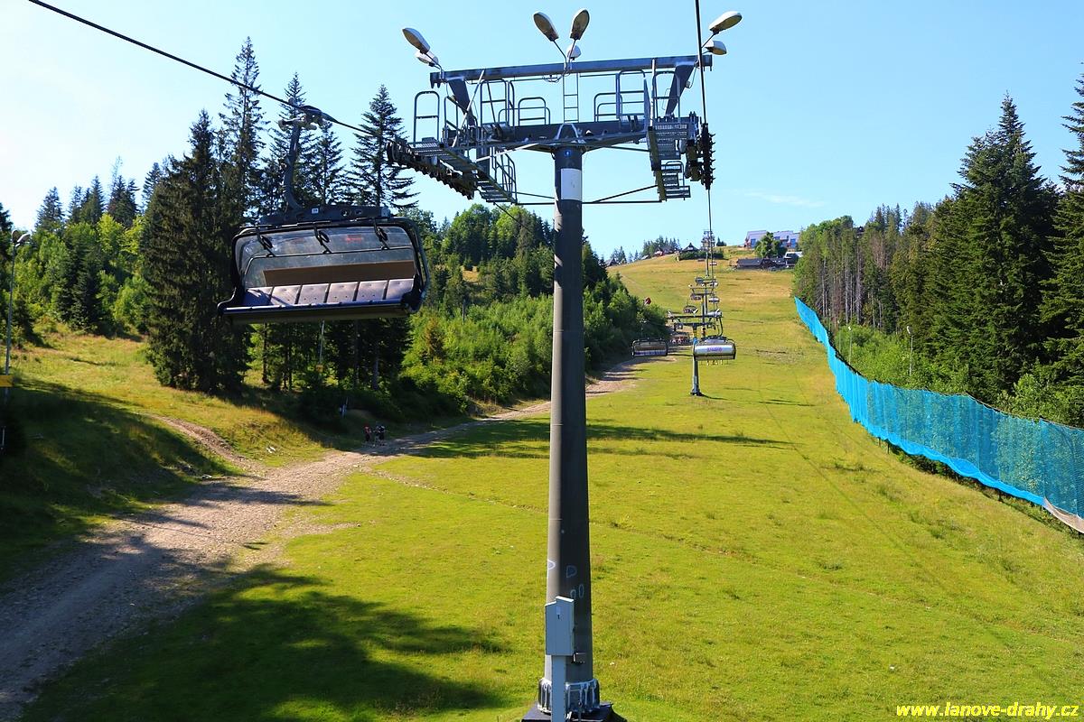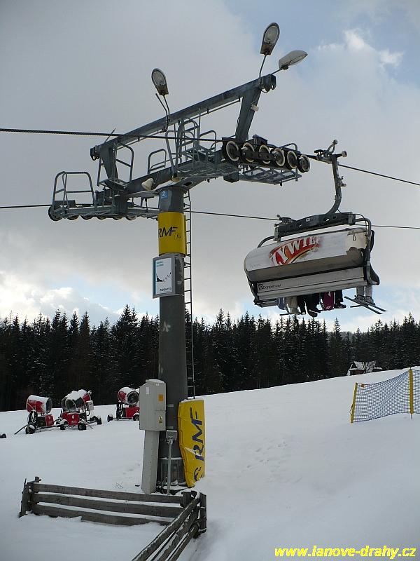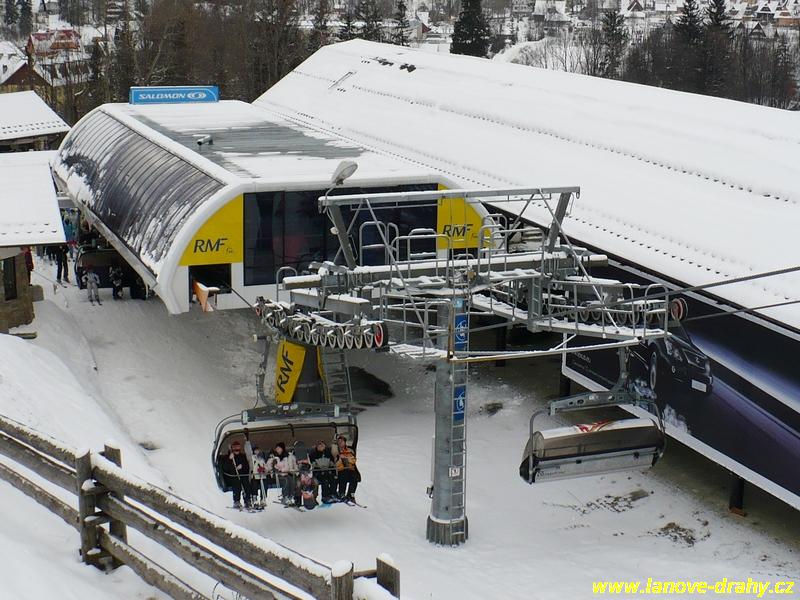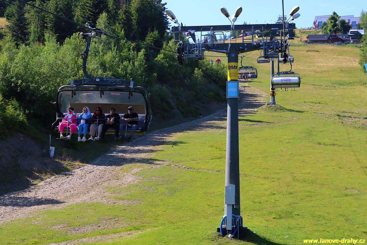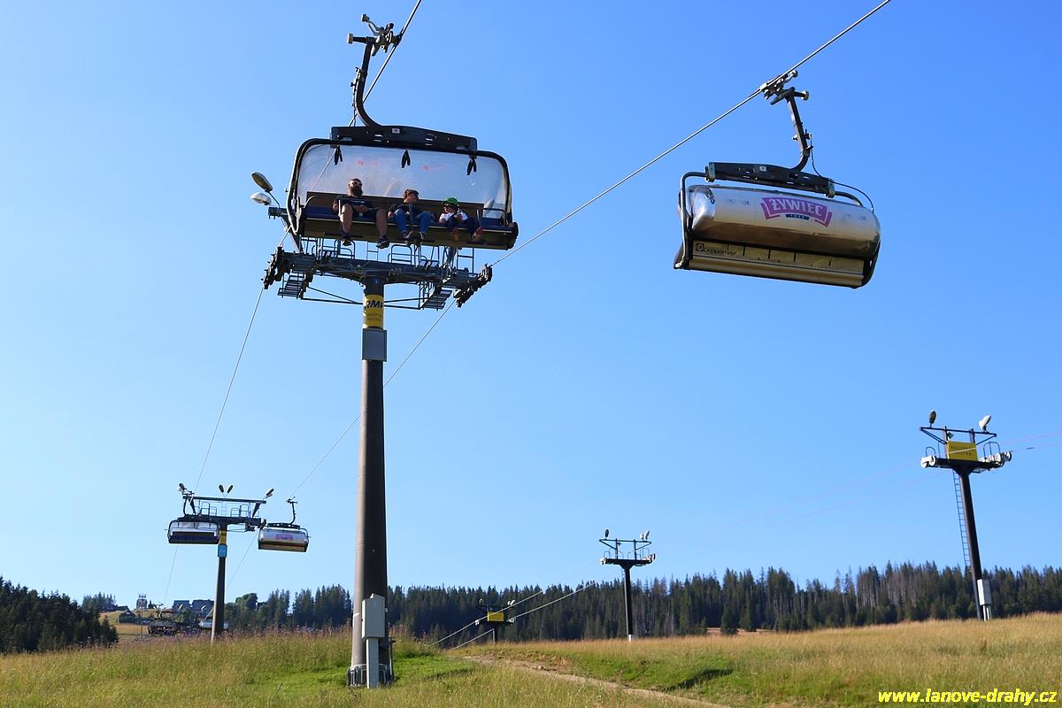 uchycením šestimístných sedaček s bublinami a s 90° výstupem |