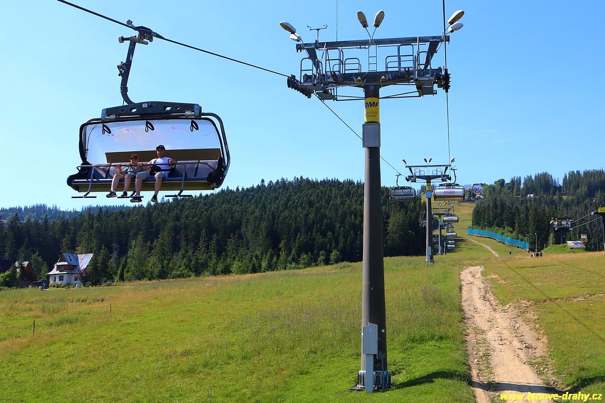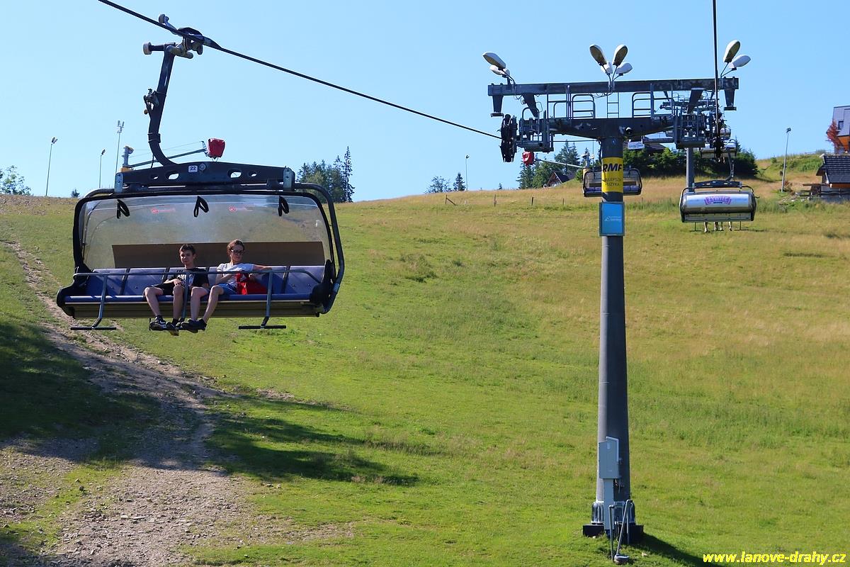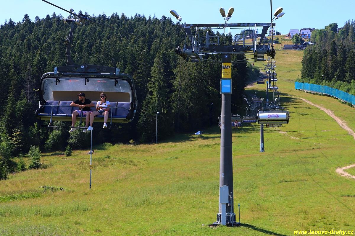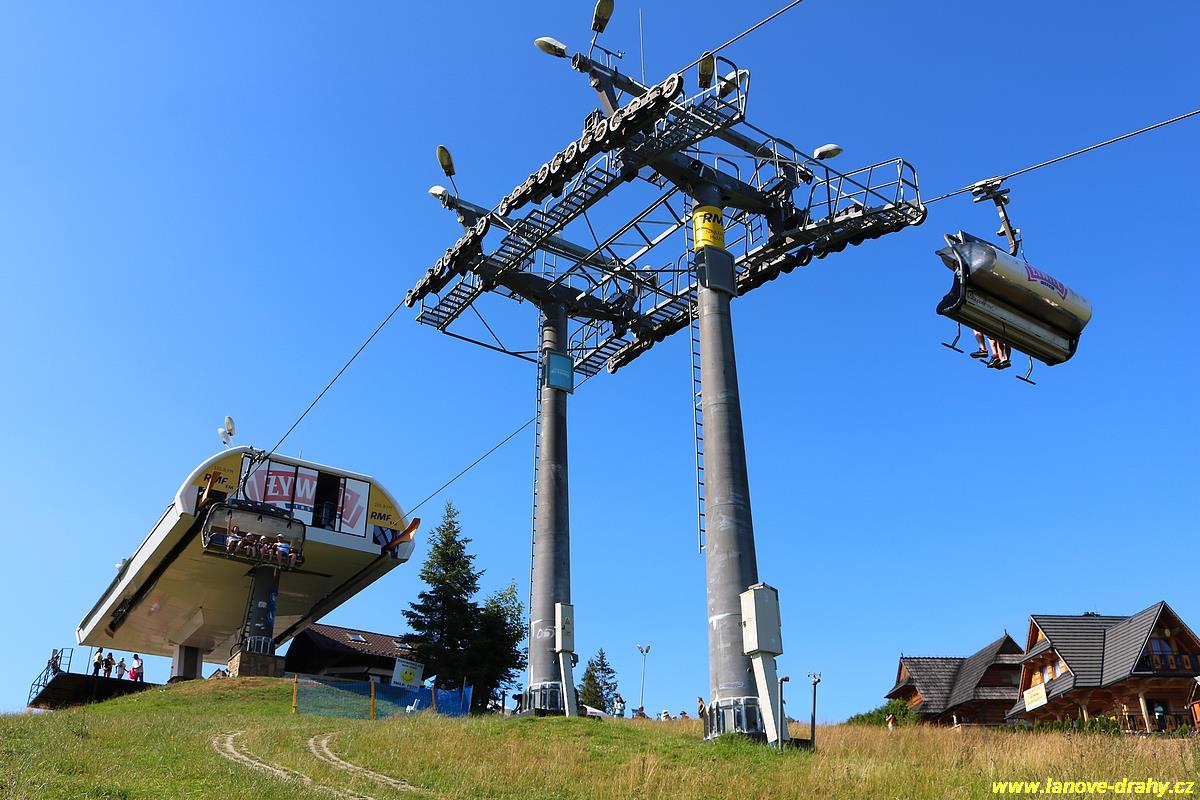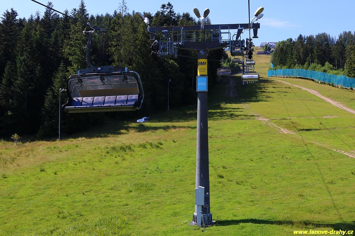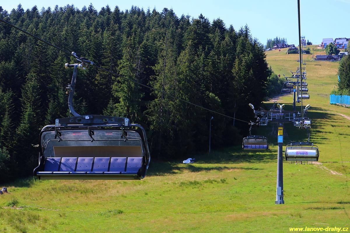 uchycením šestimístných sedaček s bublinami a s 90° výstupem |
