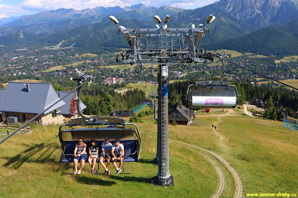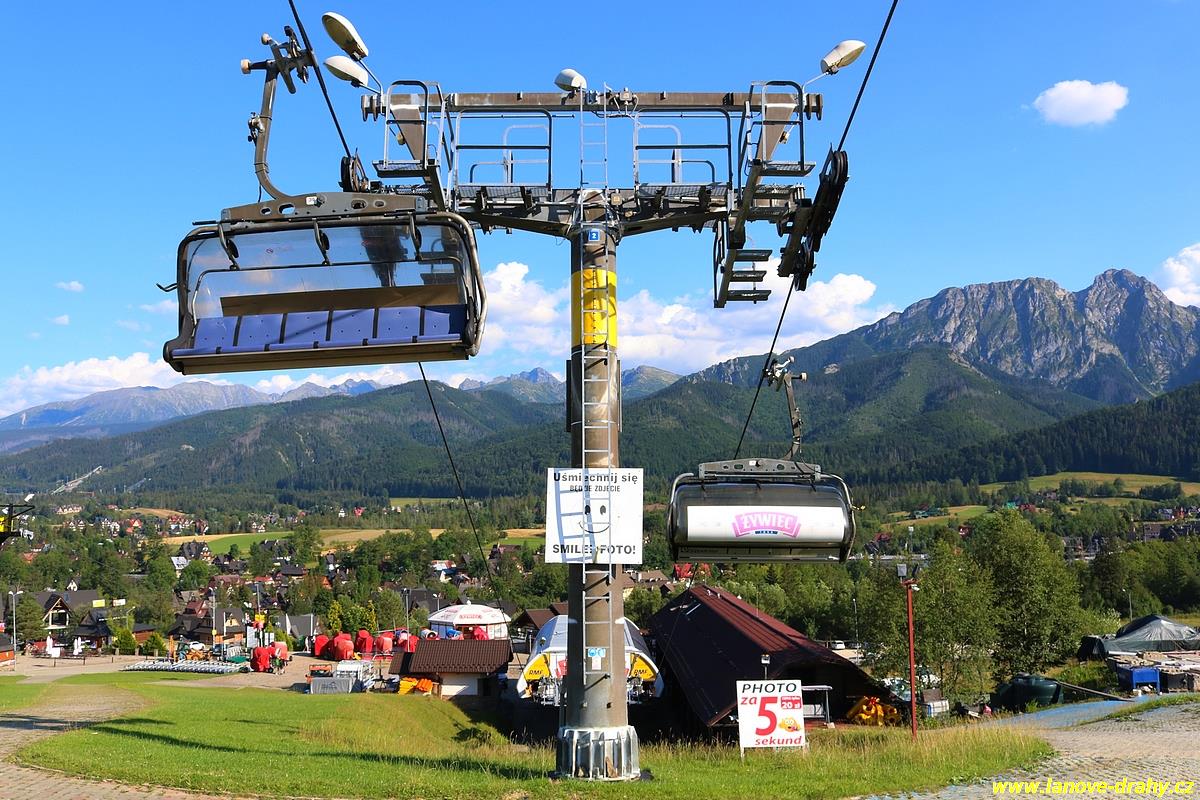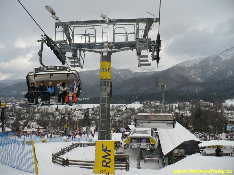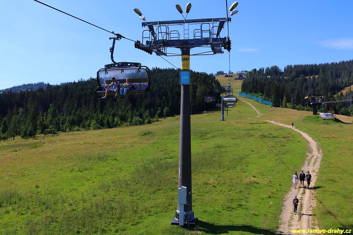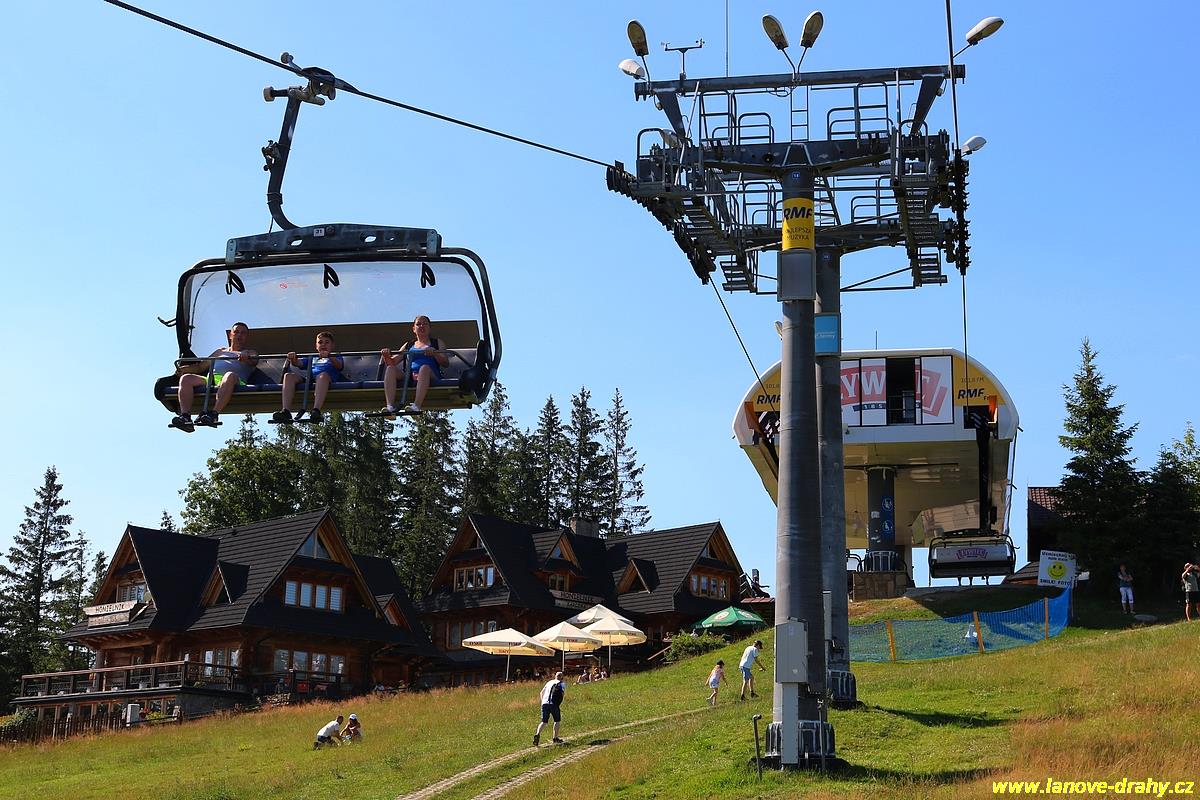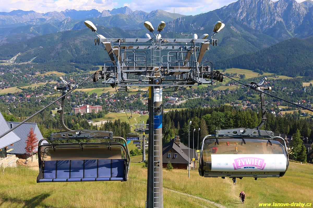 uchycením šestimístných sedaček s bublinami a s 90° výstupem |