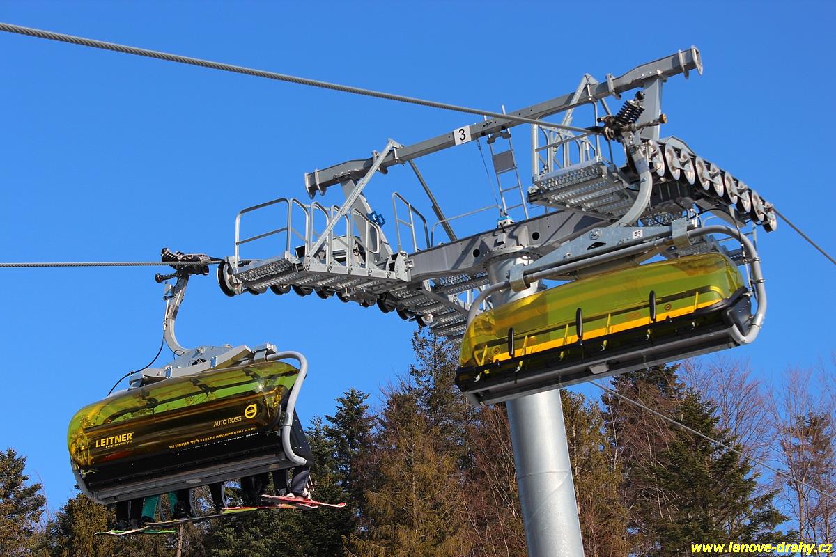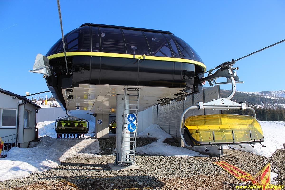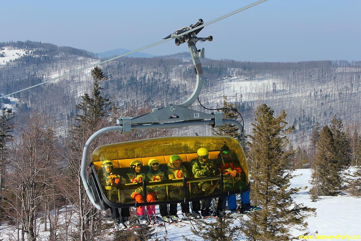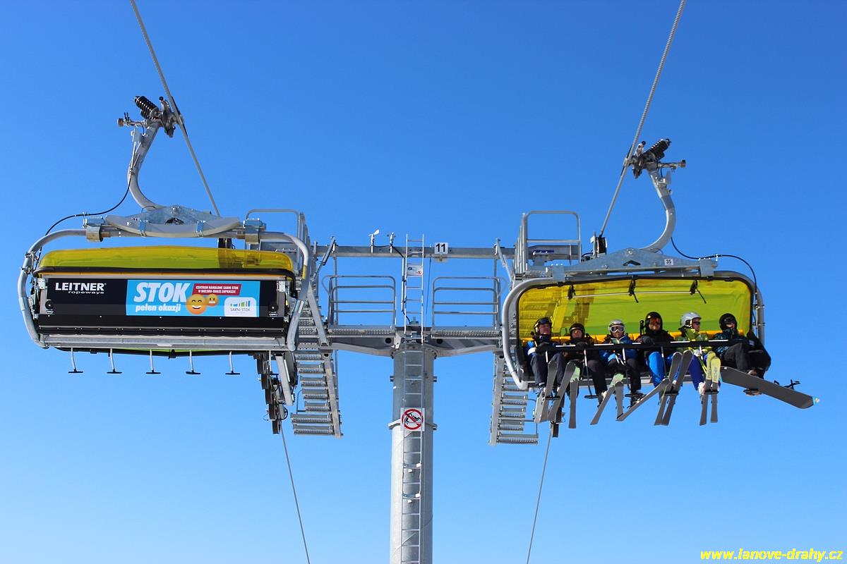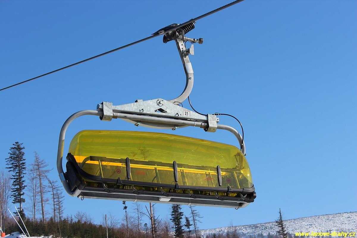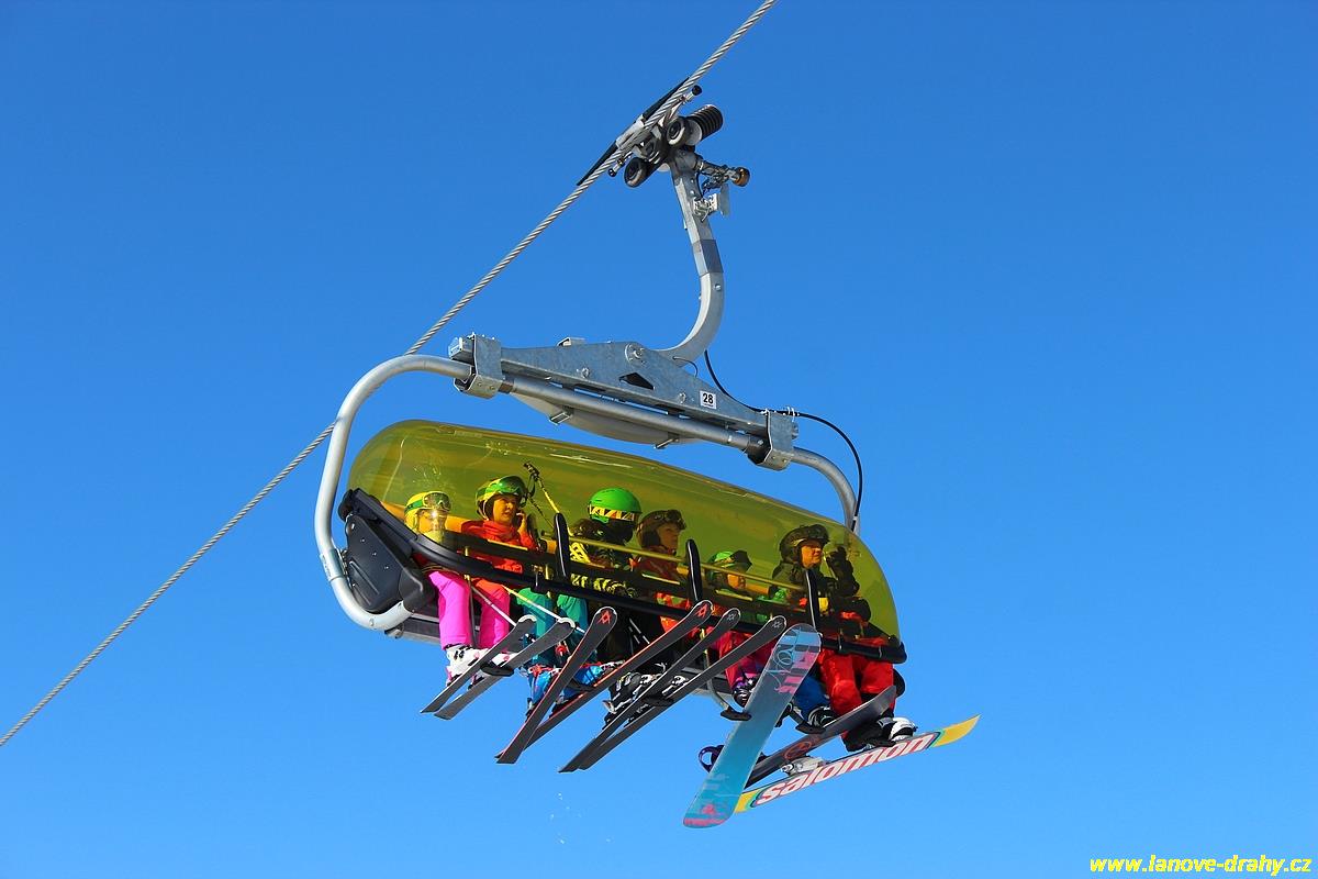 uchycením šestimístných sedaček s žlutými bublinami