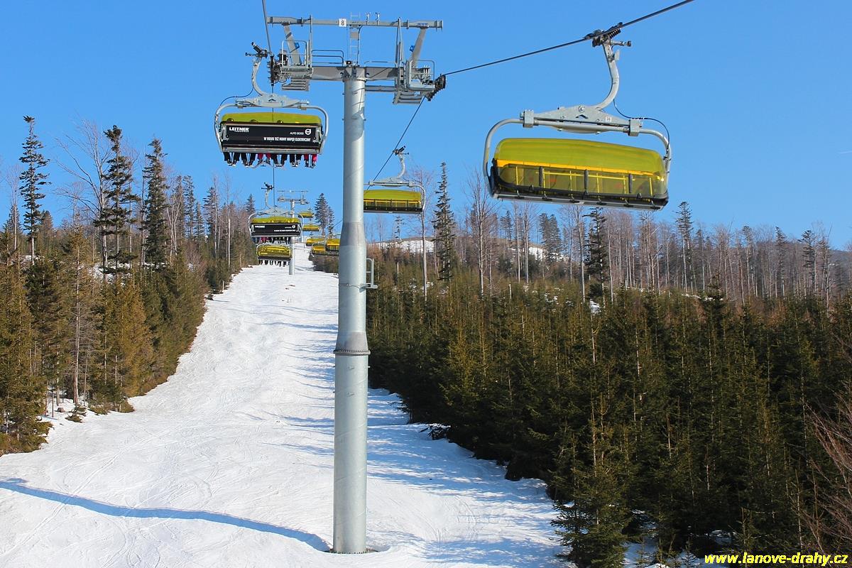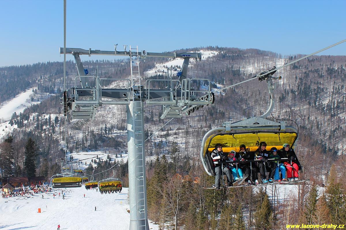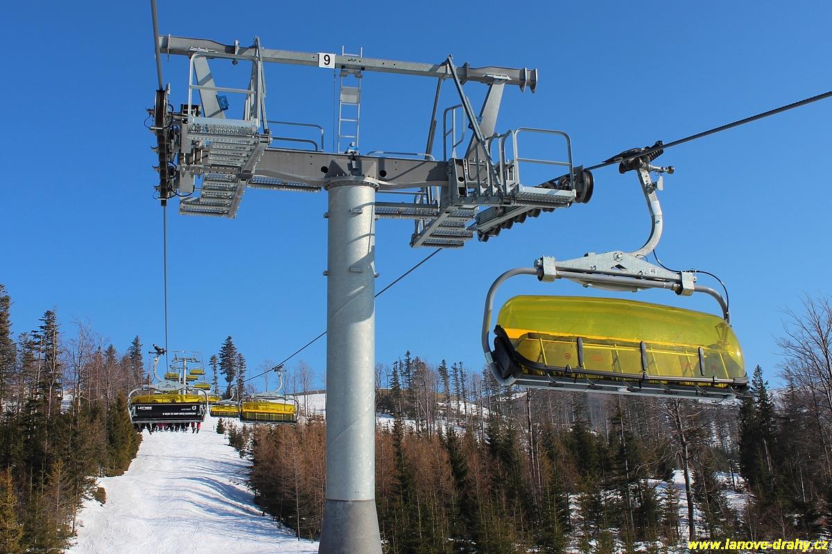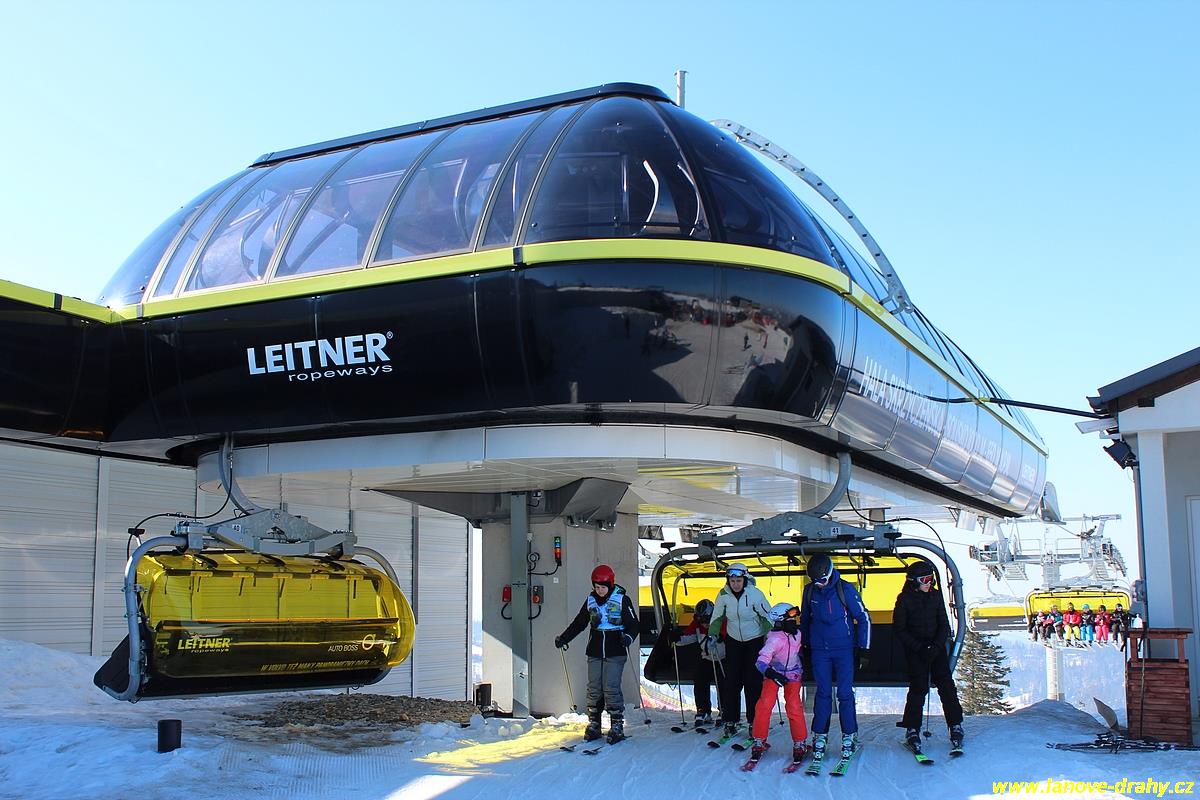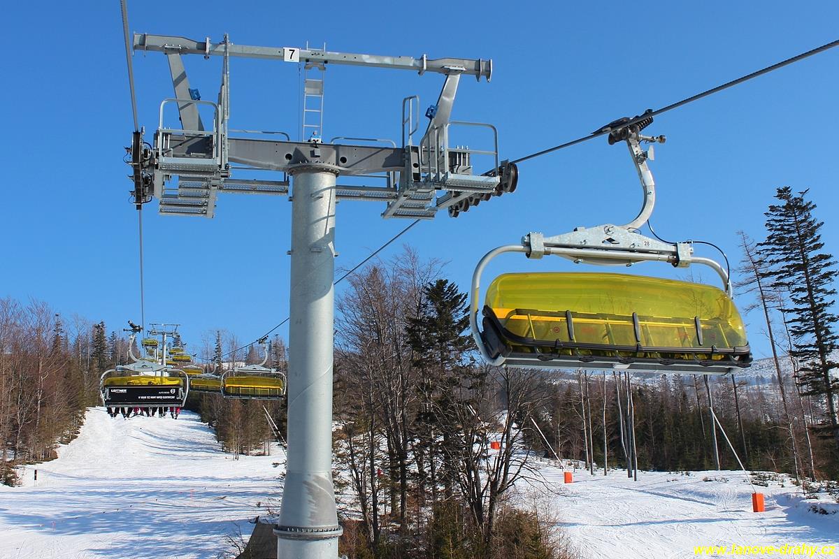 uchycením šestimístných sedaček s žlutými bublinami