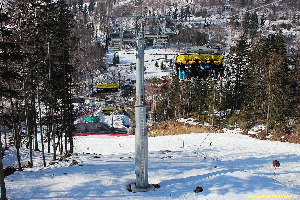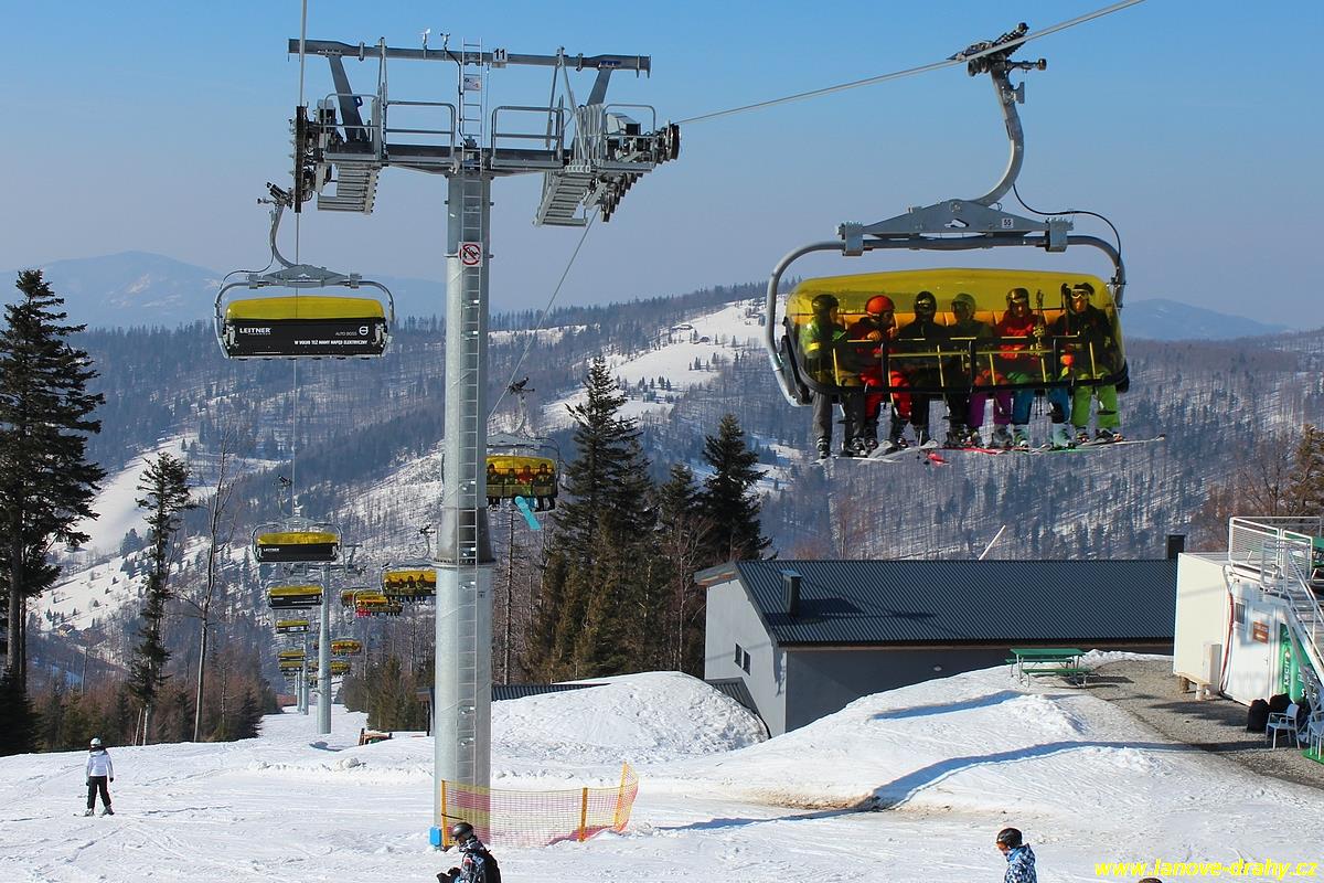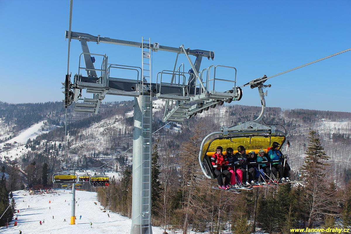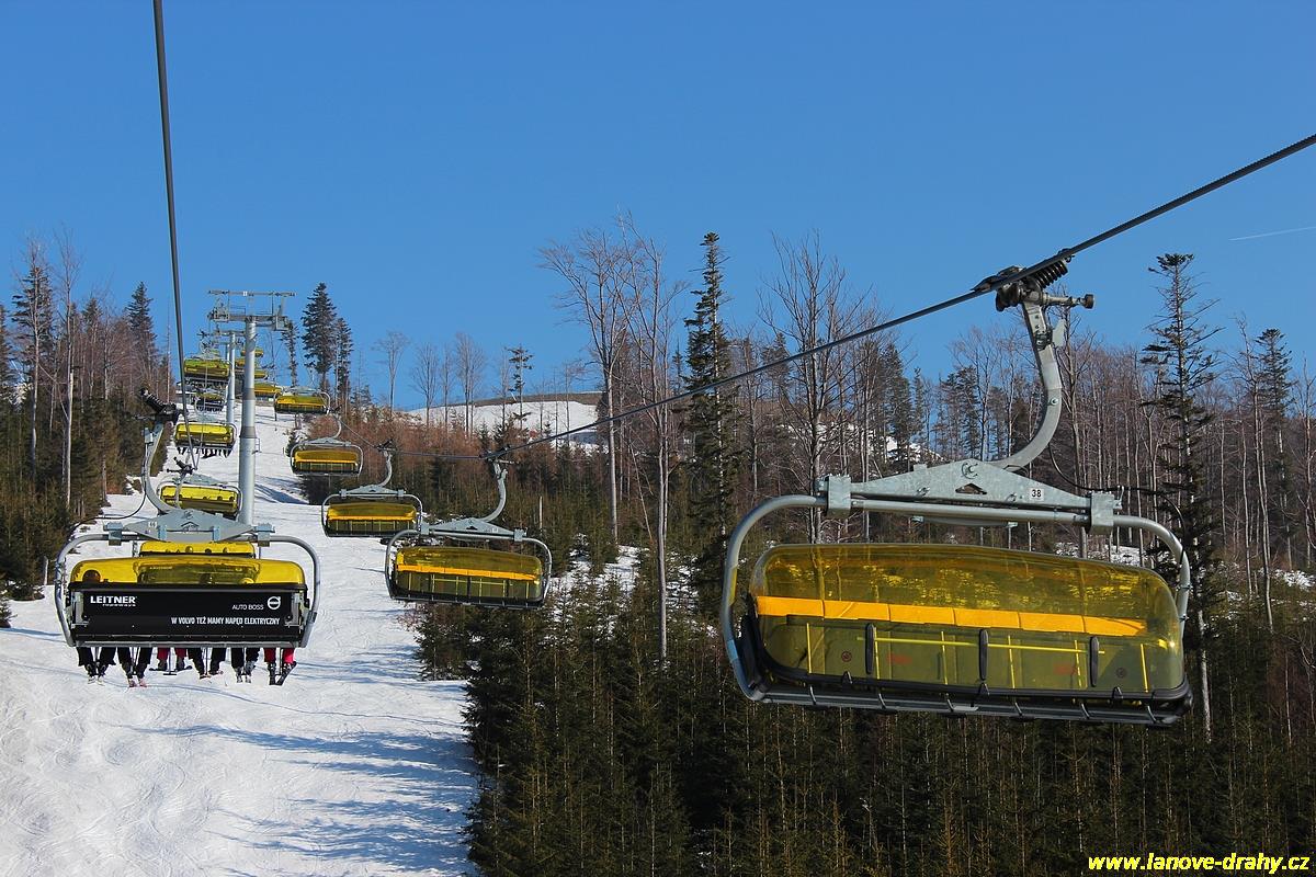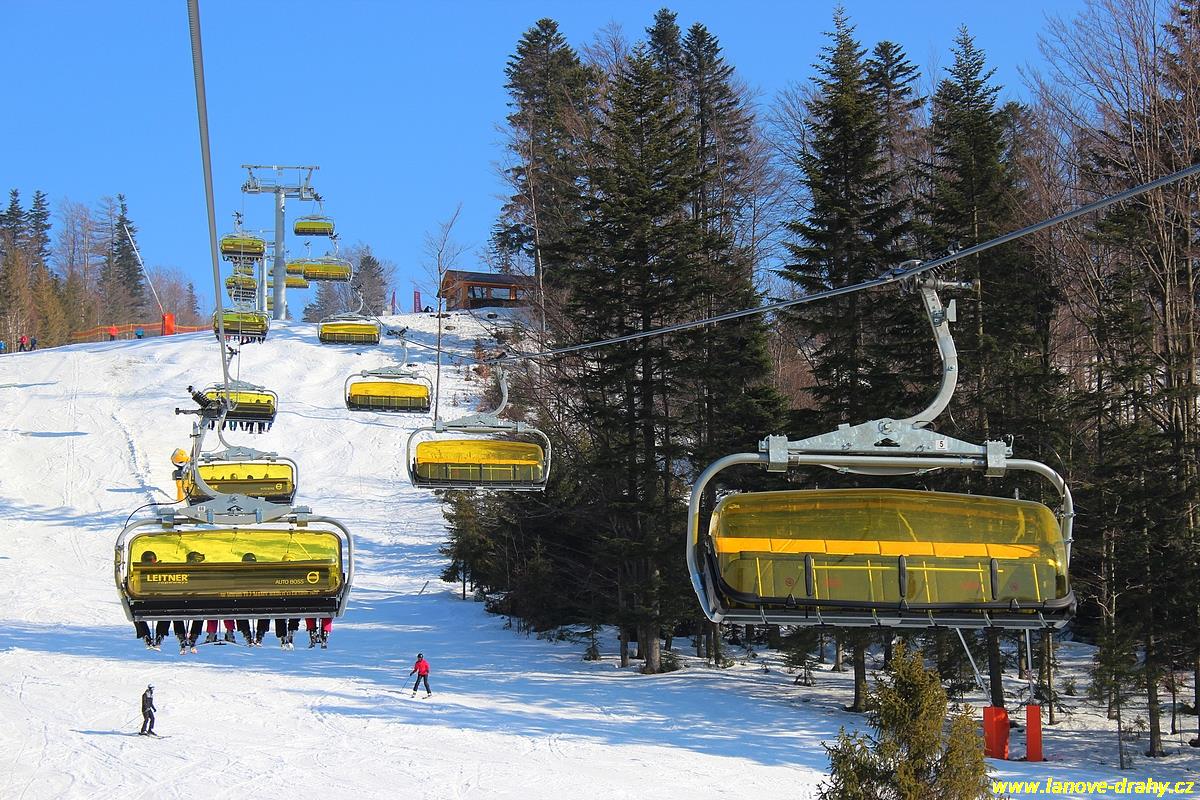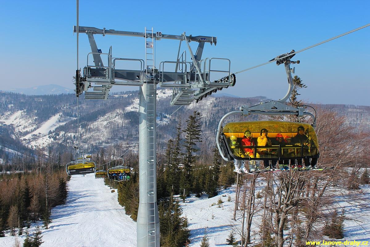 uchycením šestimístných sedaček s žlutými bublinami