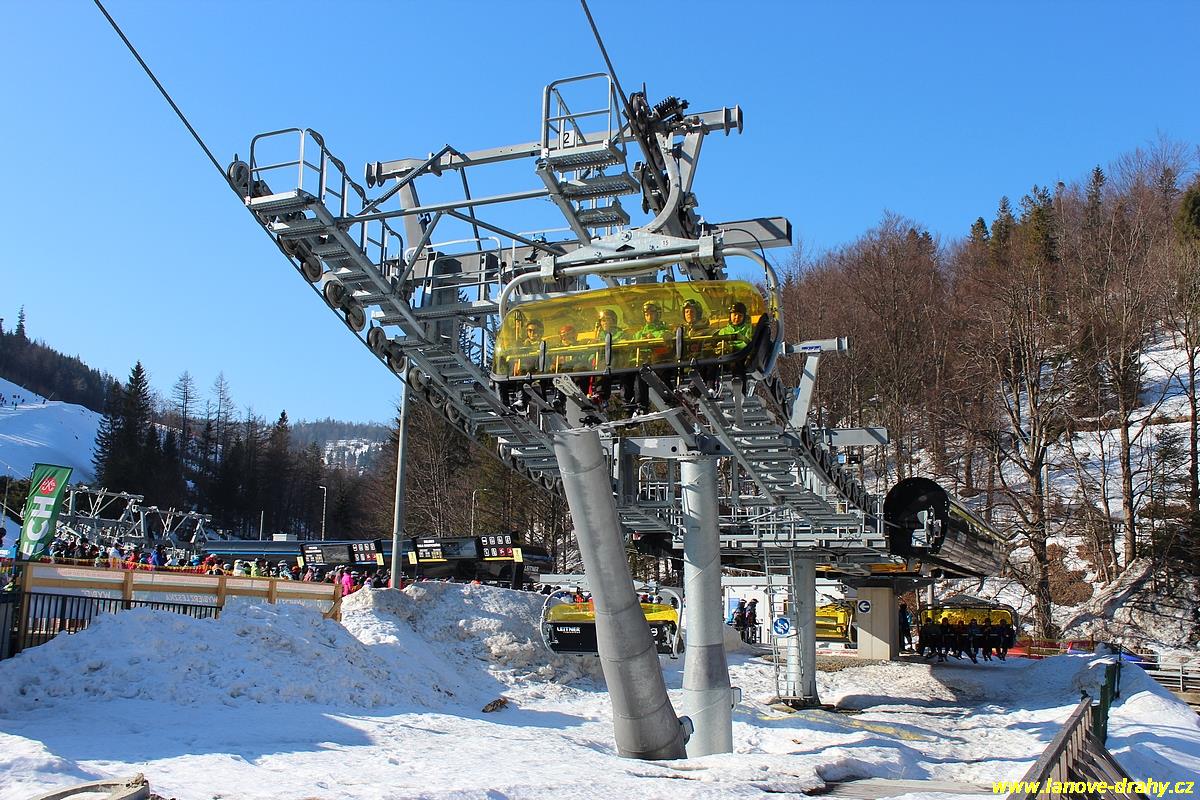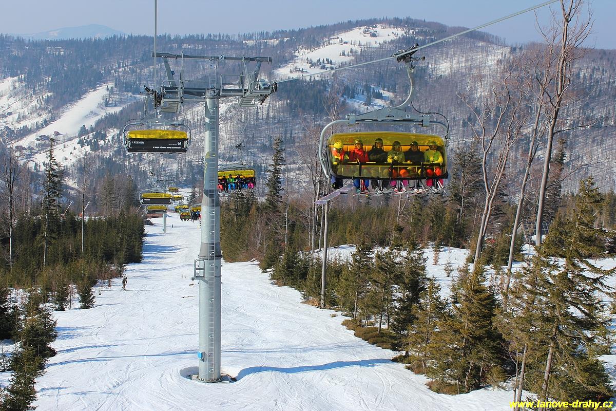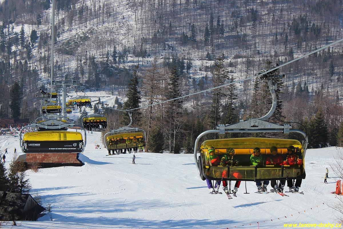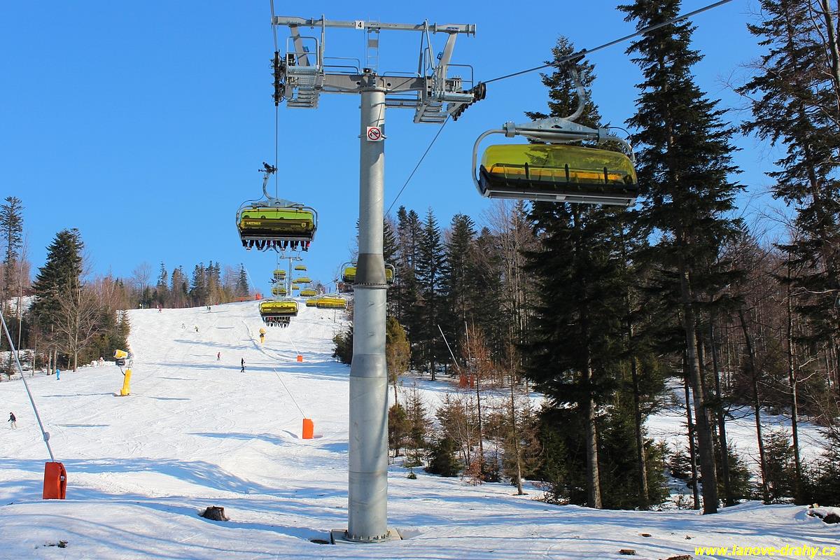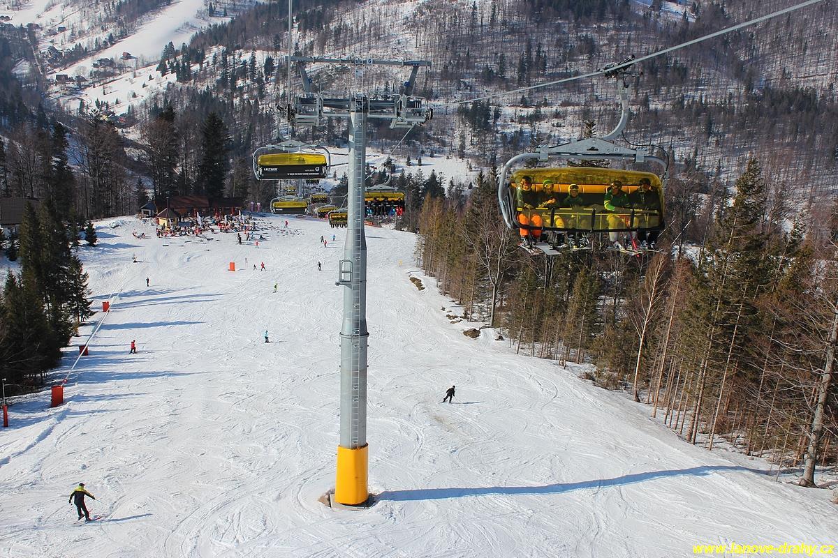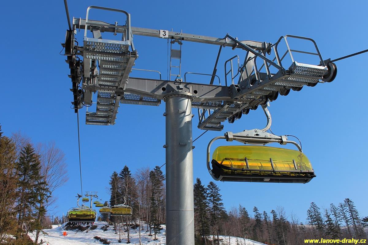 uchycením šestimístných sedaček s žlutými bublinami
