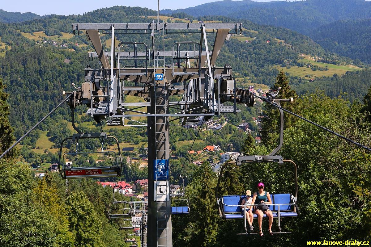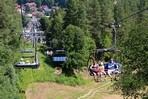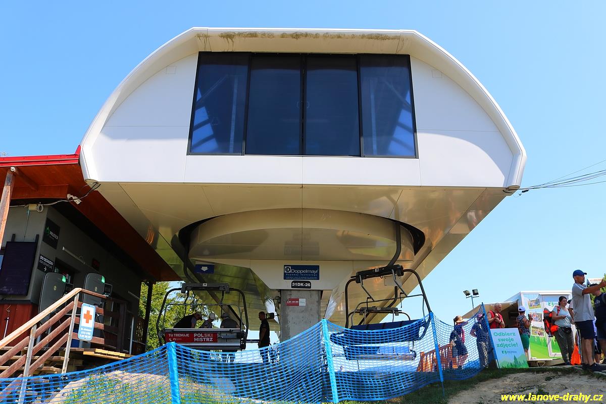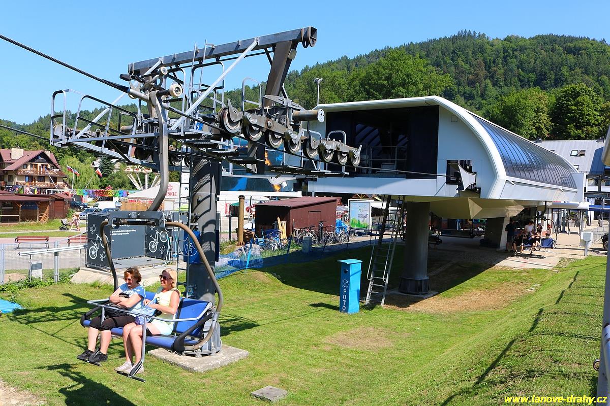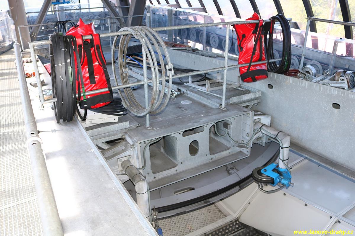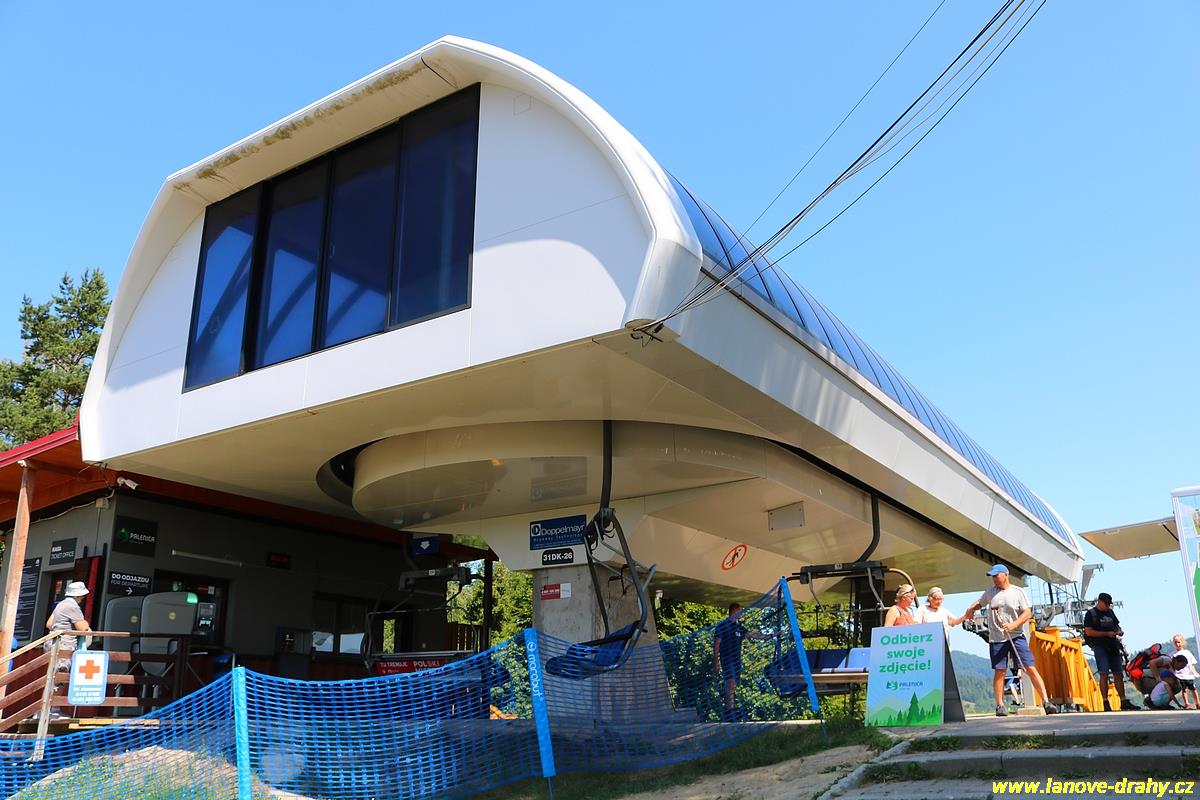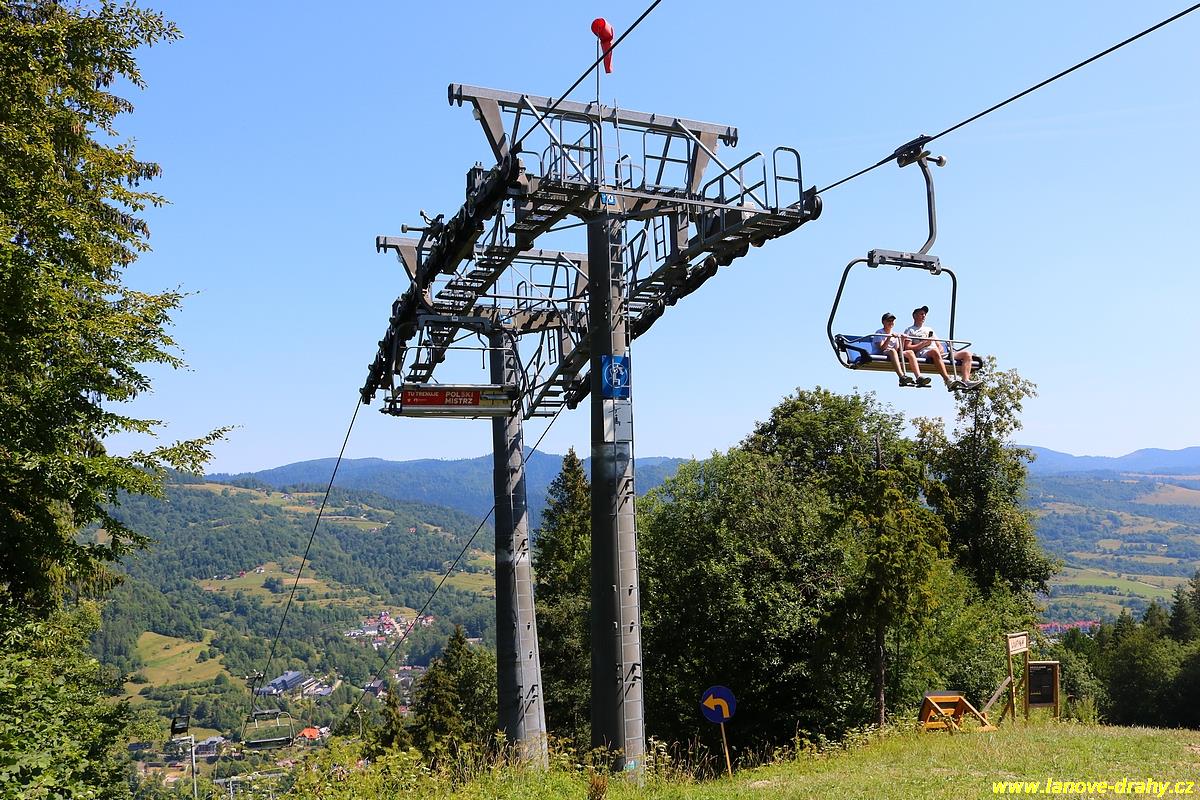 osobní visutá jednolanová dráha oběžného systému s odpojitelným uchycením čtyřmístných sedaček |