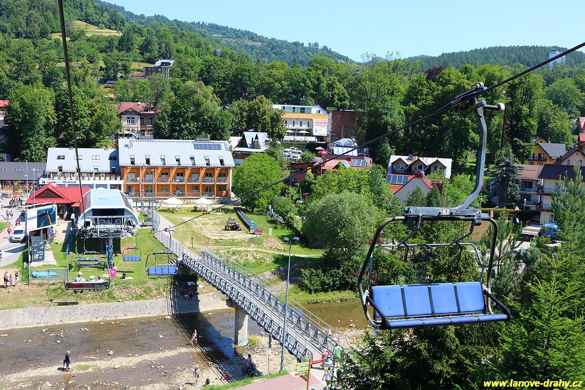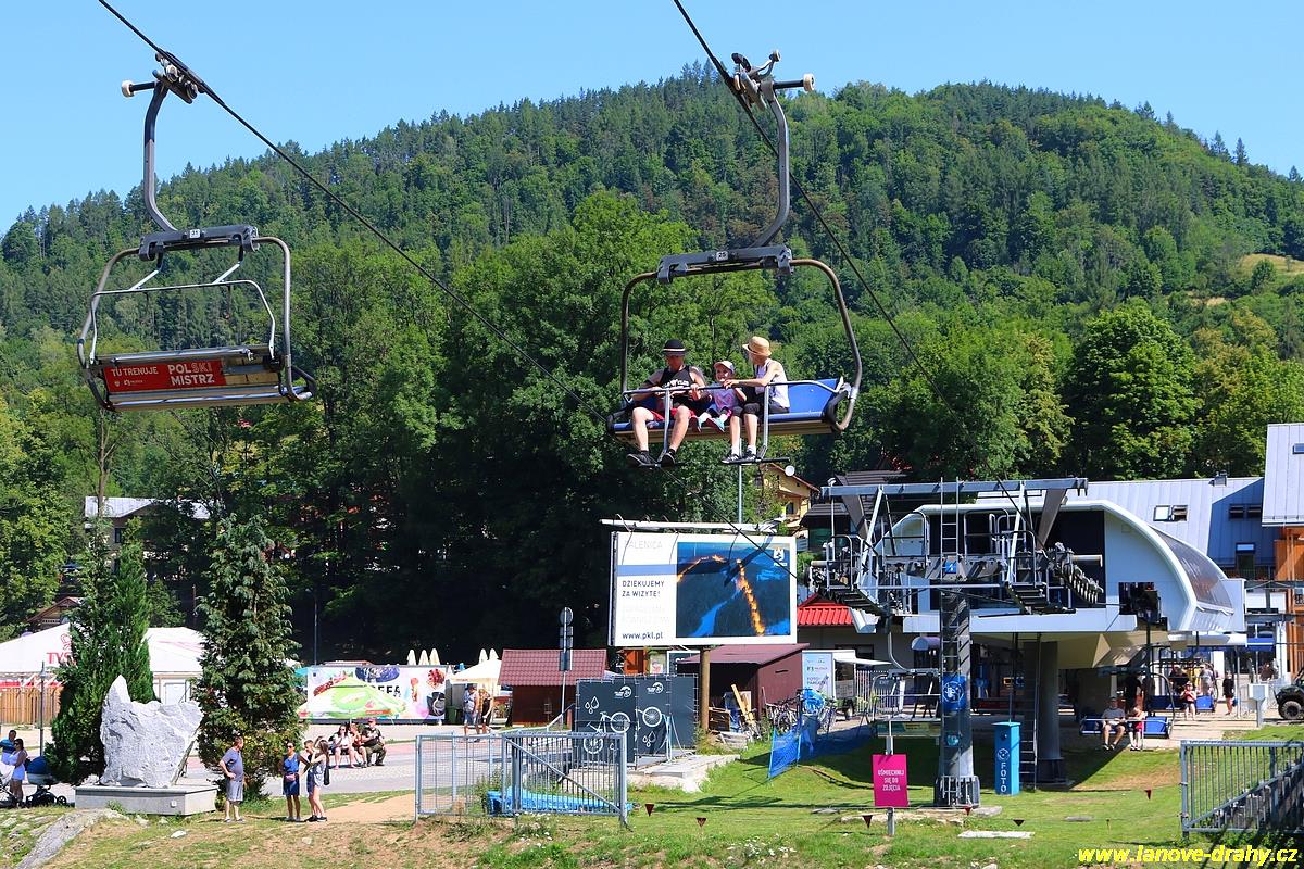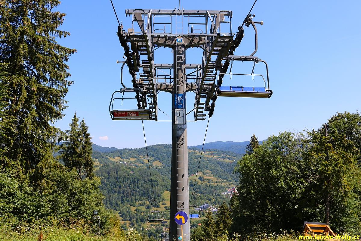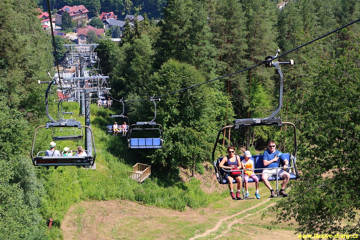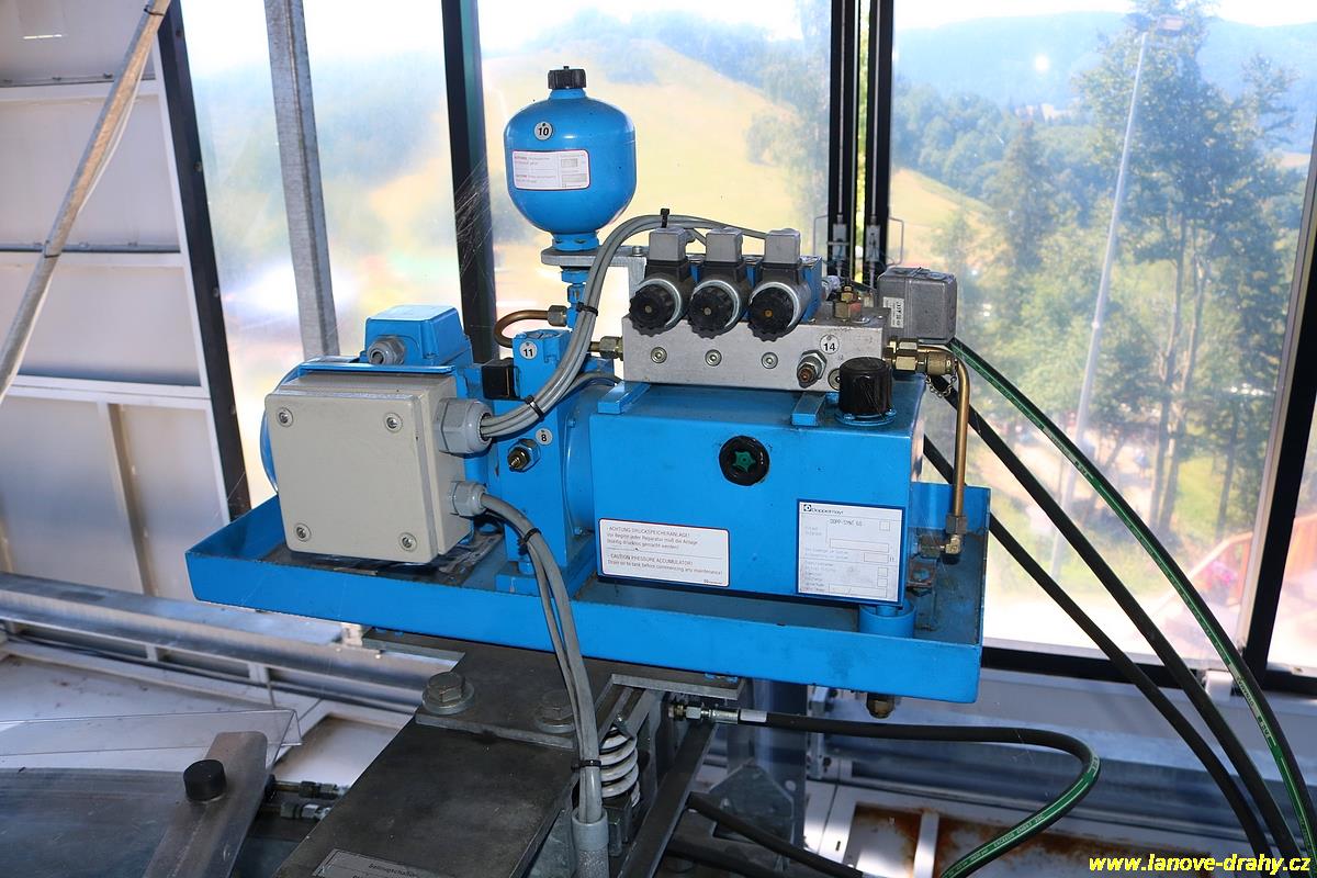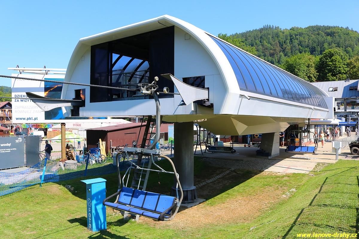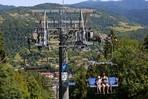 osobní visutá jednolanová dráha oběžného systému s odpojitelným uchycením čtyřmístných sedaček |