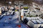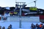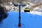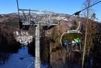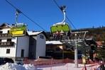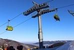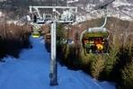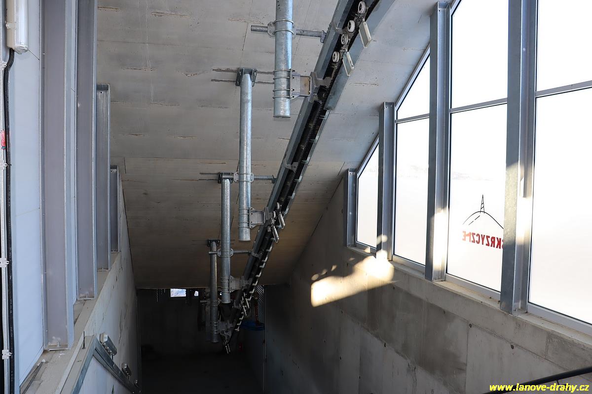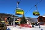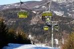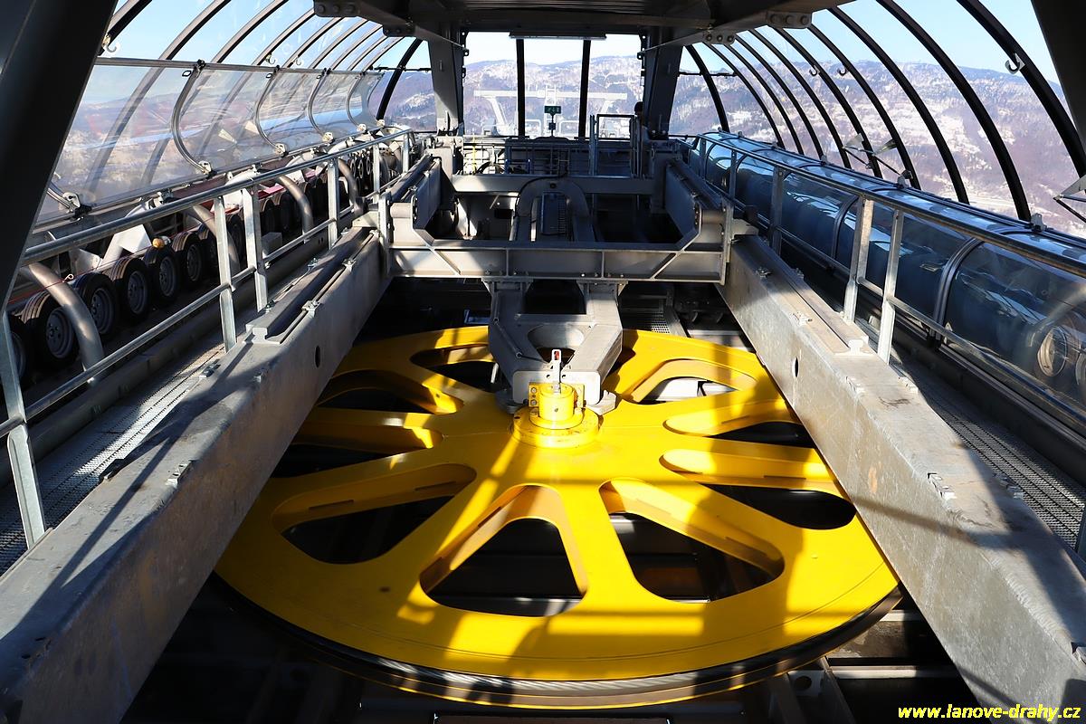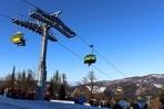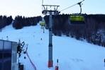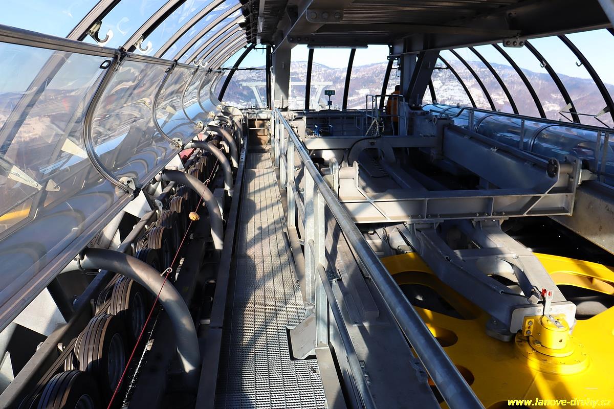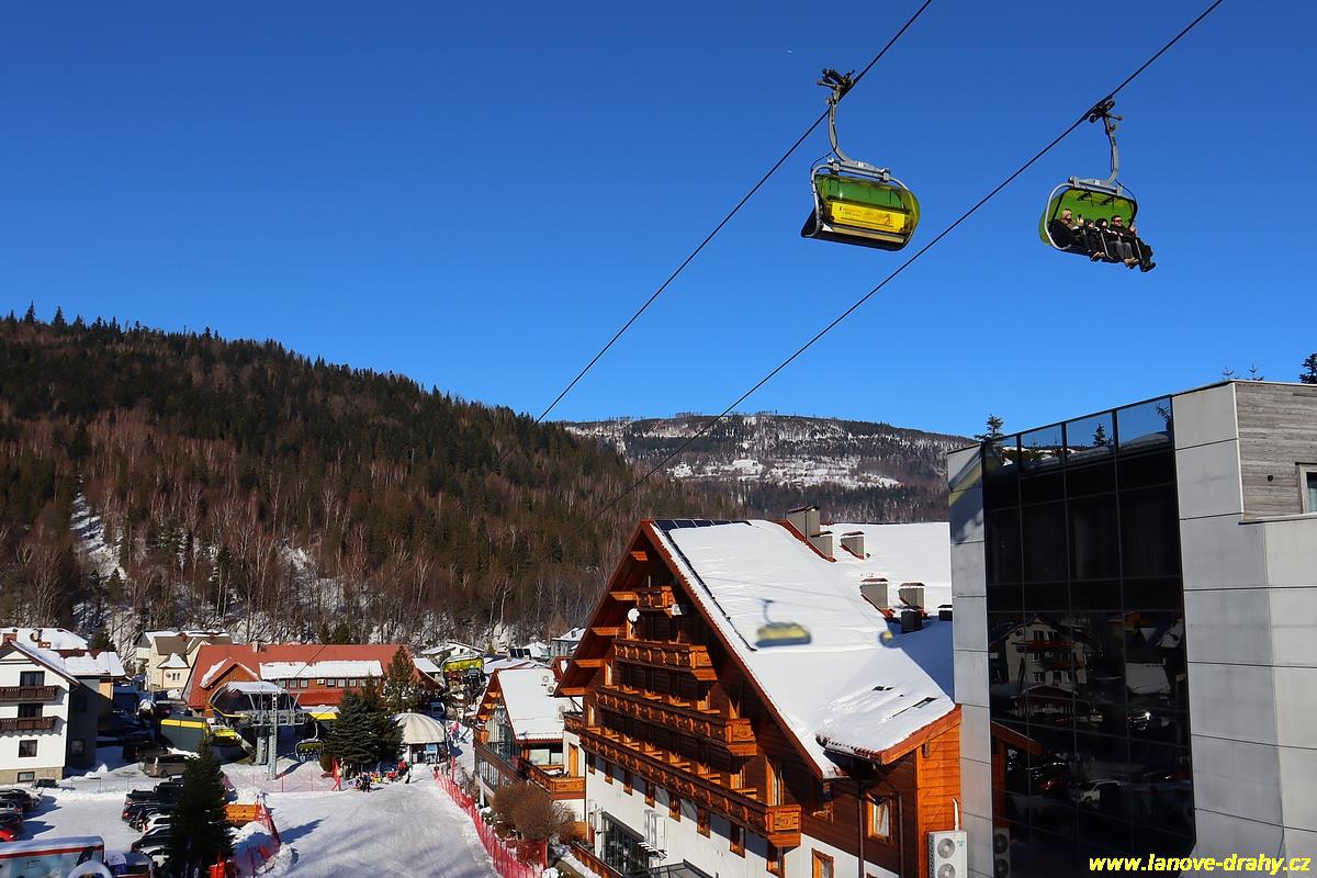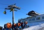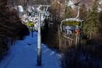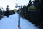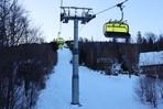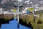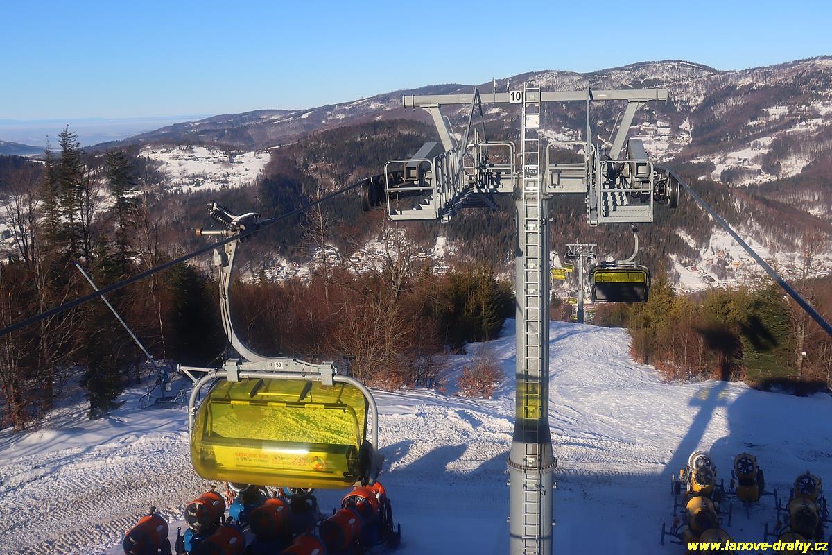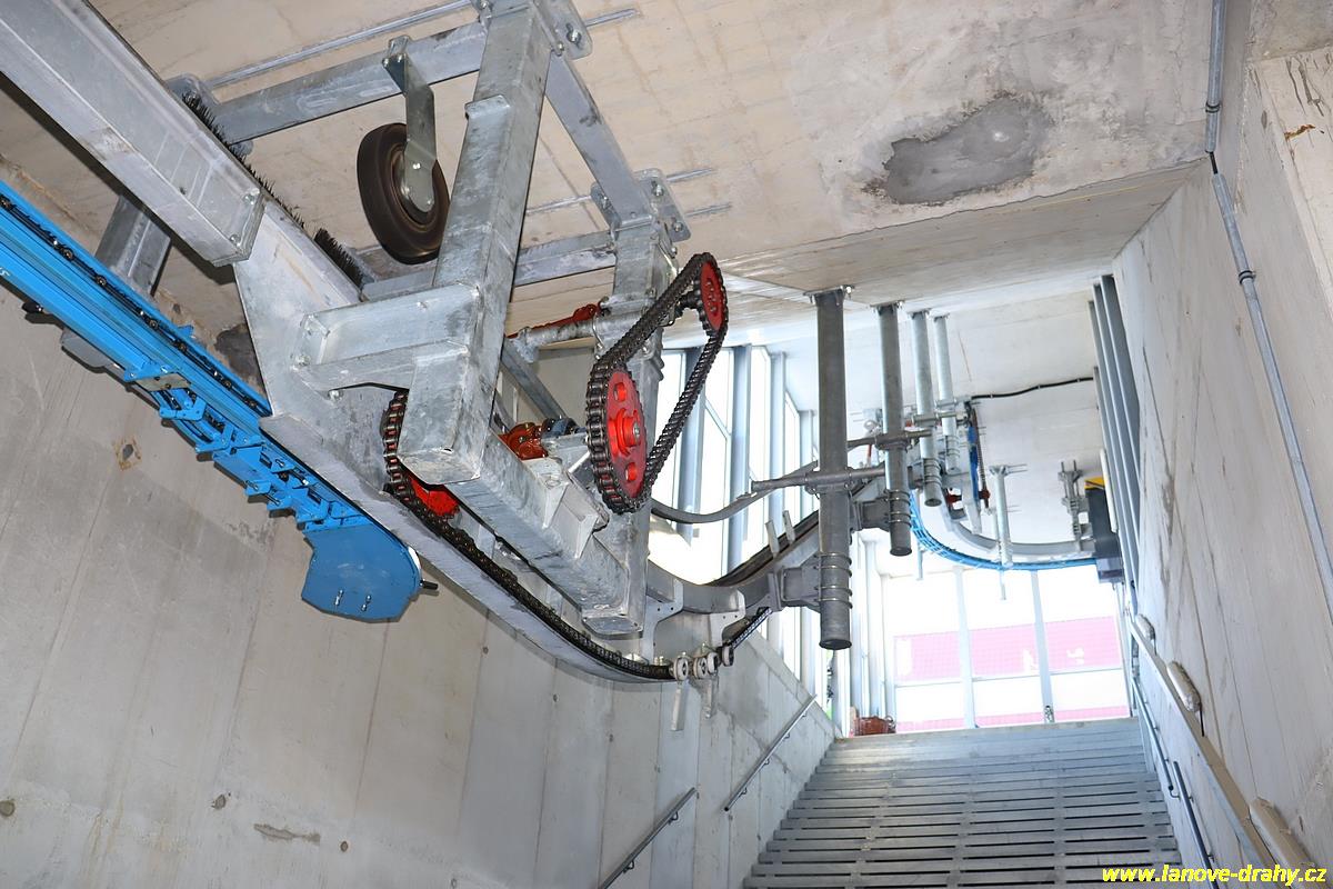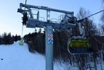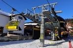 čtyřmístných sedaček se žlutými bublinami a s nástupním pásem |
