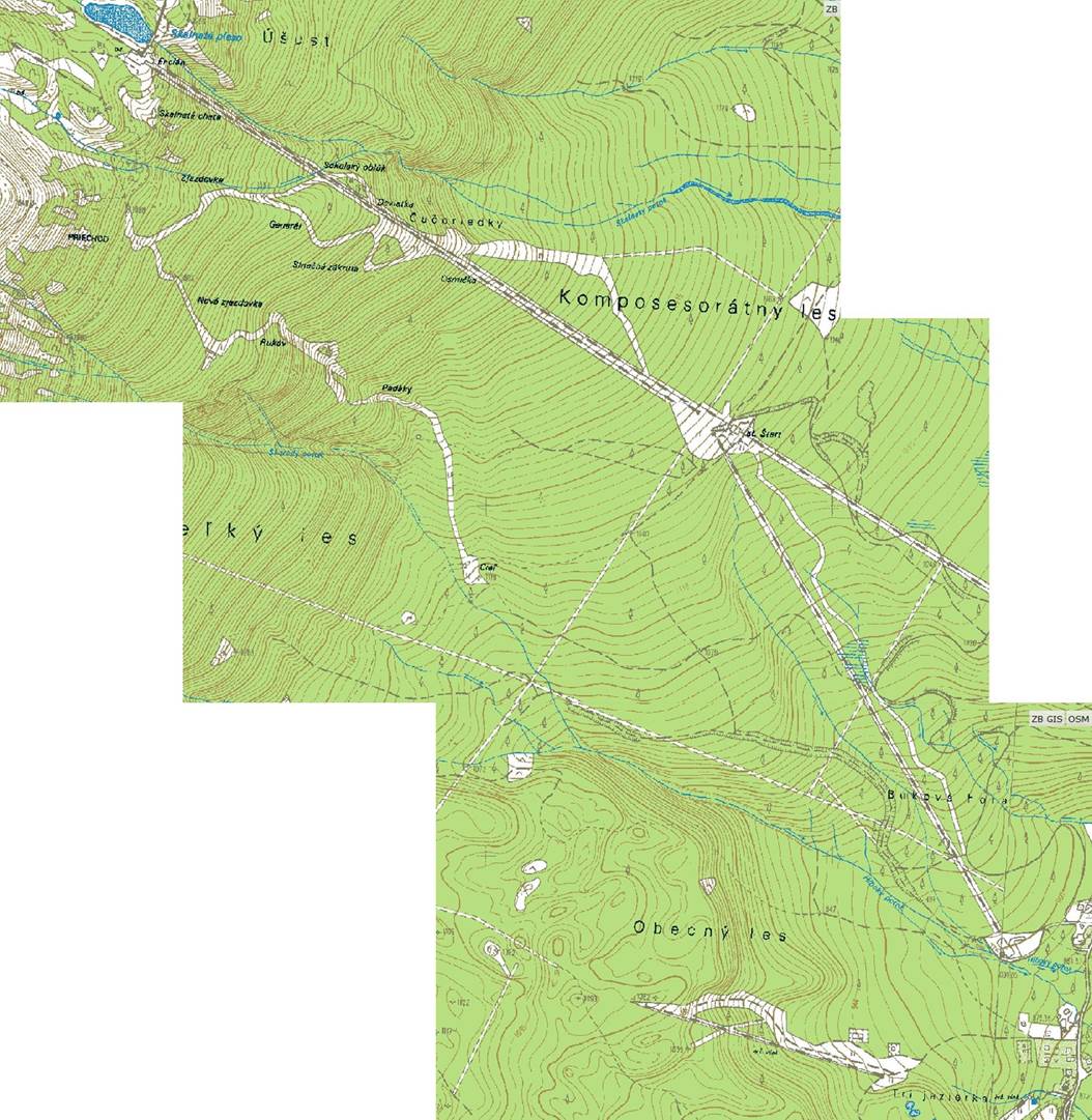 dokonce i s názvy jednotlivých úseků. Průsek po ní je patrný i na současných leteckých mapách.