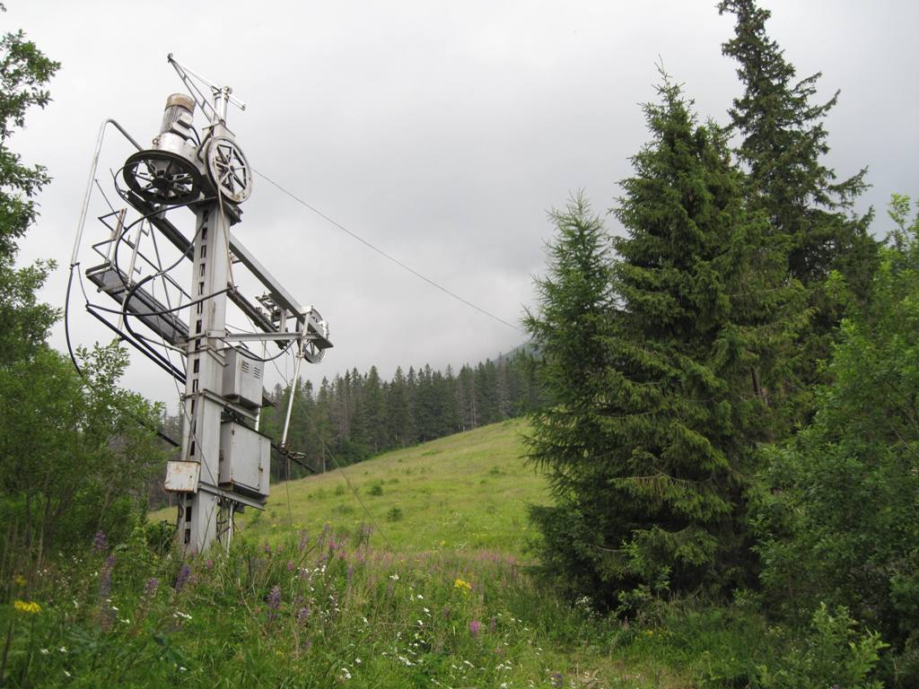 a na Dolnej lúke H-40. Že dosud nedemontovali vlek na pravé straně louky je dobře, vypadá stále provozuschopně. Ale bez