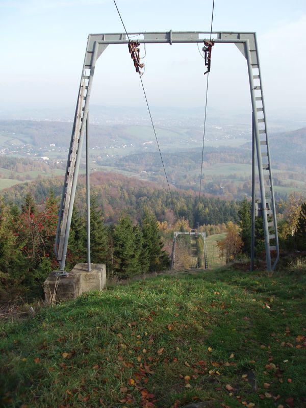 Vím, že za touto skupinkou nosných podpěr je pak ještě jedna, potom následuje tlačná a pak se mi zdálo že vlek vede po velmi mírném svahu až k dolní stanici...