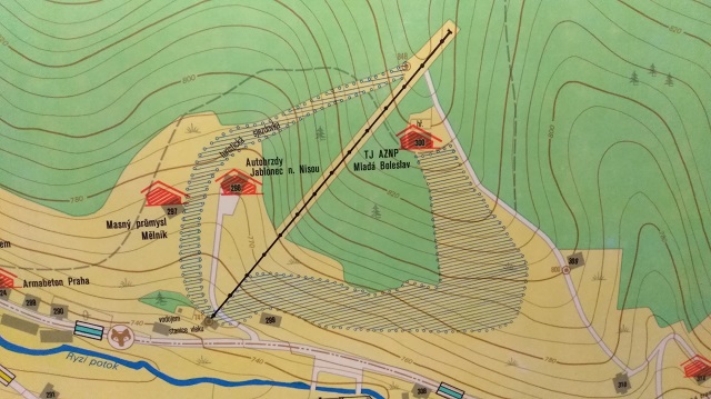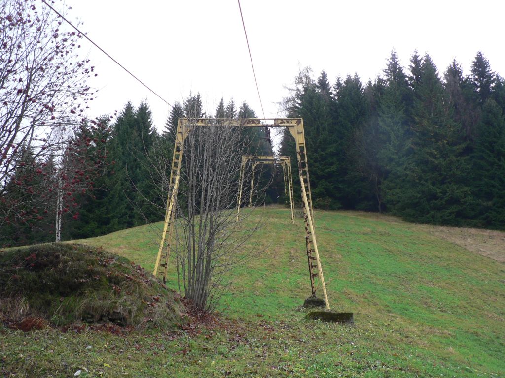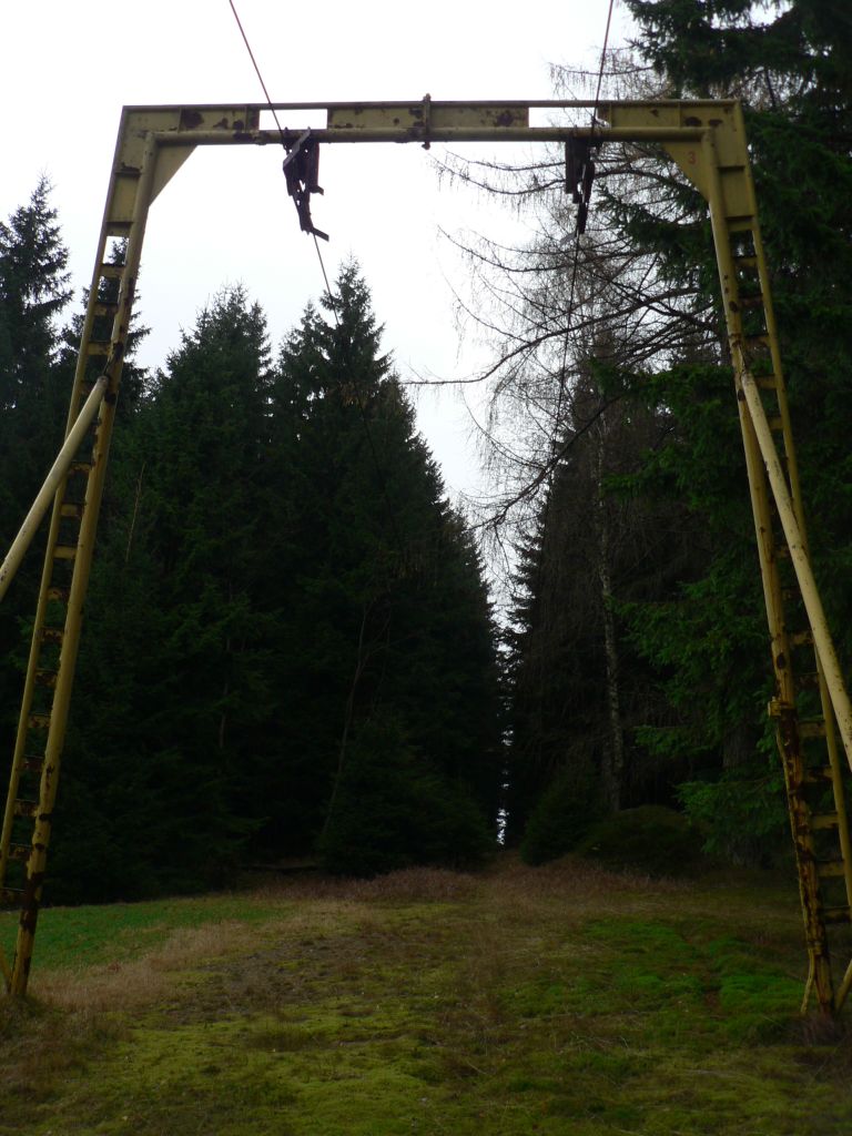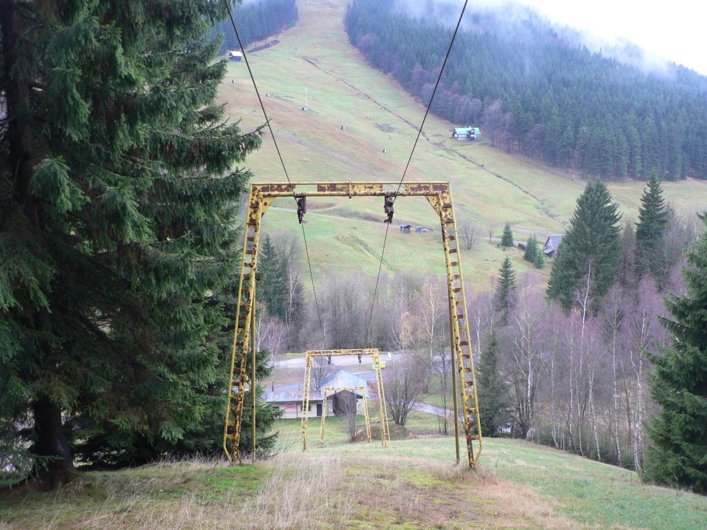 Duvod neprovozovani mi neni znam, podle jednoho cloveka, co ji pamatuje v provozu nemela moc dobrou sjezdovku, kopec je sice prudky, ale trasa sjezdovky vede hodne do boku, takze nejdriv se jelo lesem uzkym prusekem, pak kusek siroka a prudka sjezdovka a pak dlouhy nesikovny traverz zase zpet k vleku... Toto je sjezdovka vpravo, pri pohledu nahoru na kopec, ta je v terenu zretelne patrna. Podle jedne mapy na webu Harrachova byla snad sjezdovka i vlevo prusekem v lese, ale podle vseho nevedla jako sjezdovka az zpatky k vleku. Ten prusek je uz beznadejne zarostly.