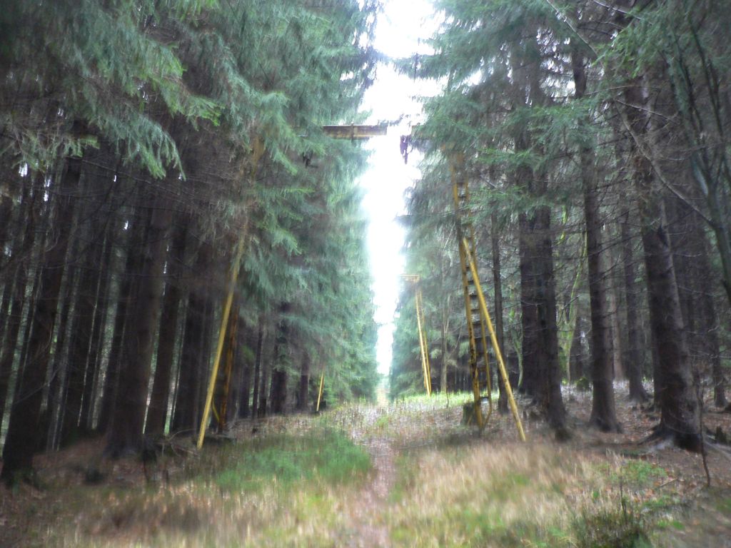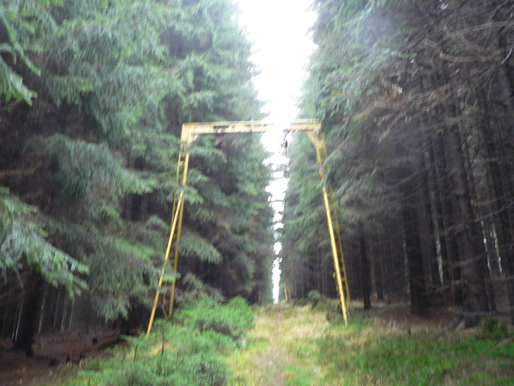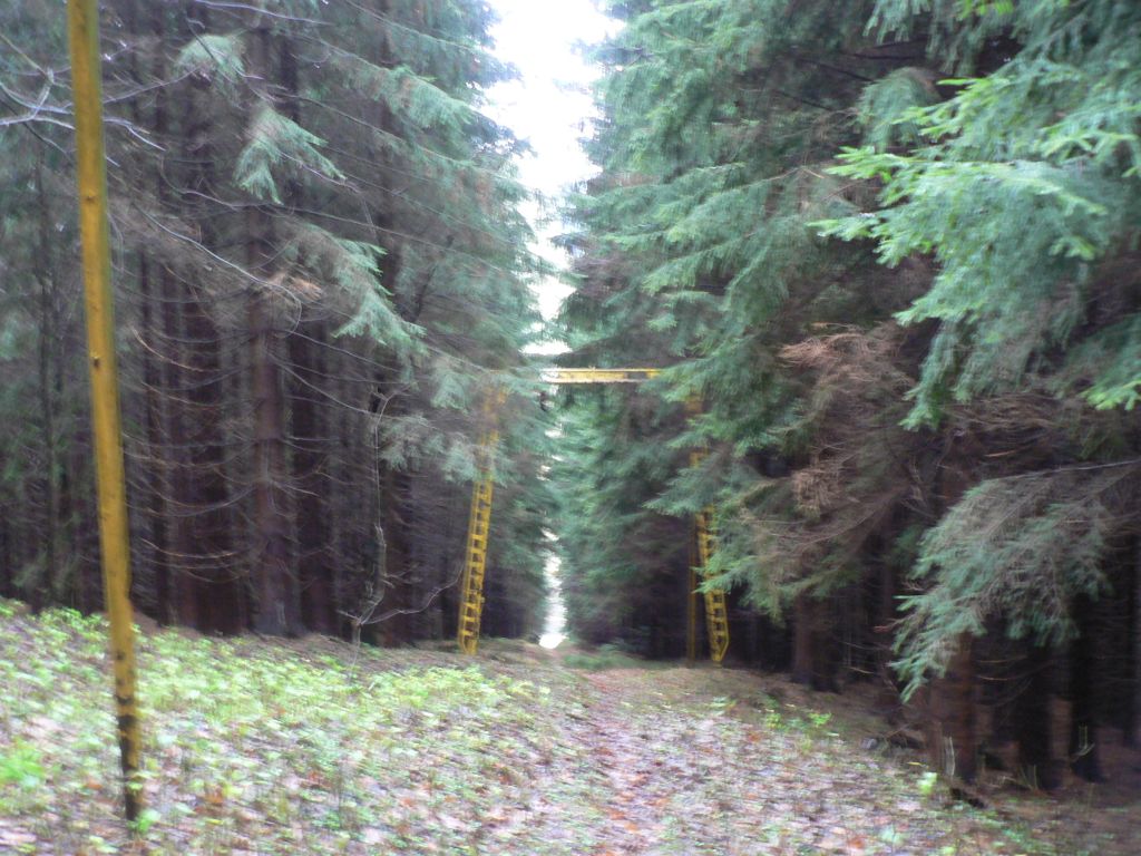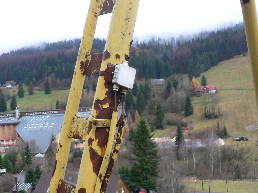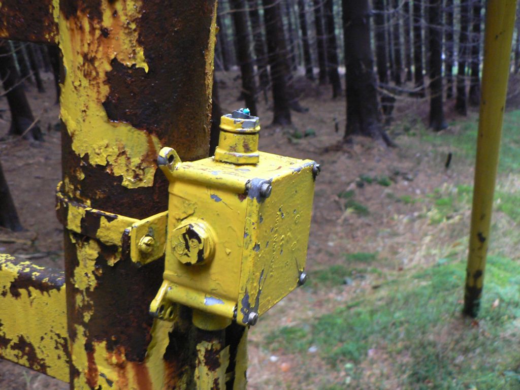 Jinak na fotkach je videt, ze sberaci zrejme dorazili i sem, na kazdou branu vedly kabely, zrejme snimajici polohu lana, od zeme do cca 1,5 jsou v trubce, pak je krabice a dal kabel jen na brane... vsechny jsu az nahoru odcvakly, po brane se da lezt jako po zebriku.
