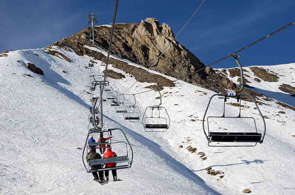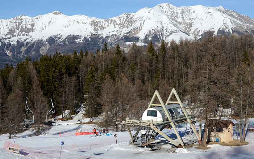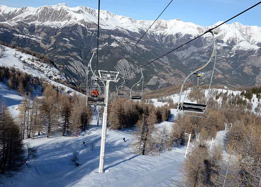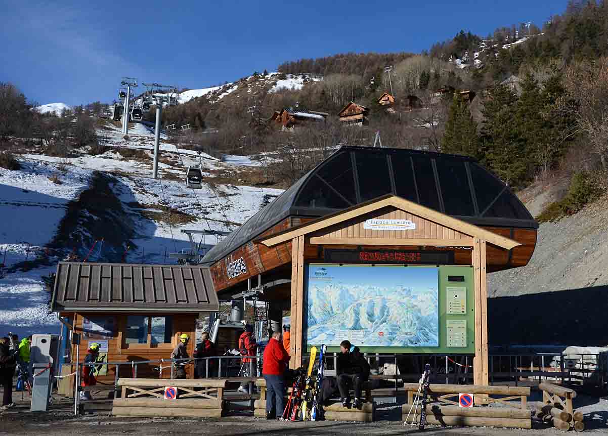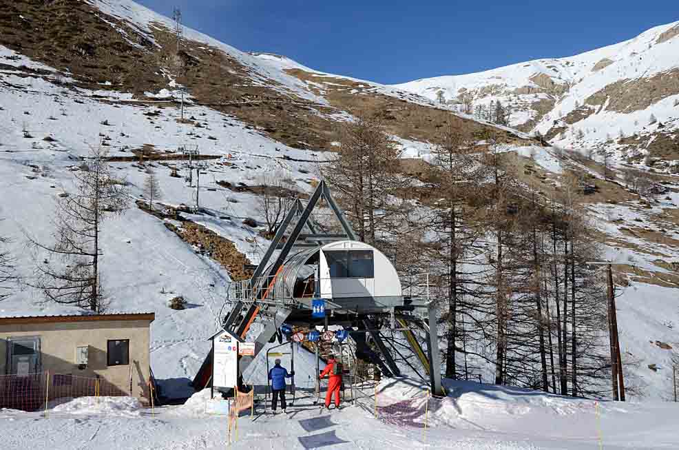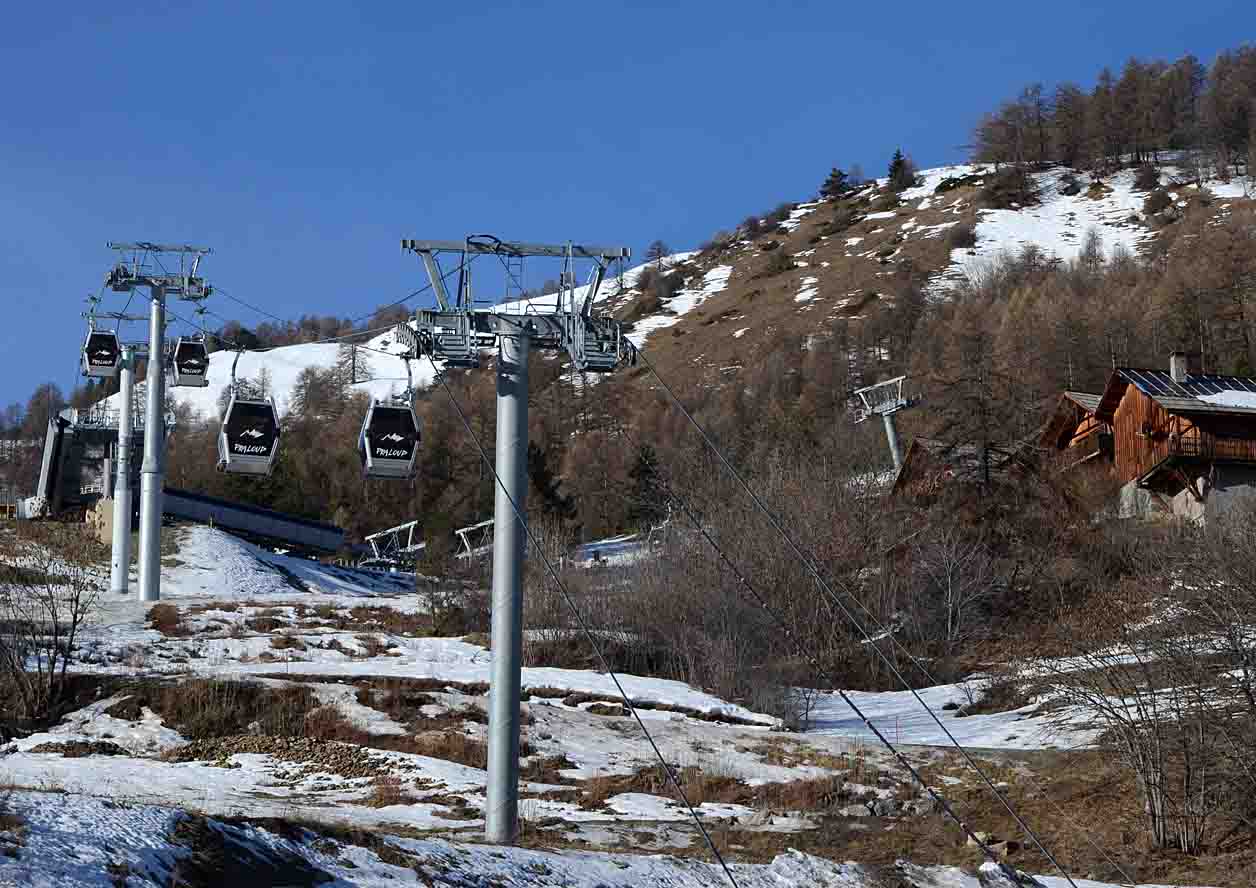 Poznámka: TKD Lac I et II spojující Praloup s místní části Les Agneliers a dále střediskem Val´d Allos - La Foux. Ráno vysoce vytížené.