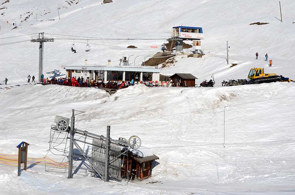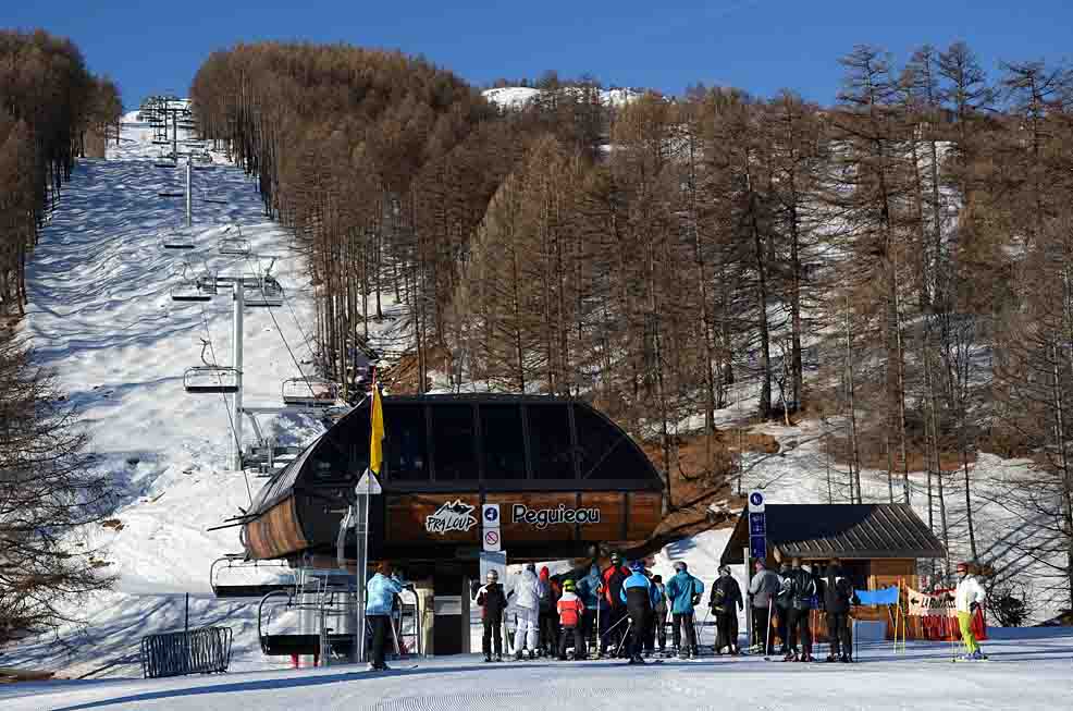 Poznámka: TSD6 Peguieou, jediná ze dvou odpojitelných sedaček v celém areálu, navazuje na TC Molanes s vrcholovou stanicí na Le Peguieou (2479 m.)