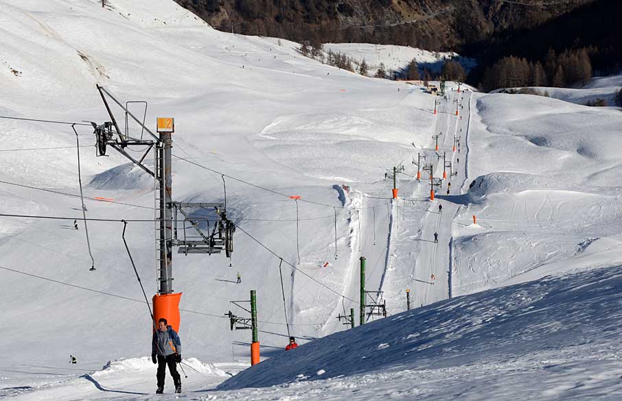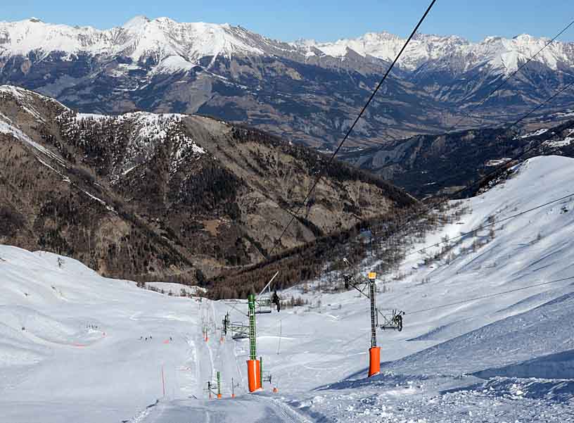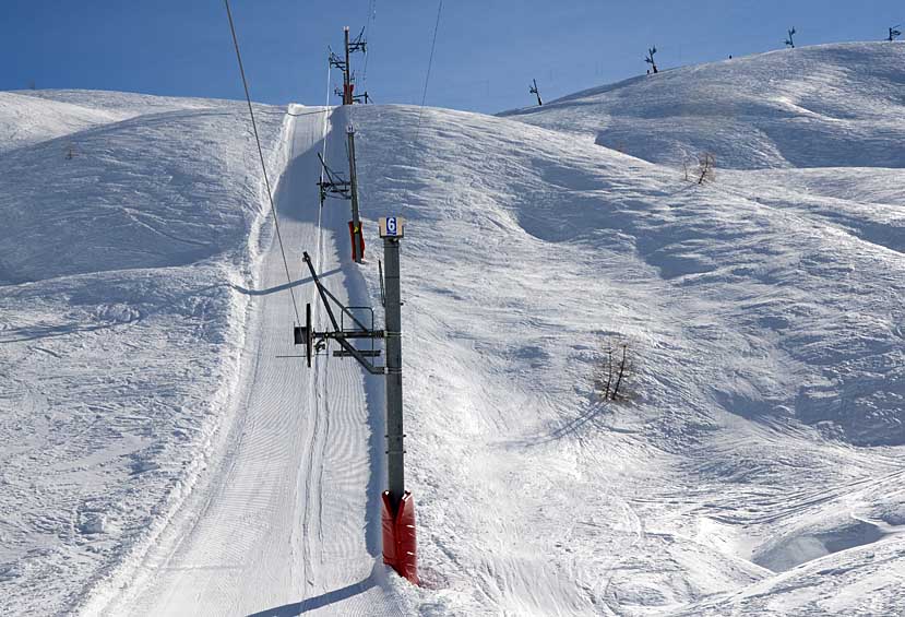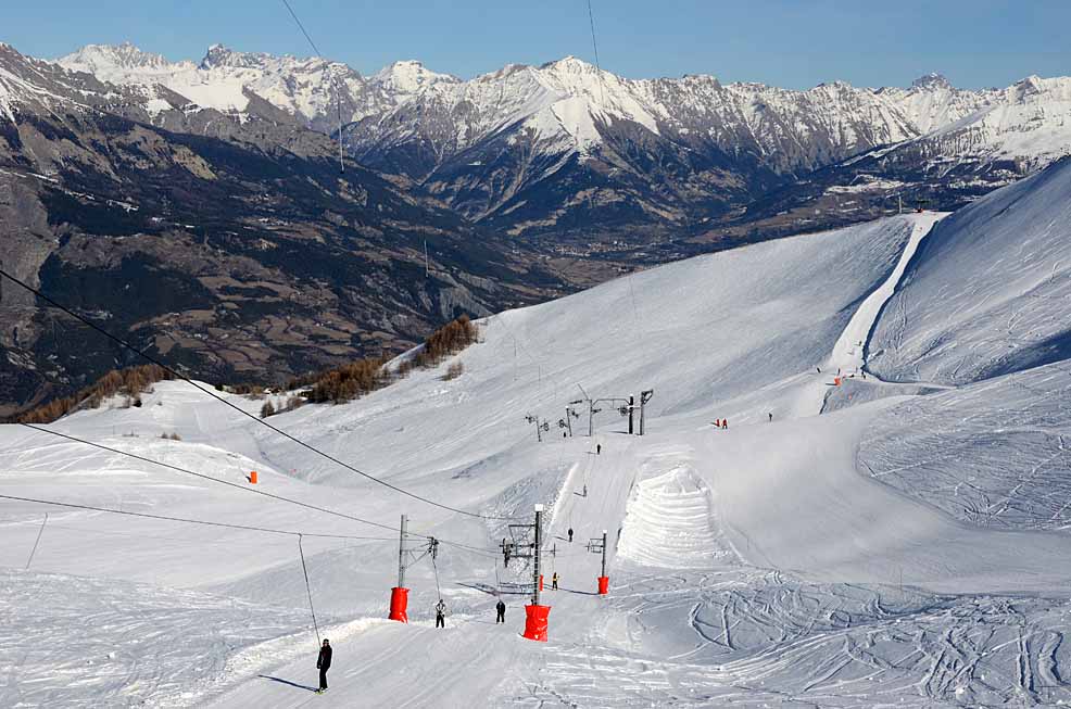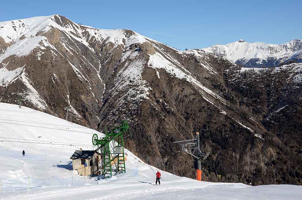 Poznámka: TSF2 Pont de´l Abrau s minimem lyžařů je spojnicí k TKD Plaines úplně na konci střediska Val´d Allos. Lyžoval jsem tu téměř sám...