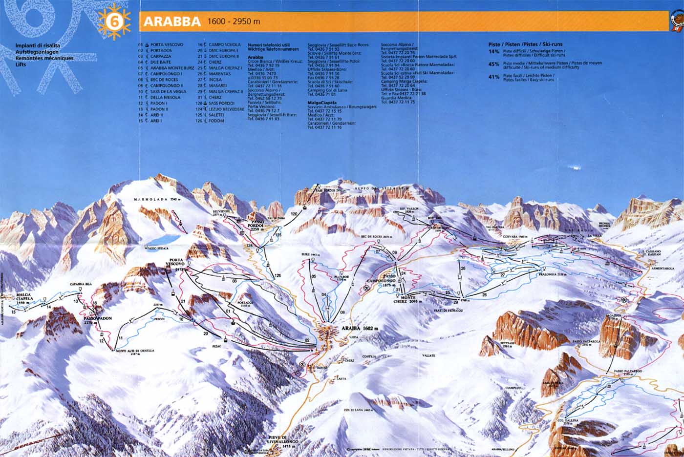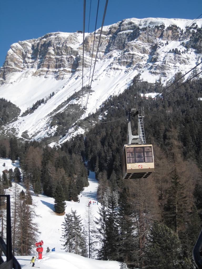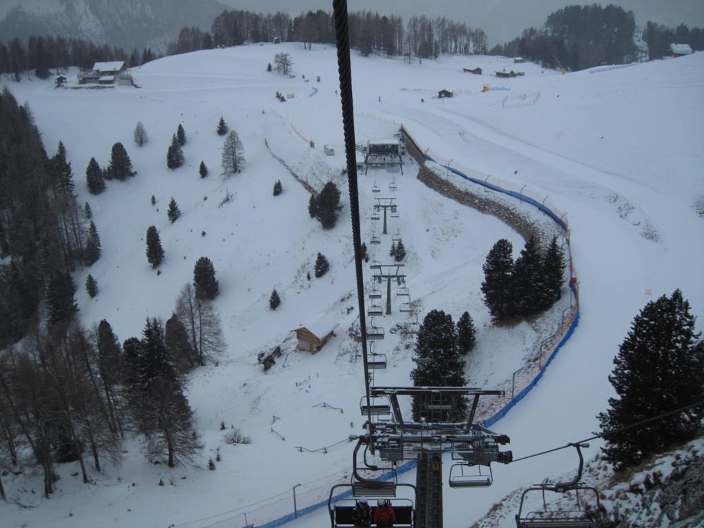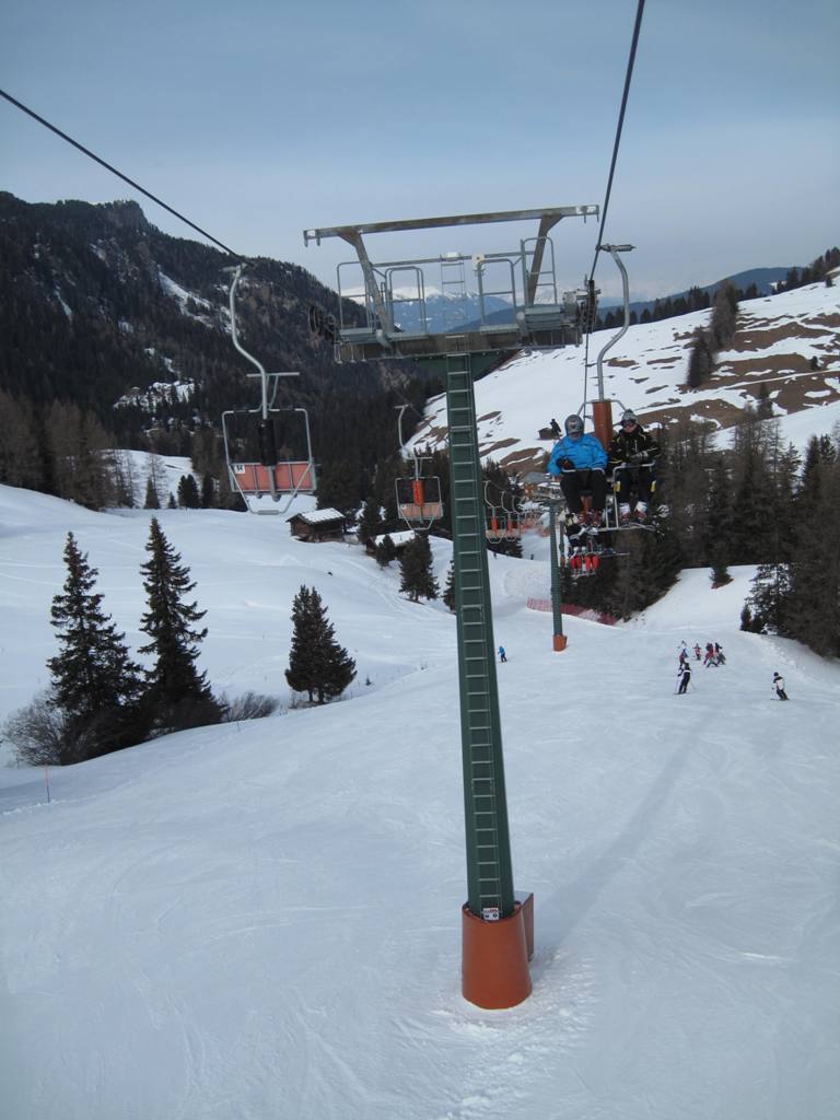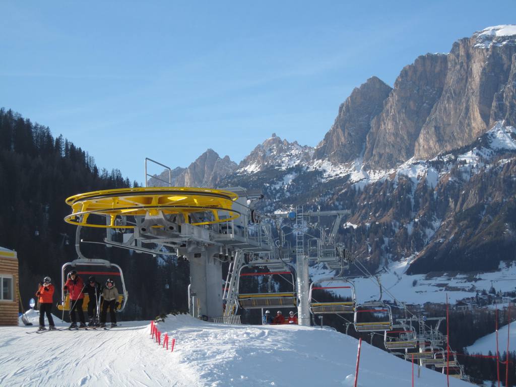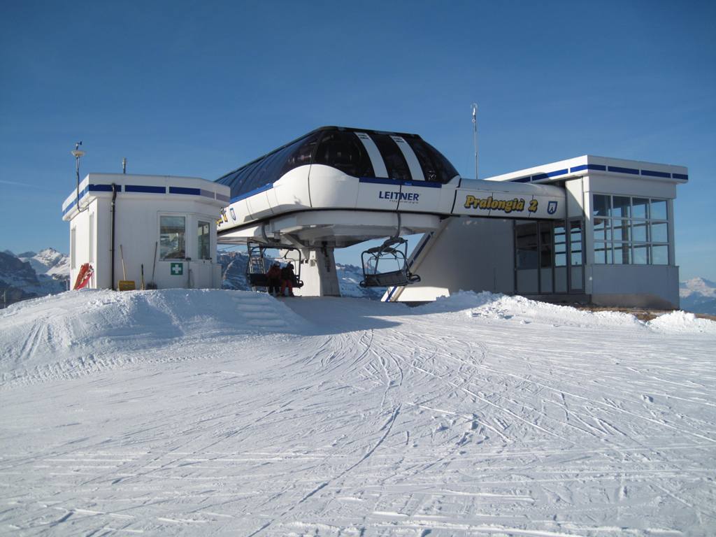 Dvousedačka Portados (výrobce Nascivera) z Arabby, bohužel po zrušení navazující dvousedačky Carpazza už není možnost pokračovat odtud směrem na Belvedere. Musí se využít kabin.