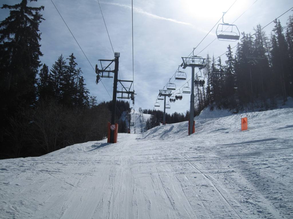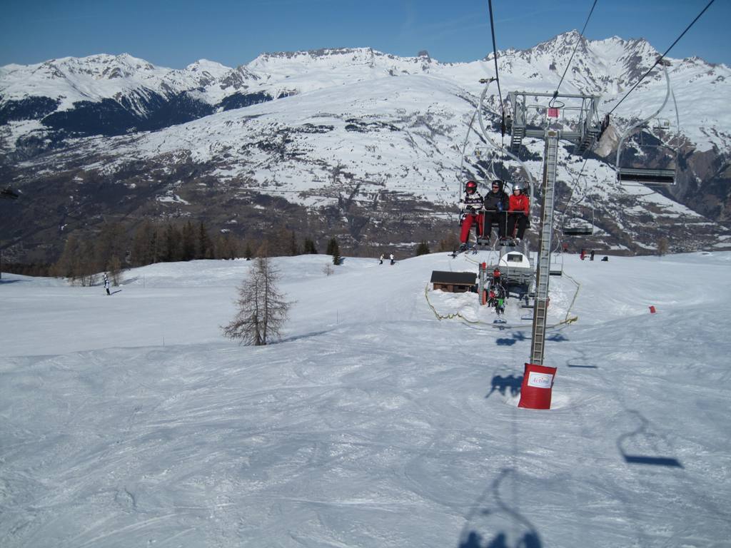 Začnu pro všechny asi dobře známým Vanoise expressem - pohled ve směru z Les Coches na Plan Peisey a Vallandry: