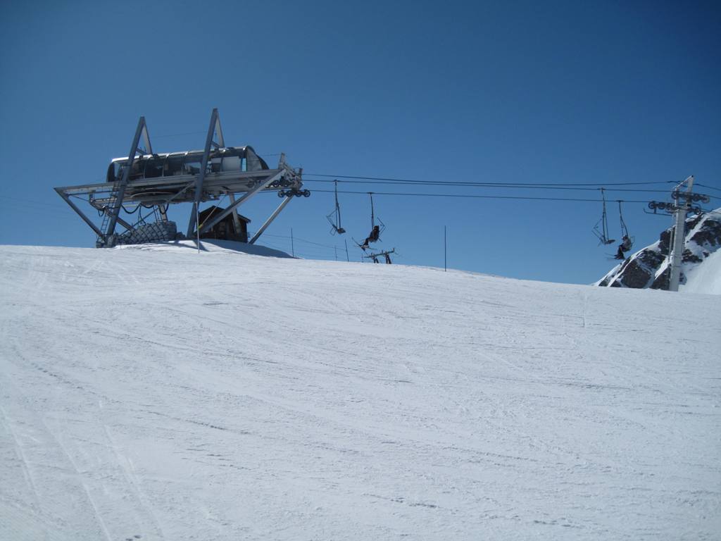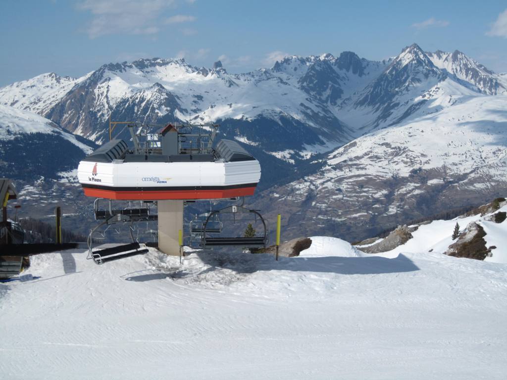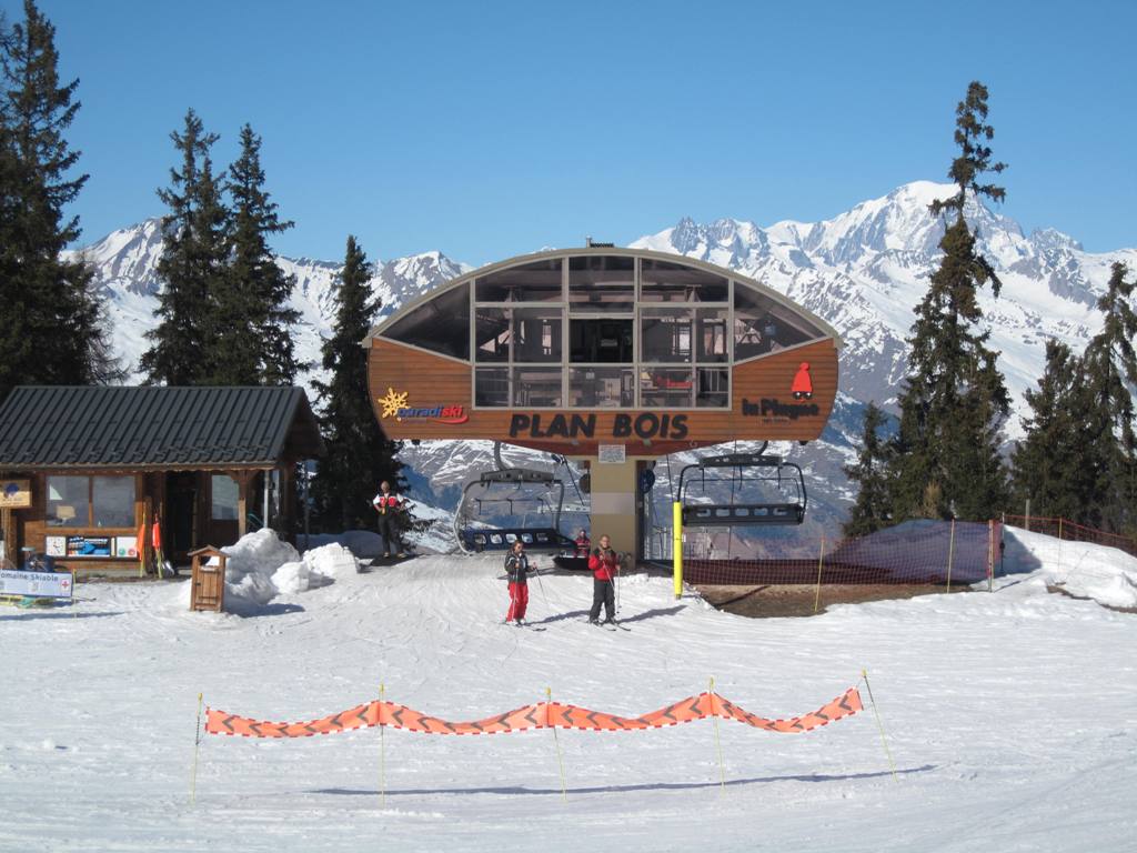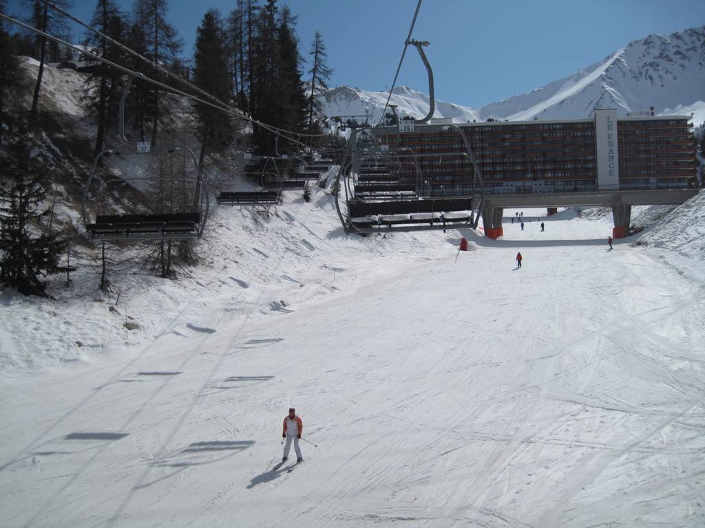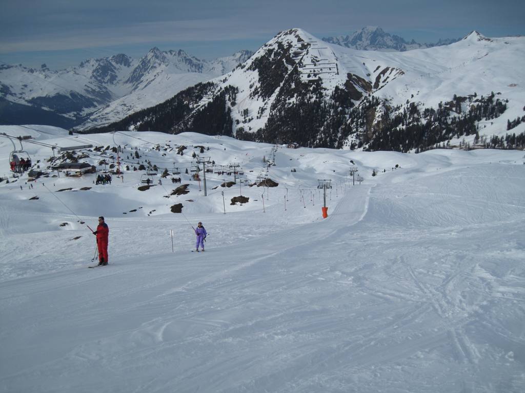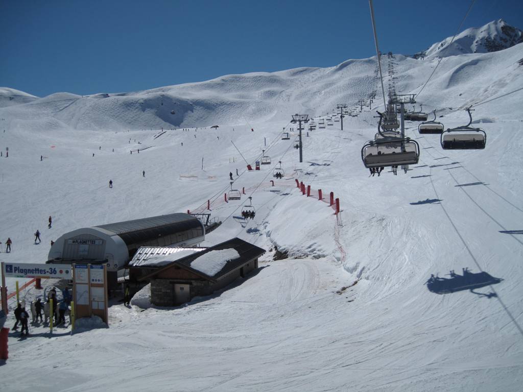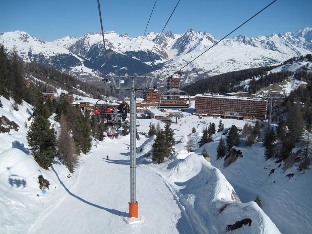 Plagne Bellecôte (1935 m.n.m.), tato část střediska je skvělým výchozím bodem. Přímo před rezidencí začíná kabina na Roche de Mio, sedačky Arpette (směr Vanoise express), Blanchets, Colosses a vlek Colosses.