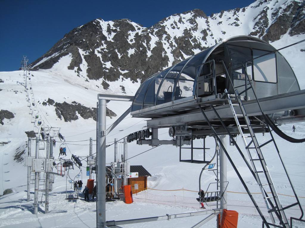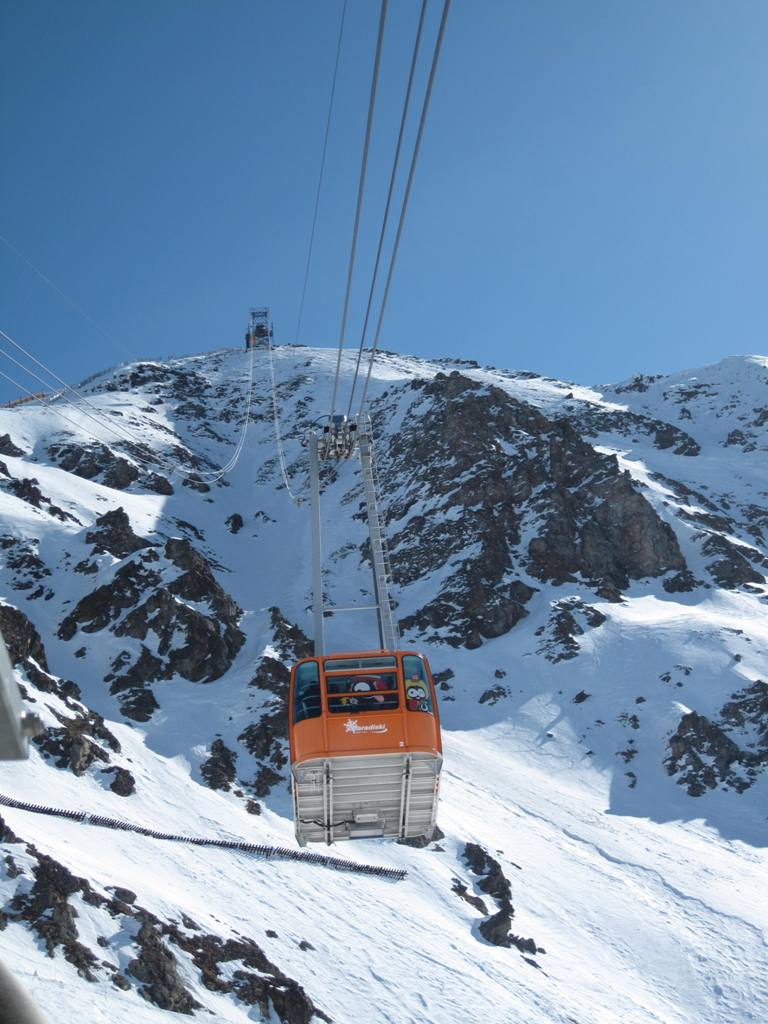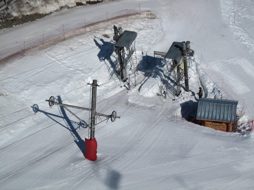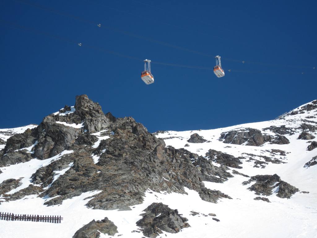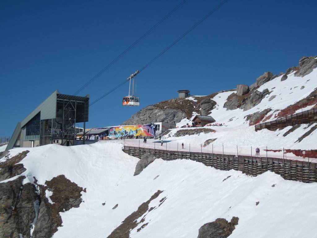 Stanice v Les Coches ještě jednou, tentokrát i s protijedoucí kabinou: