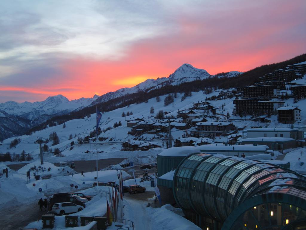 Ubytování jsme byli ve Villagio Olympico ve středisku Sestriere nedaleko lanovky Fraiteve, které tvoří jedinou možnost jak se dostat do zbytku areálu (po zrušení lanovky Col Basset).